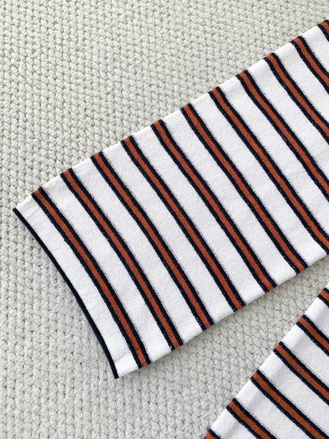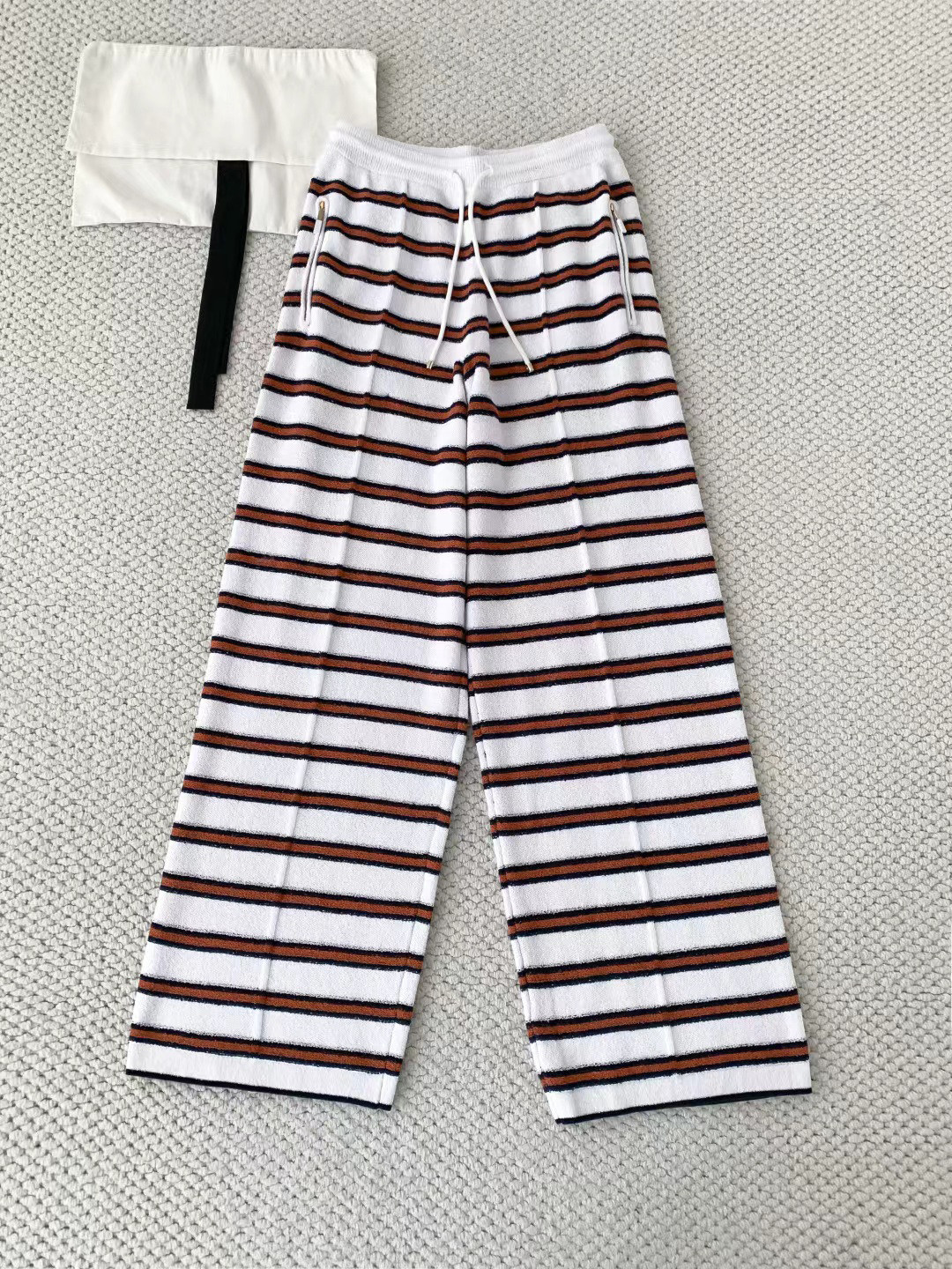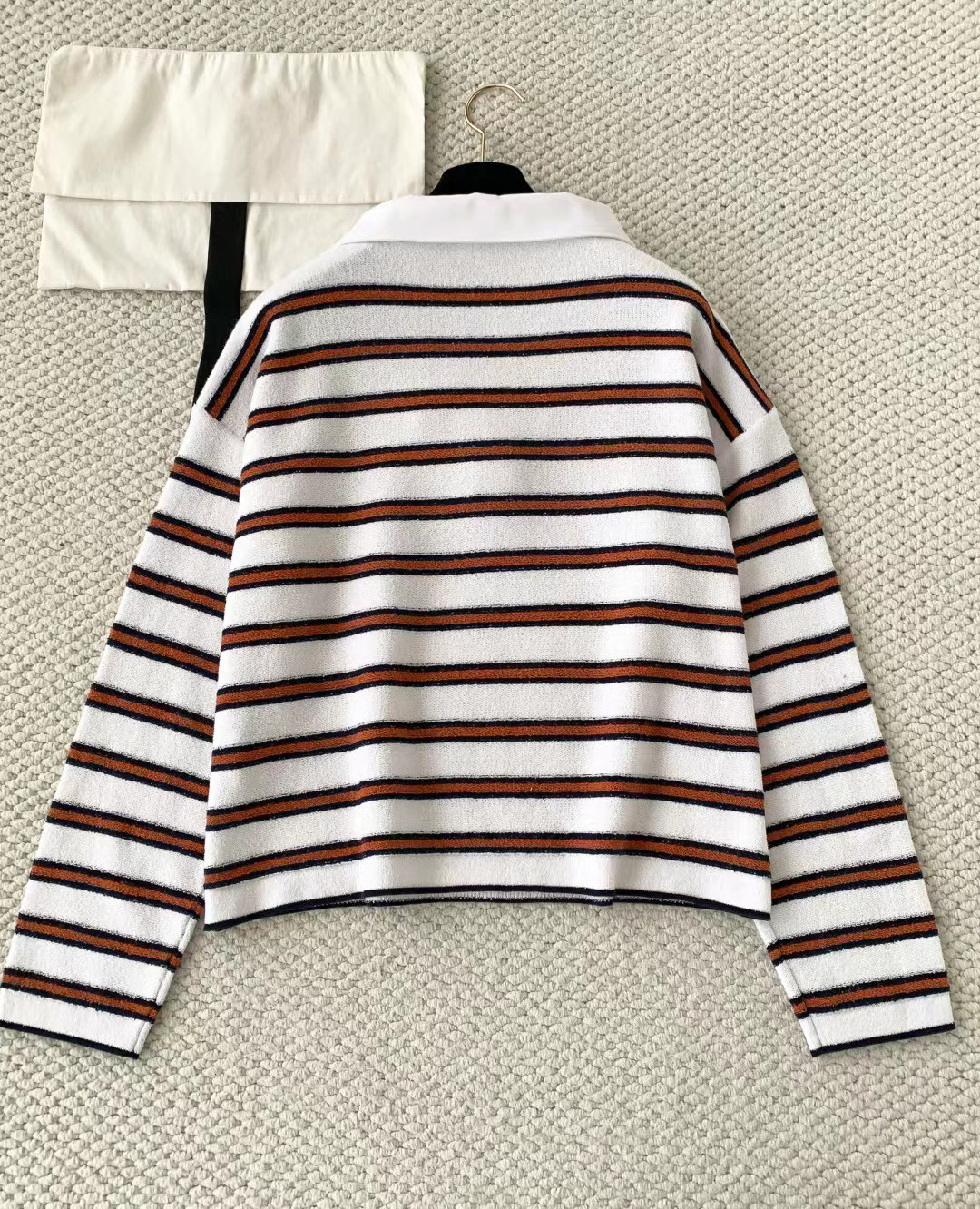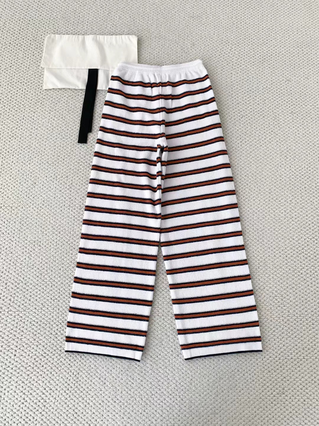 2025 autumn and winter contrasting colors classic age-reducing girl striped polo collar knitted long sleeves + high waist straight wide-leg pants