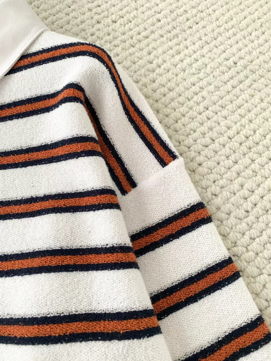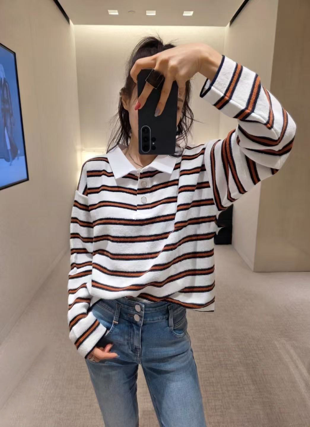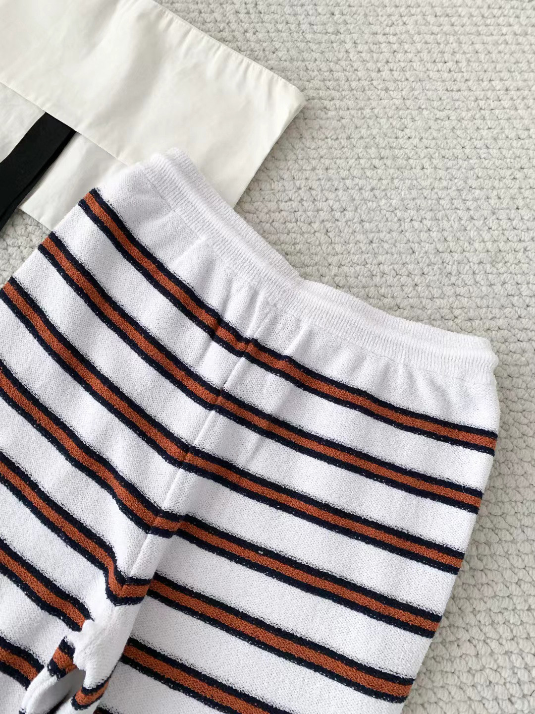 2025 autumn and winter contrasting colors classic age-reducing girl striped polo collar knitted long sleeves + high waist straight wide-leg pants