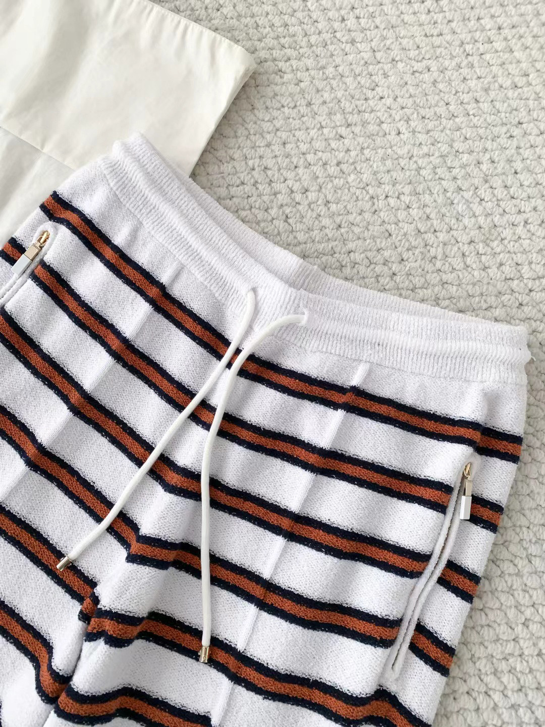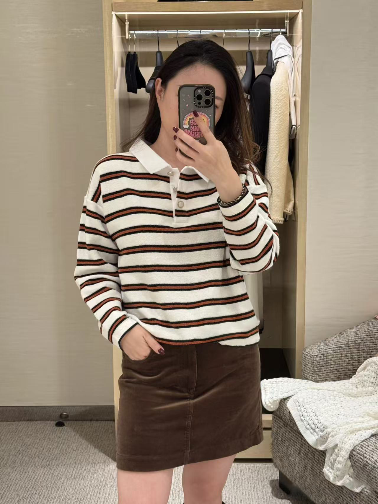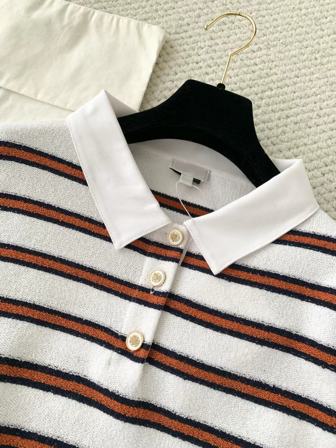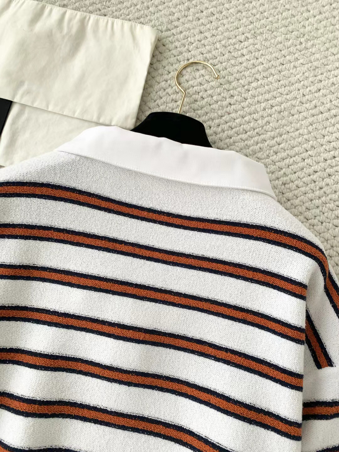 2025 autumn and winter contrasting colors classic age-reducing girl striped polo collar knitted long sleeves + high waist straight wide-leg pants