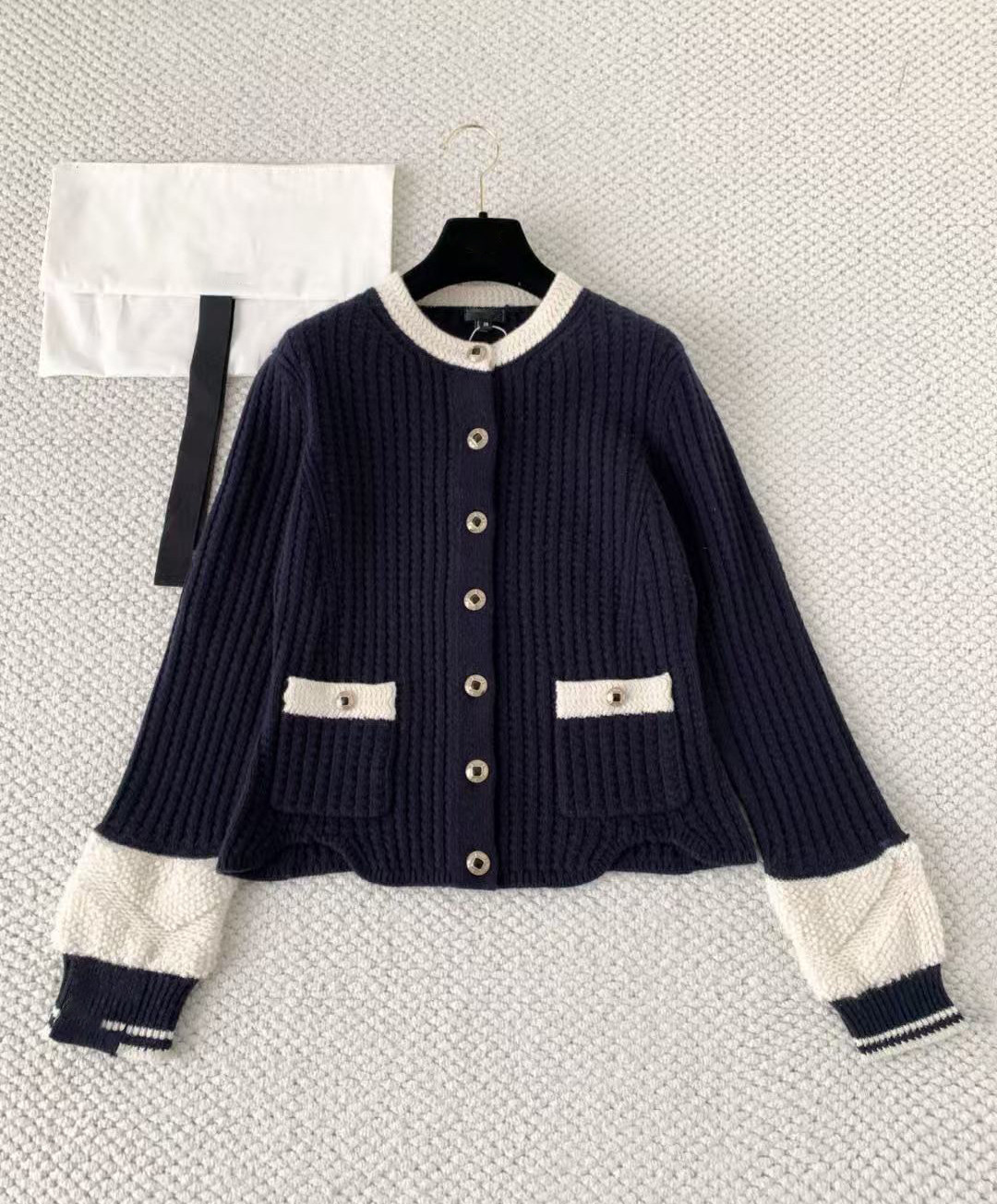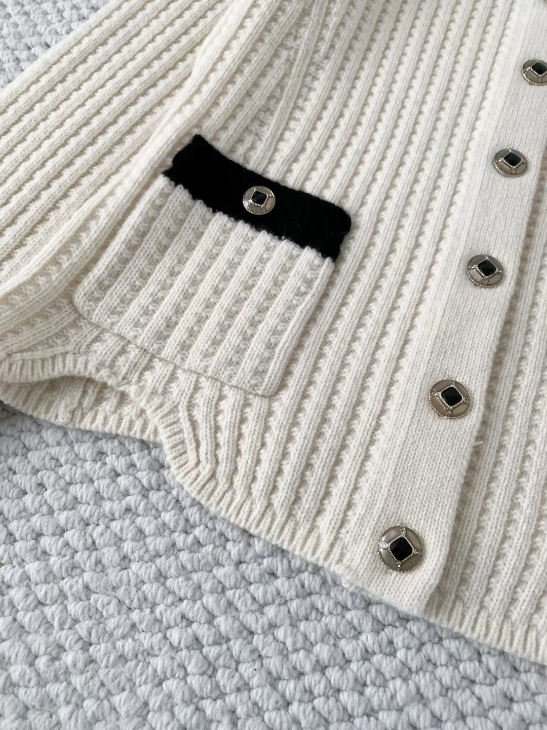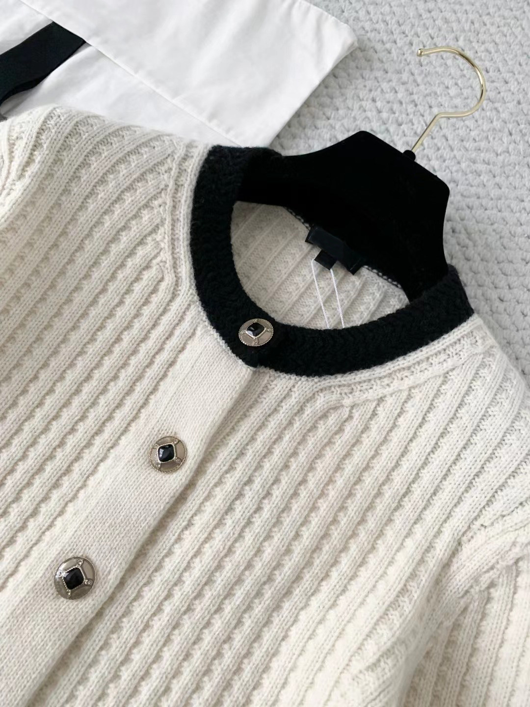 2025 autumn and winter contrasting colors, high-end heavy industry waffle bow slim-fitting and thin knitted cardigan, single-breasted jacket