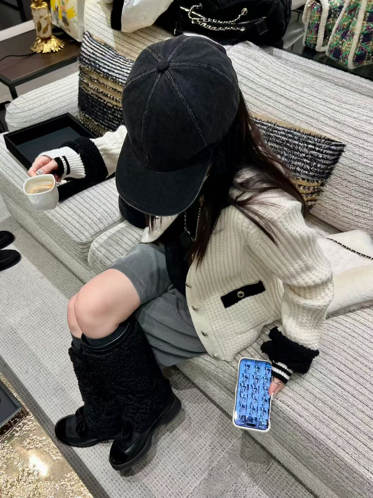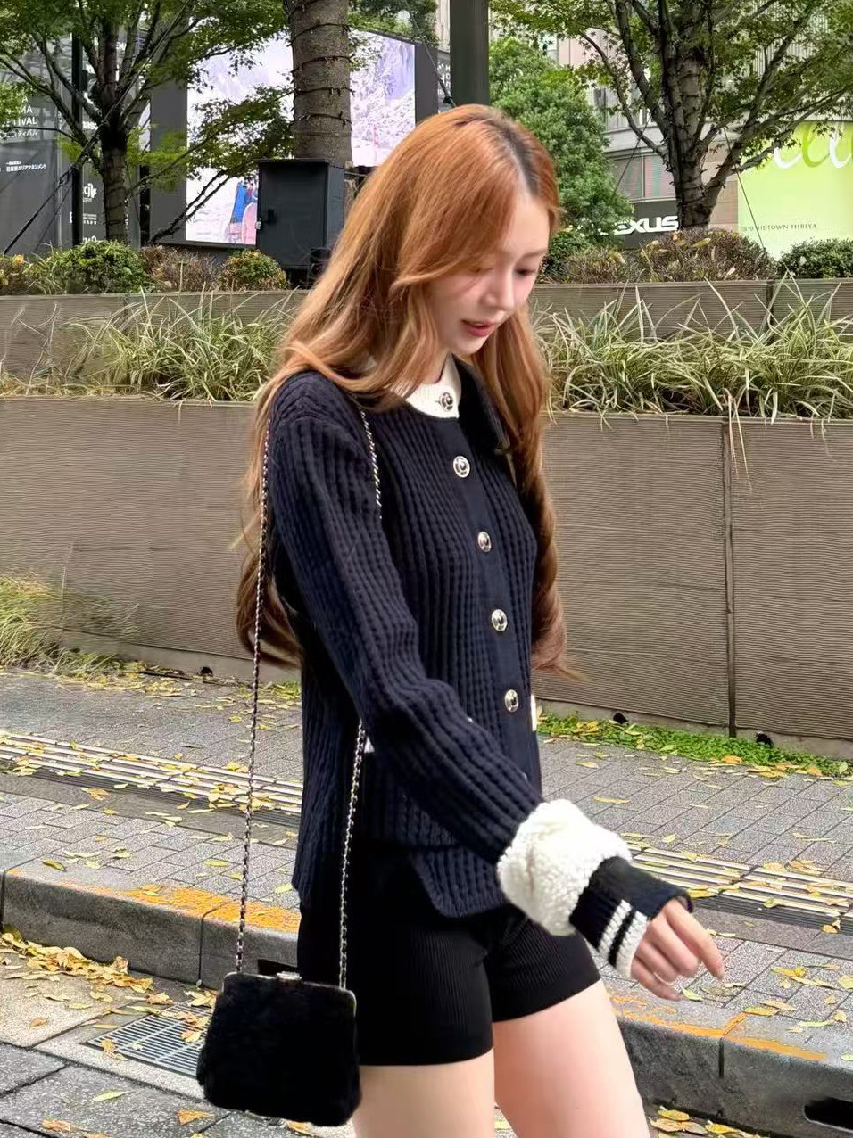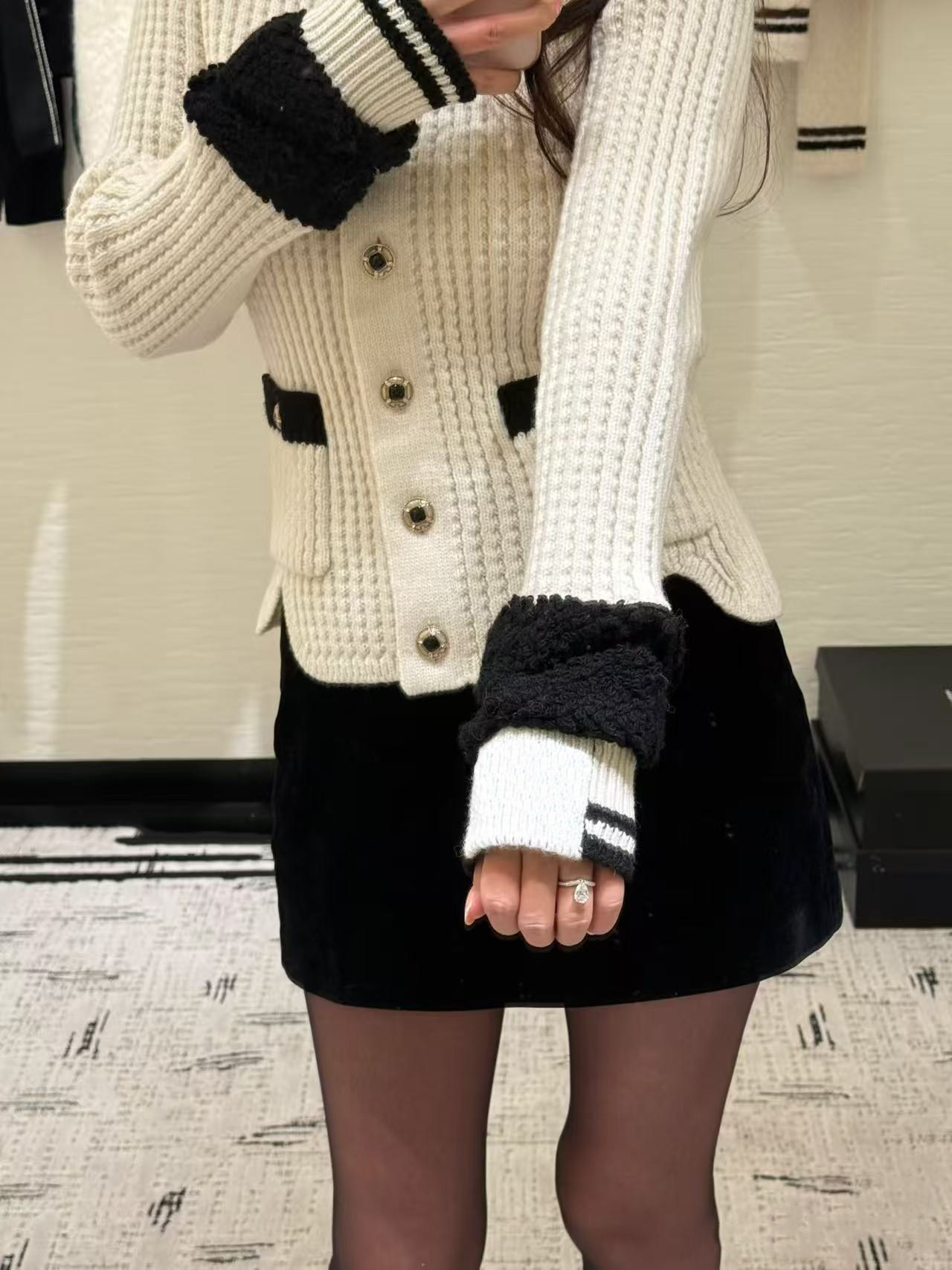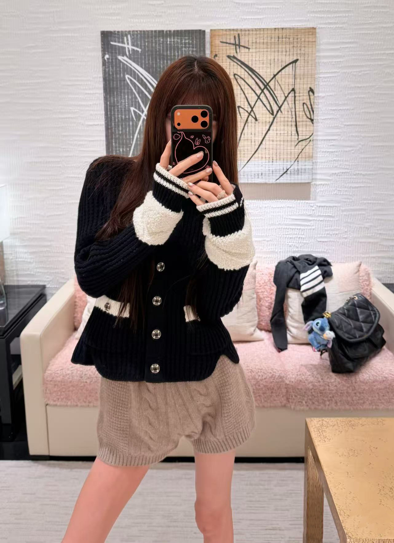2025 autumn and winter contrasting colors, high-end heavy industry waffle bow slim-fitting and thin knitted cardigan, single-breasted jacket