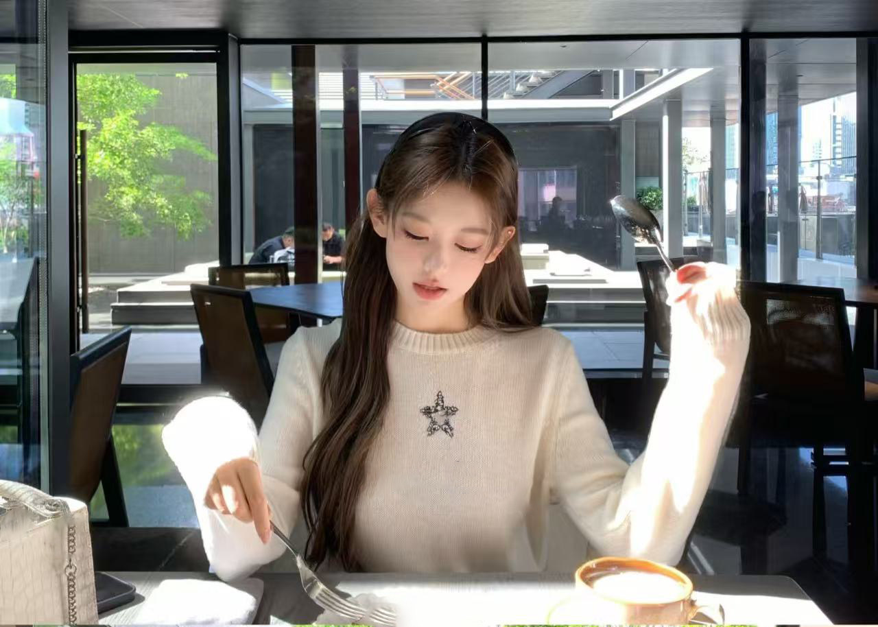 2025 autumn and winter design classic five-pointed star letter embroidery round neck cashmere soft pullover knitted long sleeve women