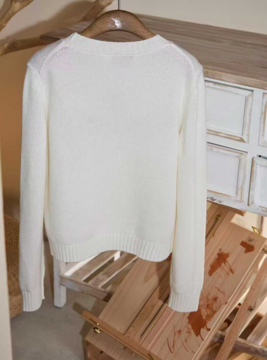 Color classification:White pullover, color and dye.