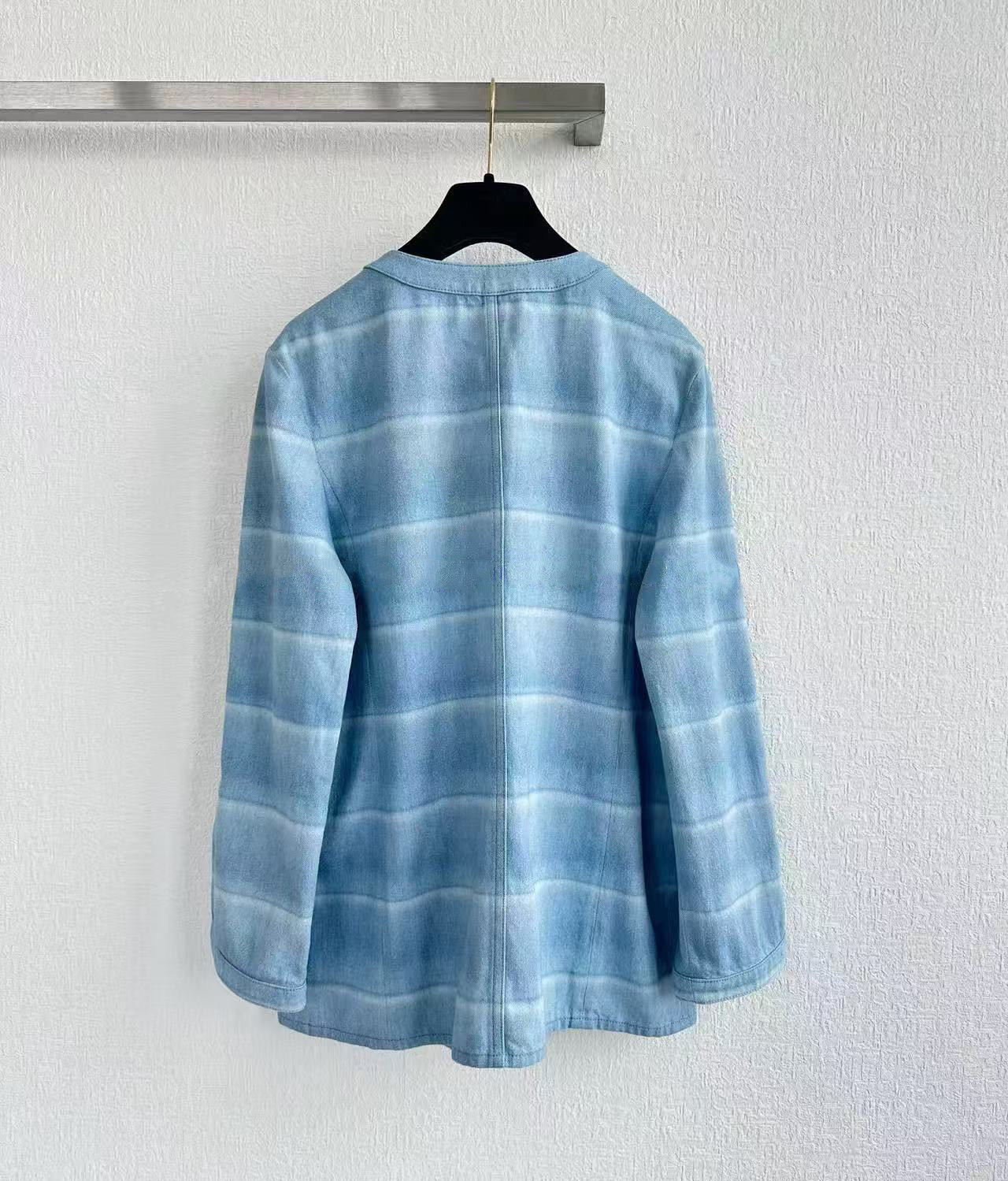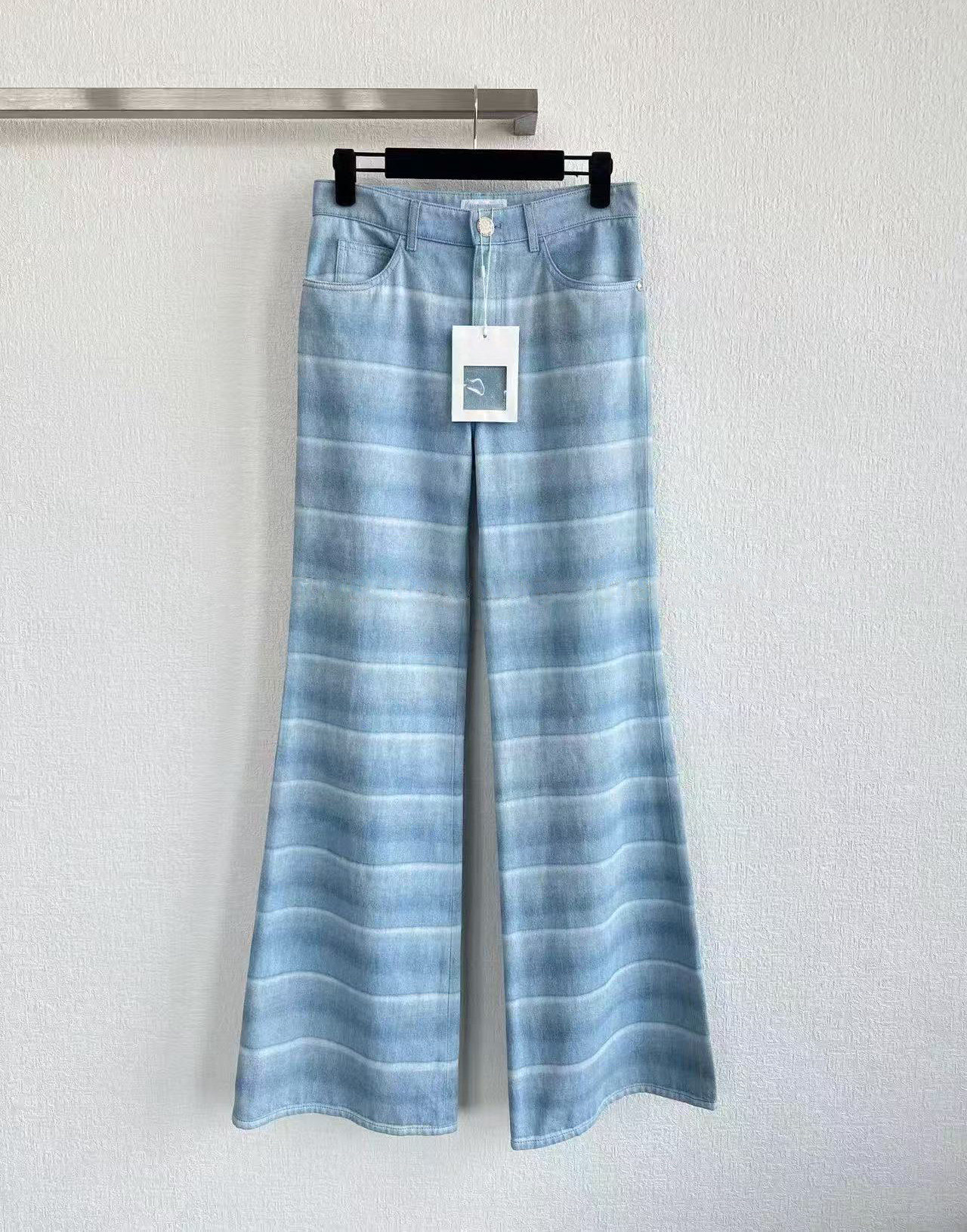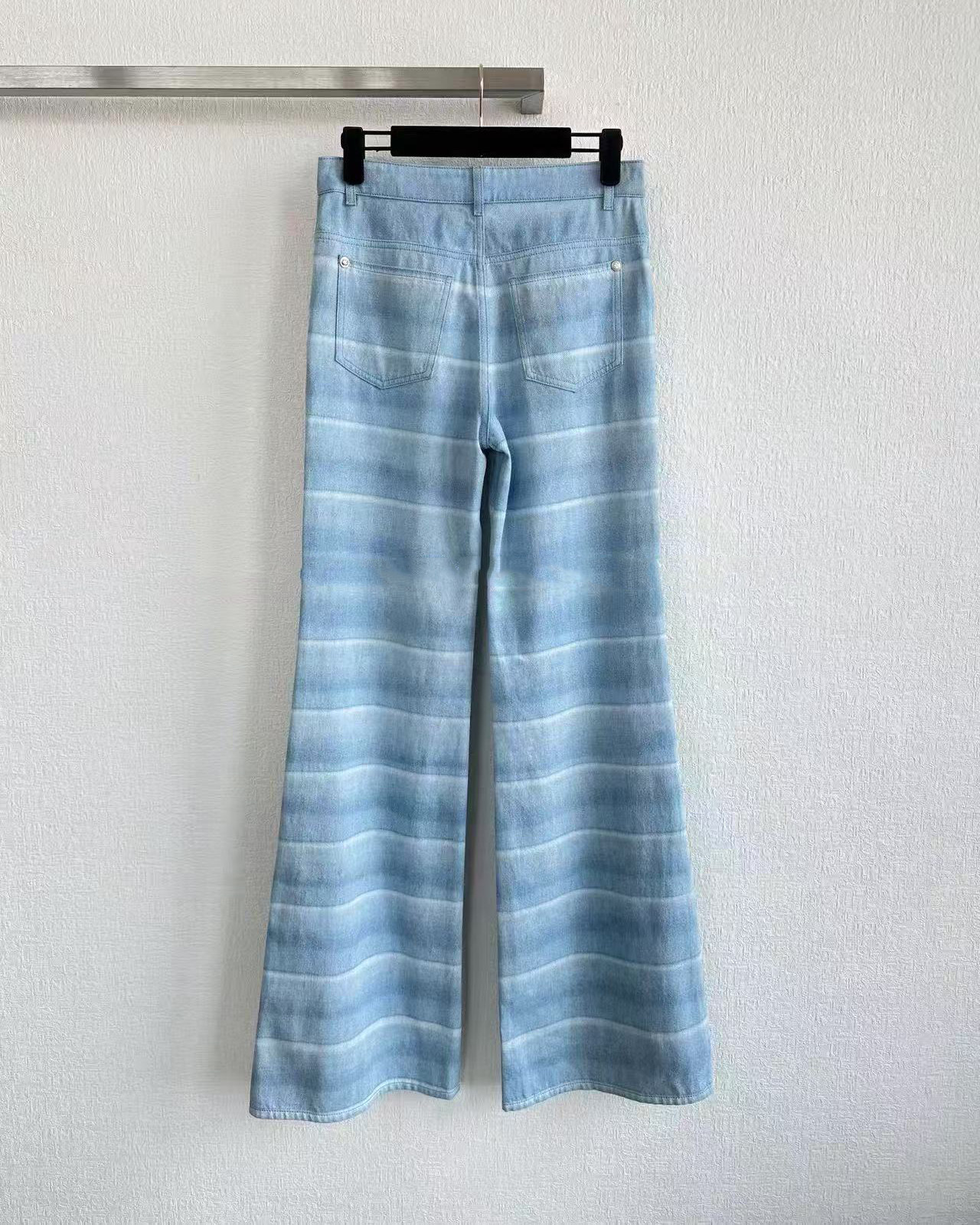 2025 autumn and winter fashion foreign style washed blue and white striped single-breasted cardigan jacket high waist straight wide-leg pants
