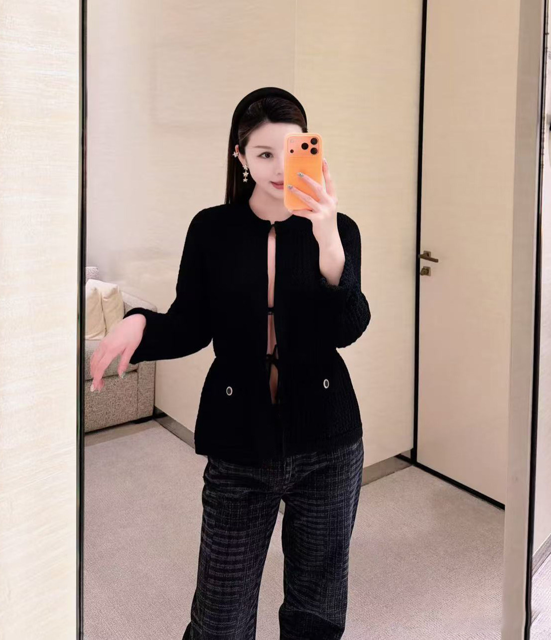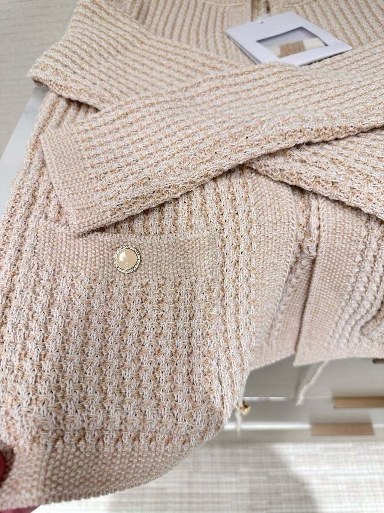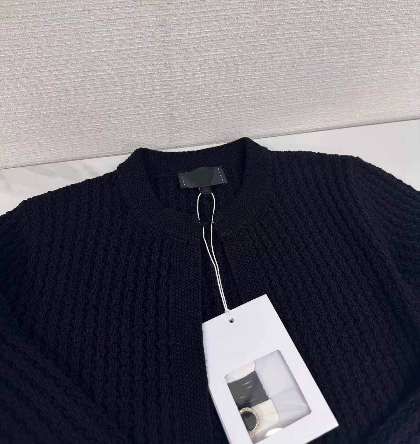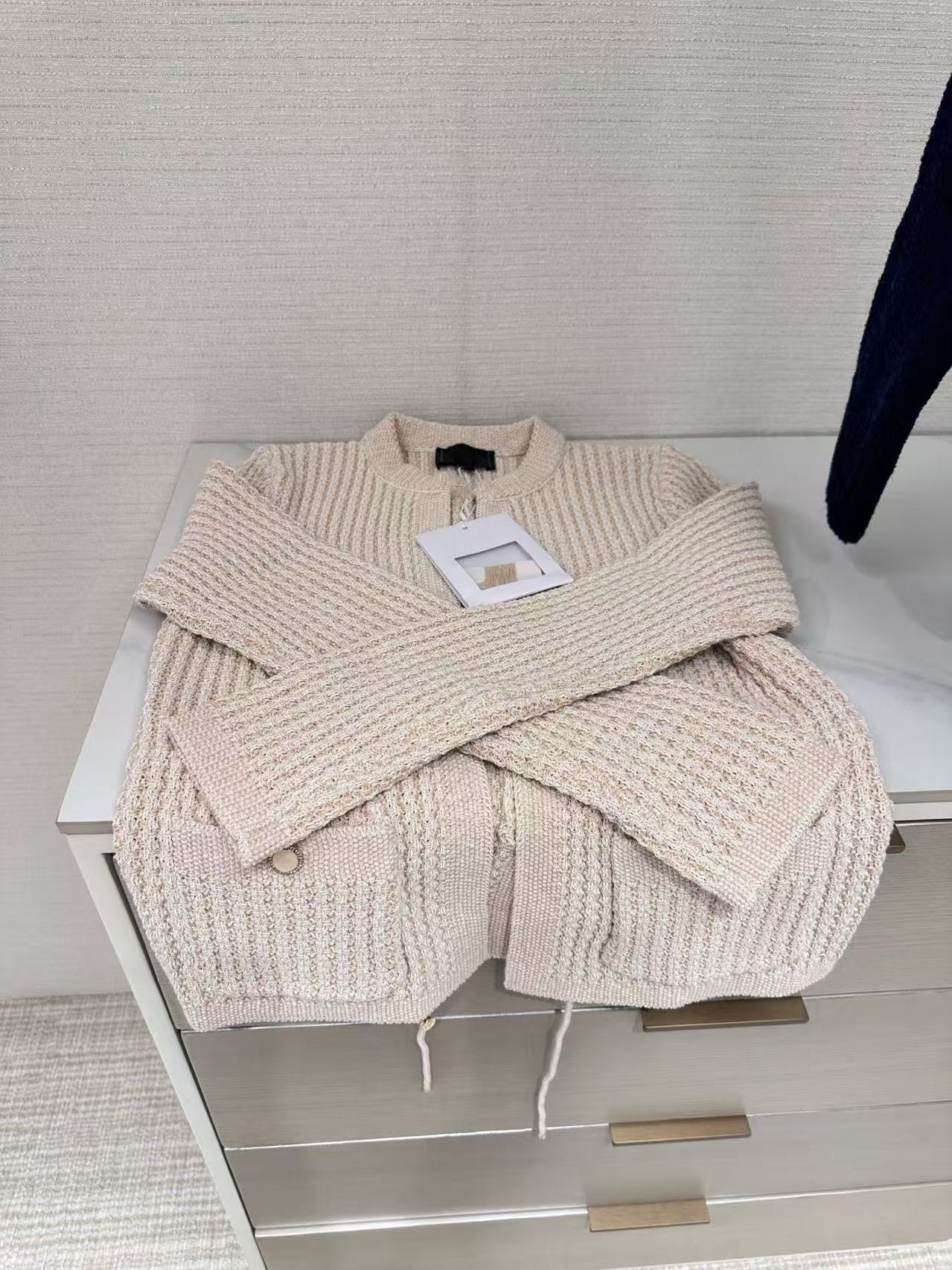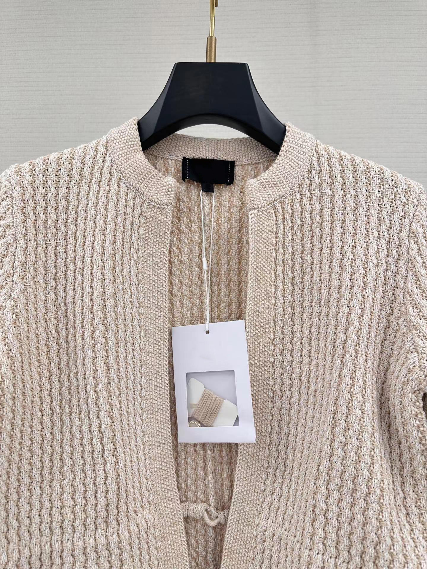 2025 autumn and winter French design sense foreign style fashion drawstring waist thin diamond buckle knitted crew neck cardigan jacket women