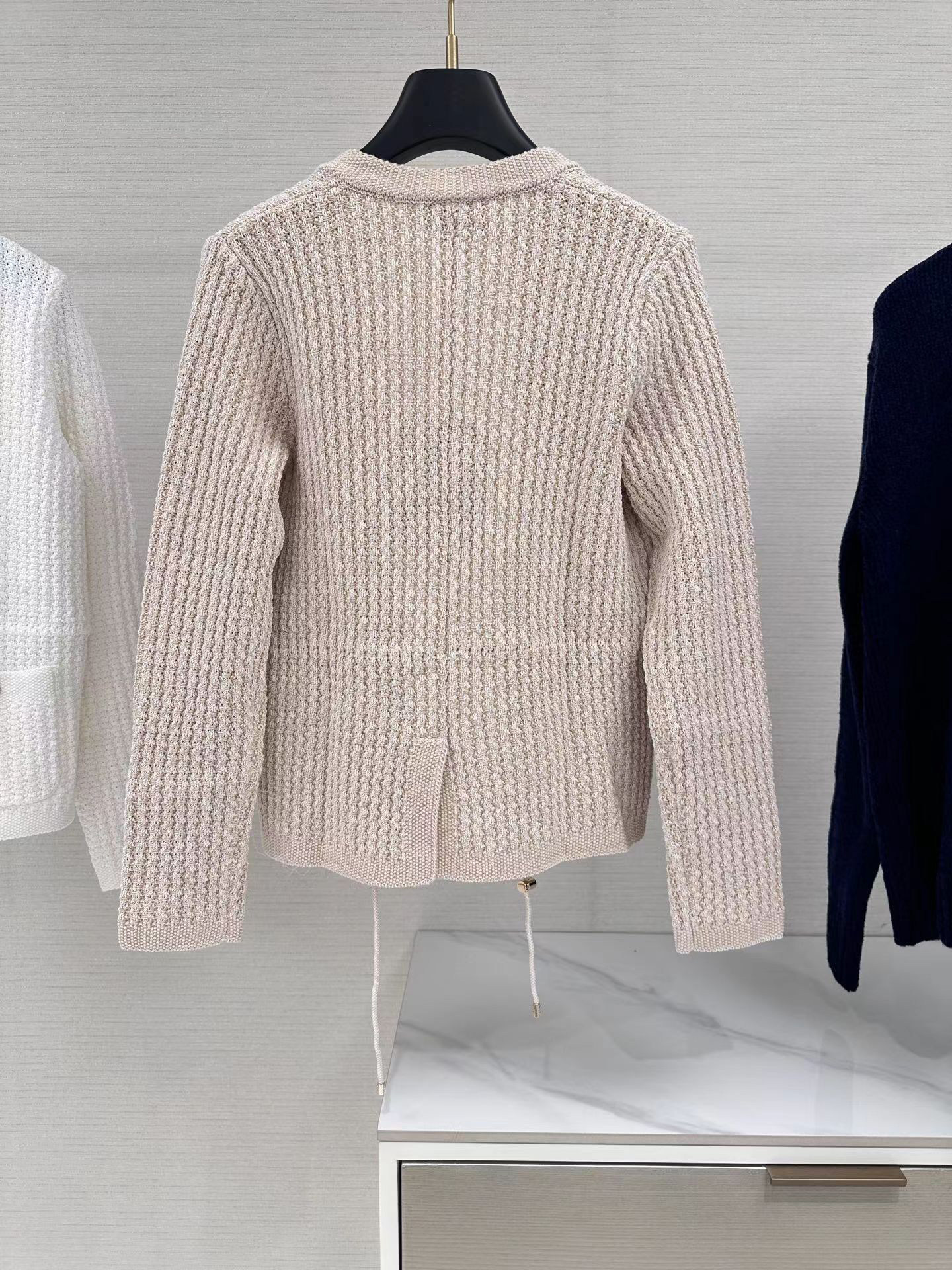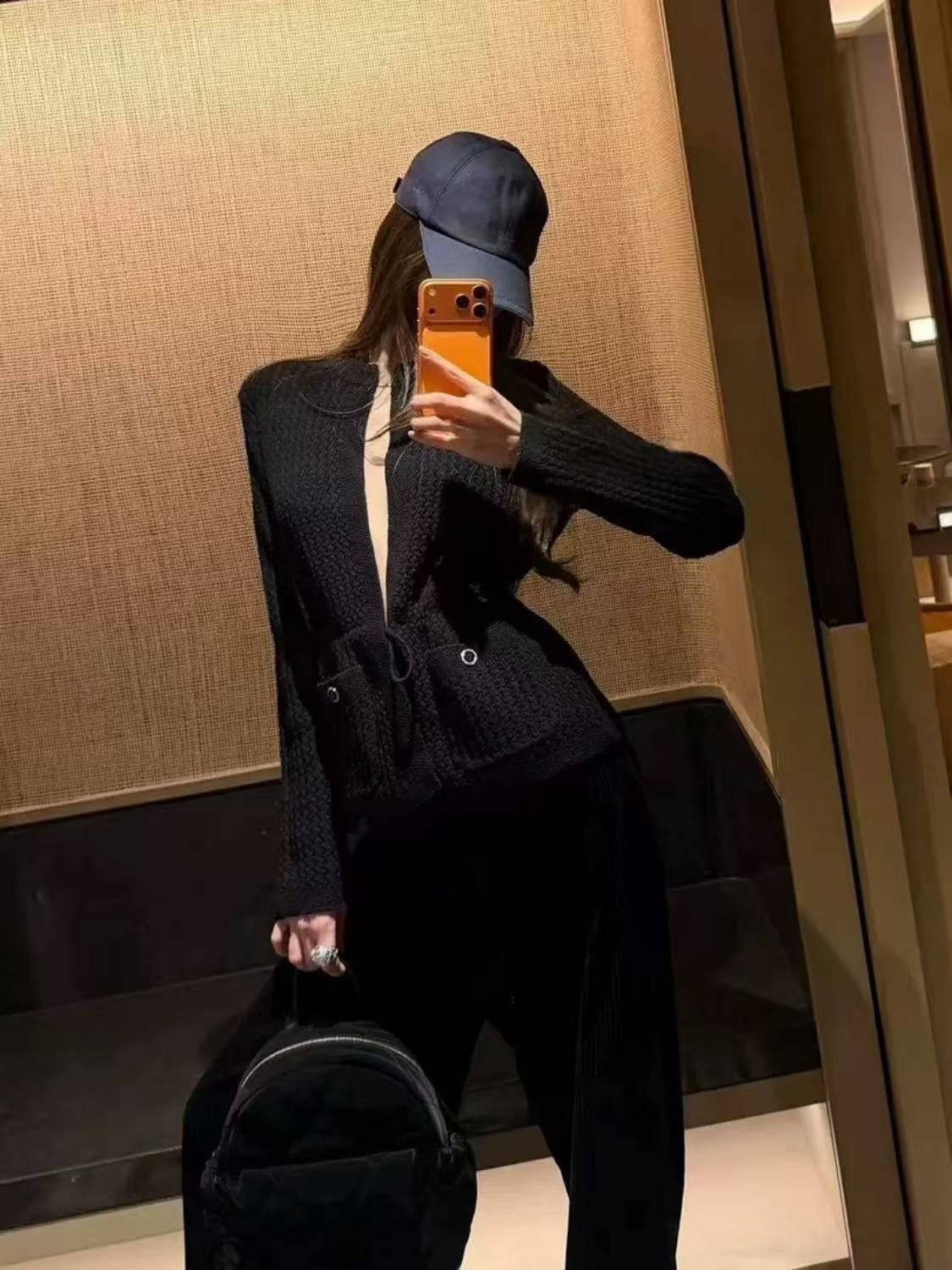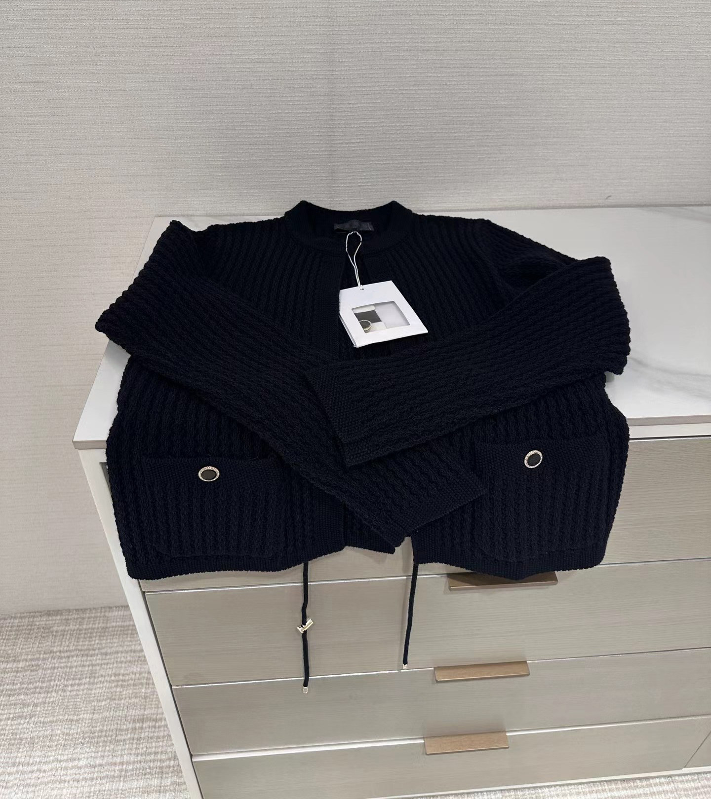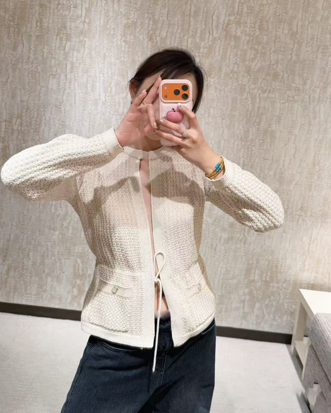 2025 autumn and winter French design sense foreign style fashion drawstring waist thin diamond buckle knitted crew neck cardigan jacket women