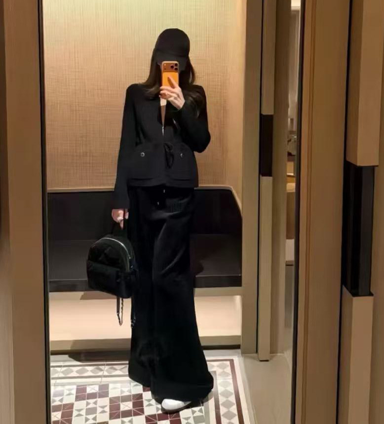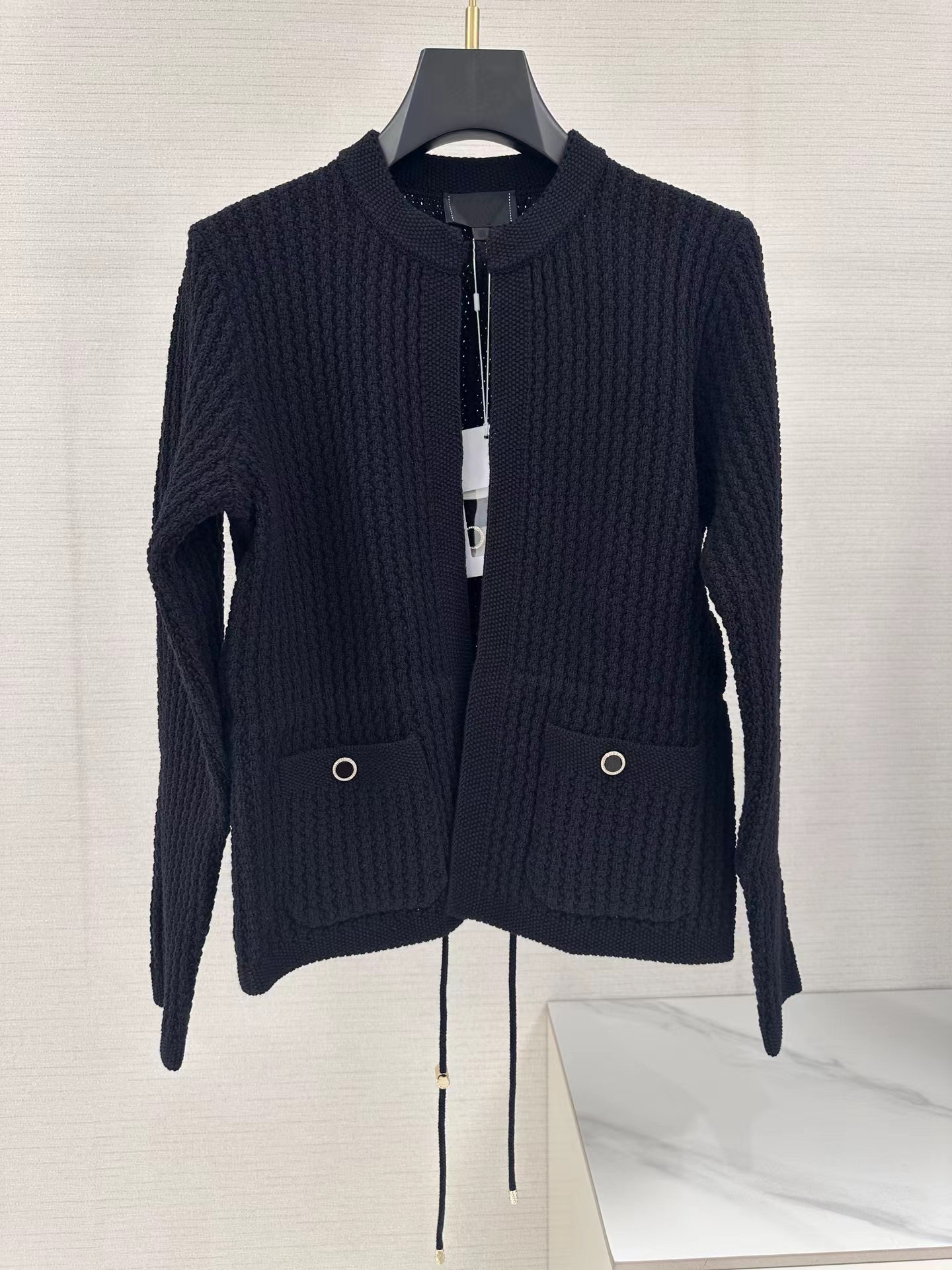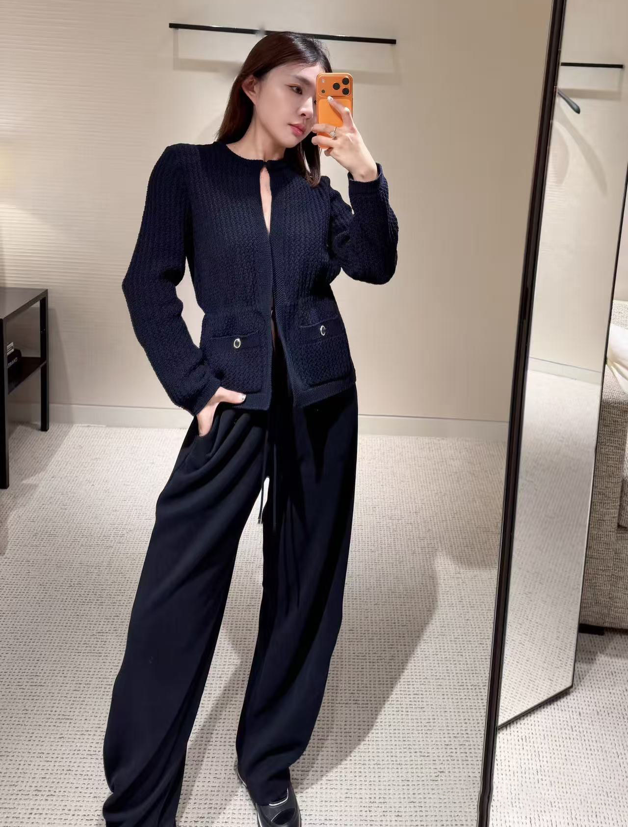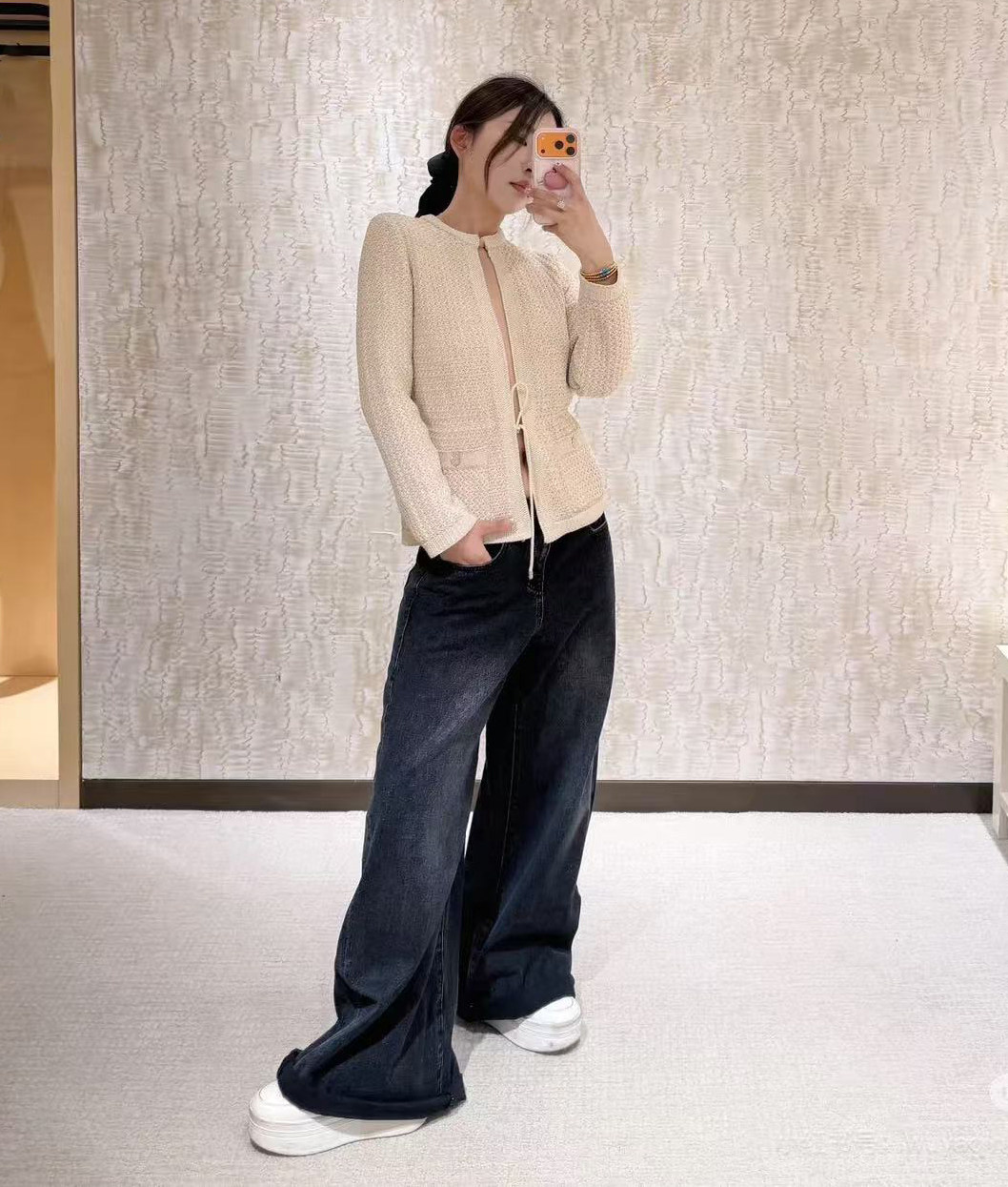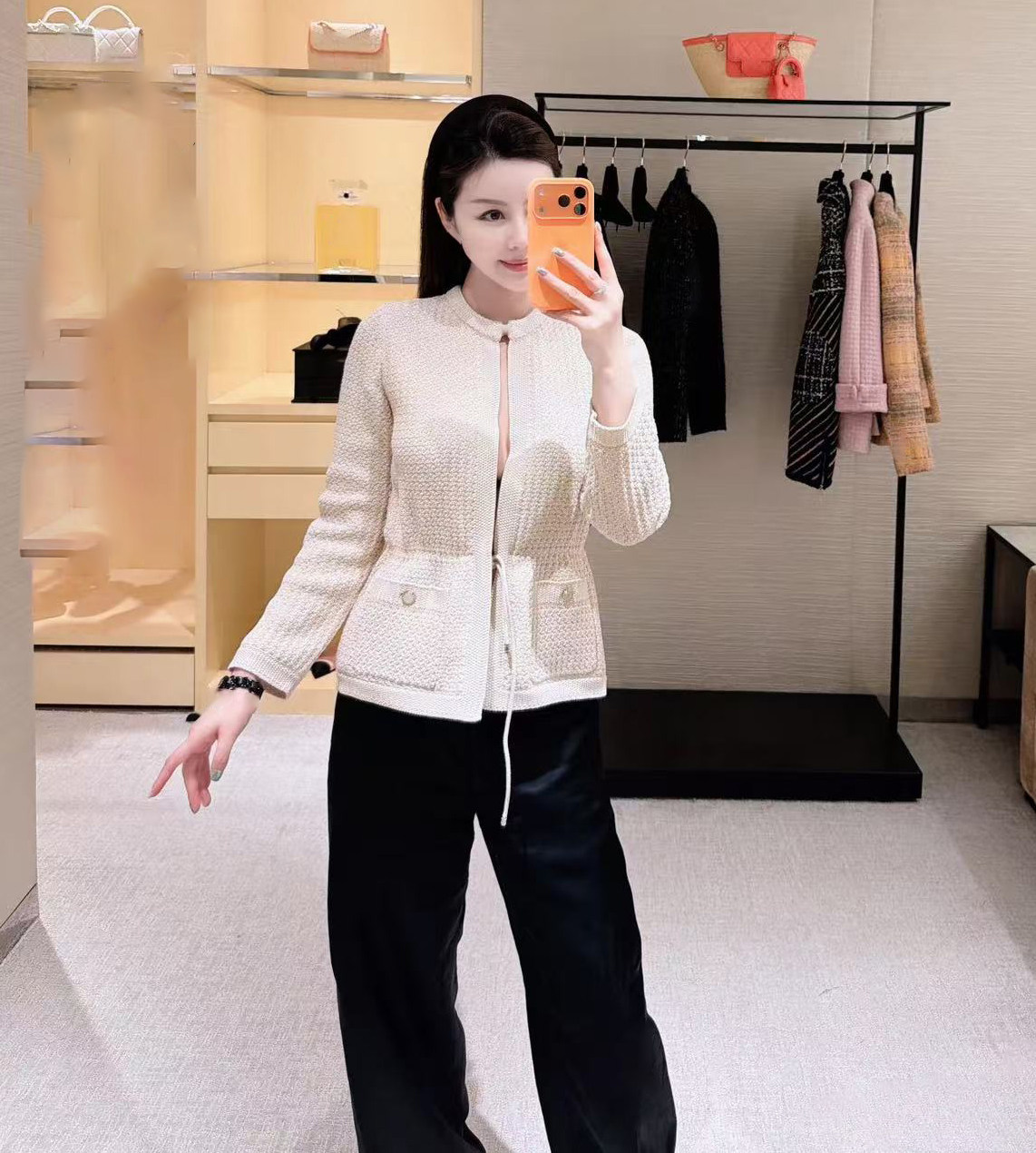 2025 autumn and winter French design sense foreign style fashion drawstring waist thin diamond buckle knitted crew neck cardigan jacket women