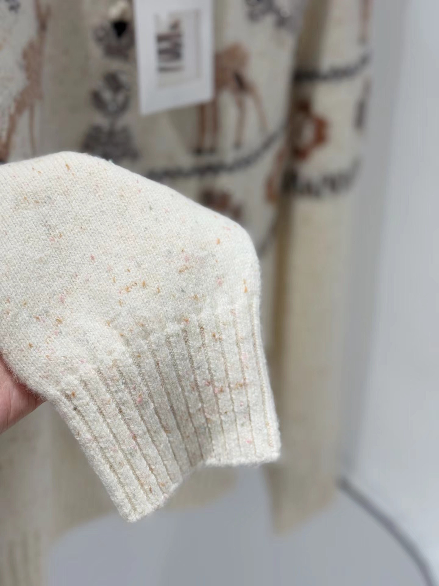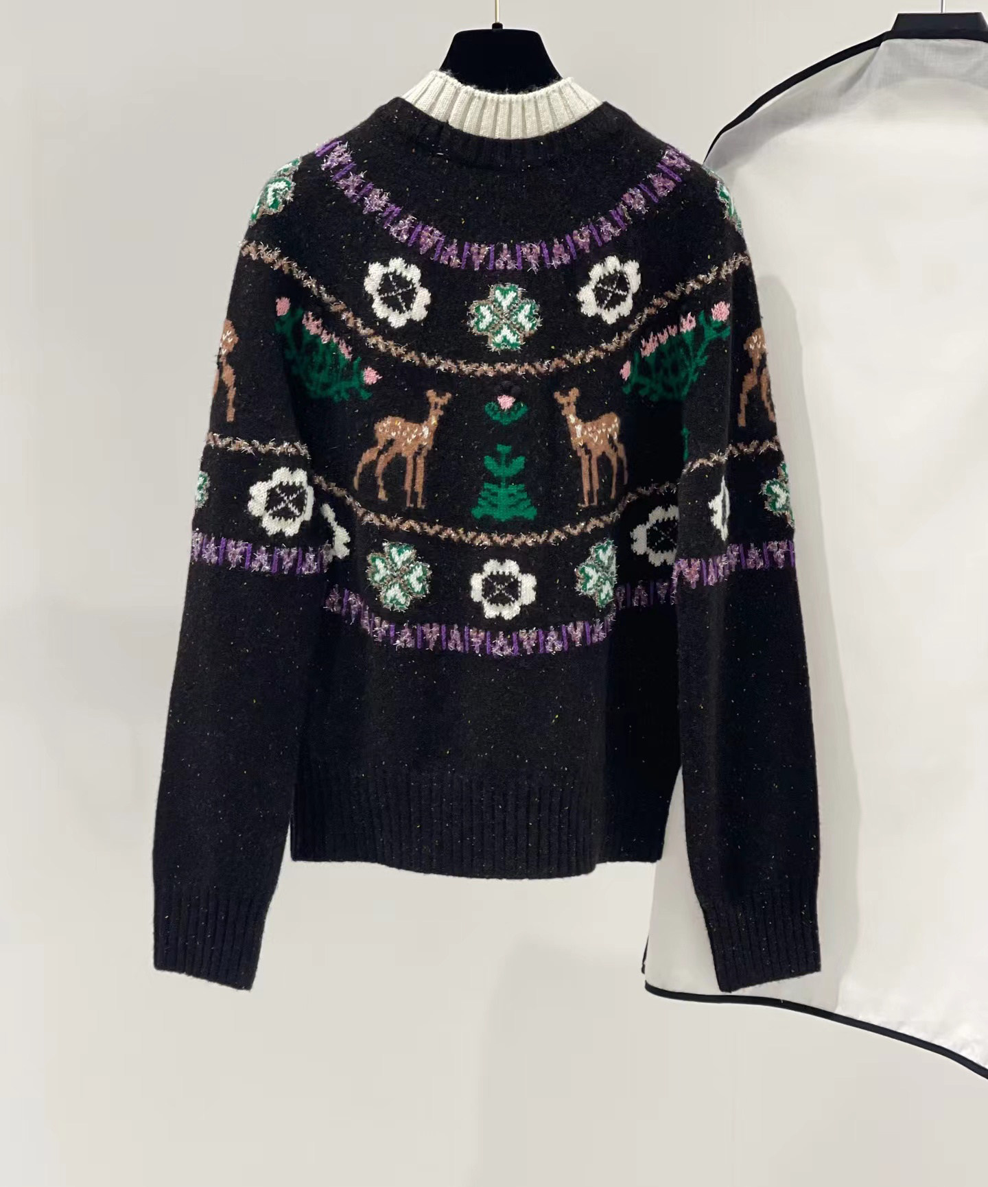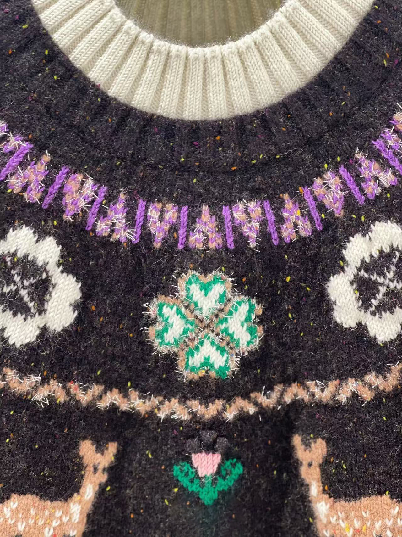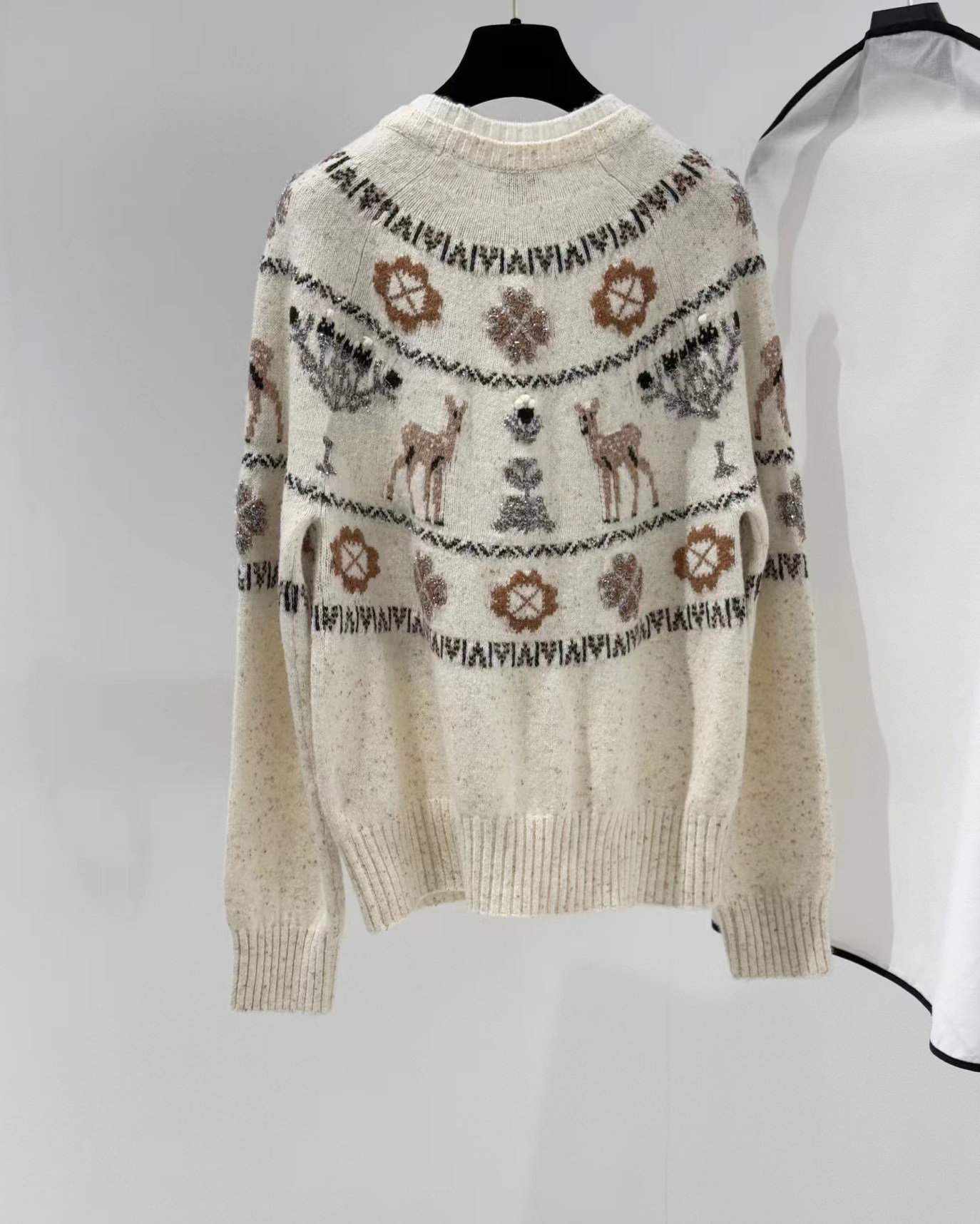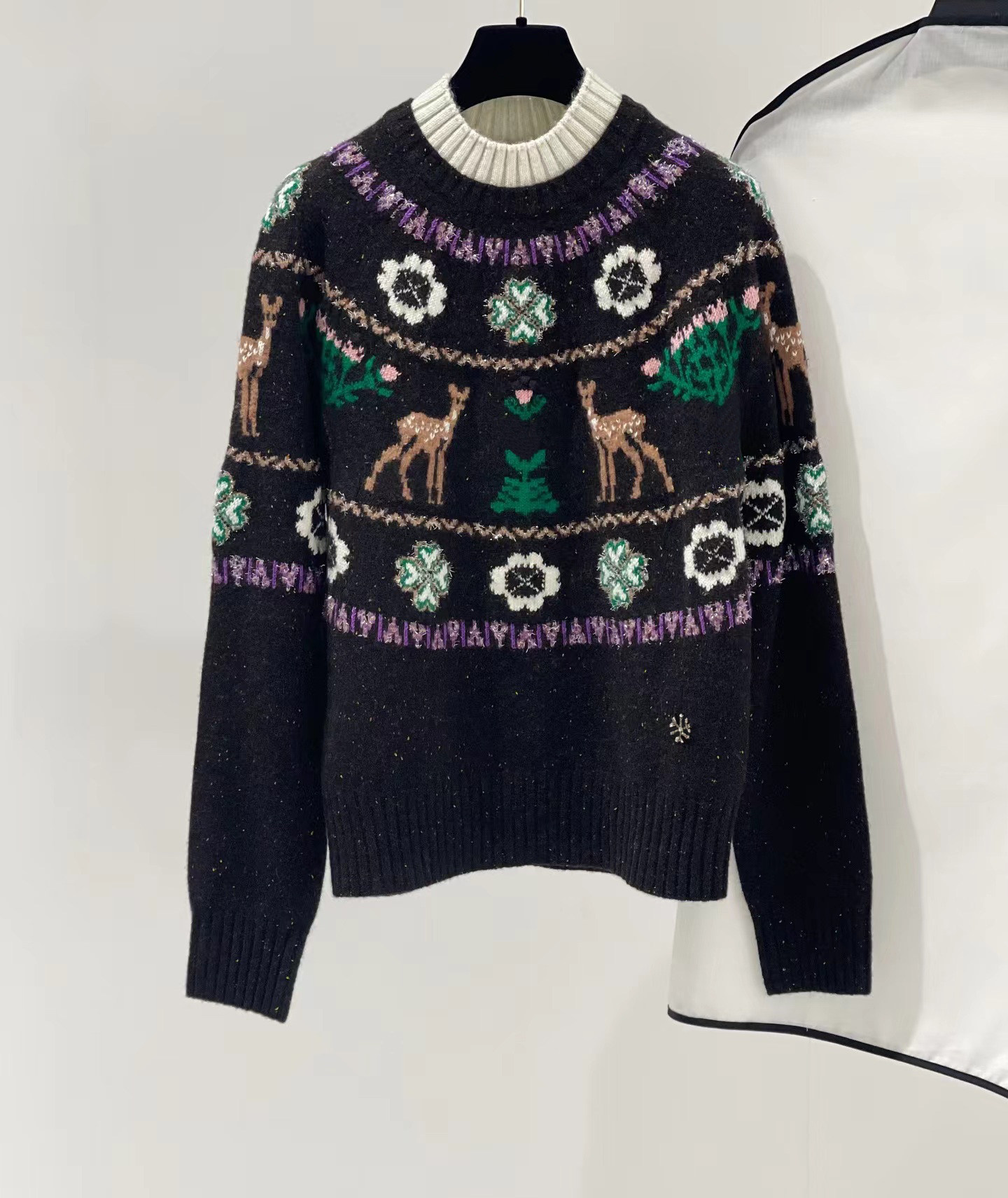 2025 autumn and winter heavy industry animal snowflake multi-element embroidery ski cashmere brown knitted cardigan pullover long sleeve