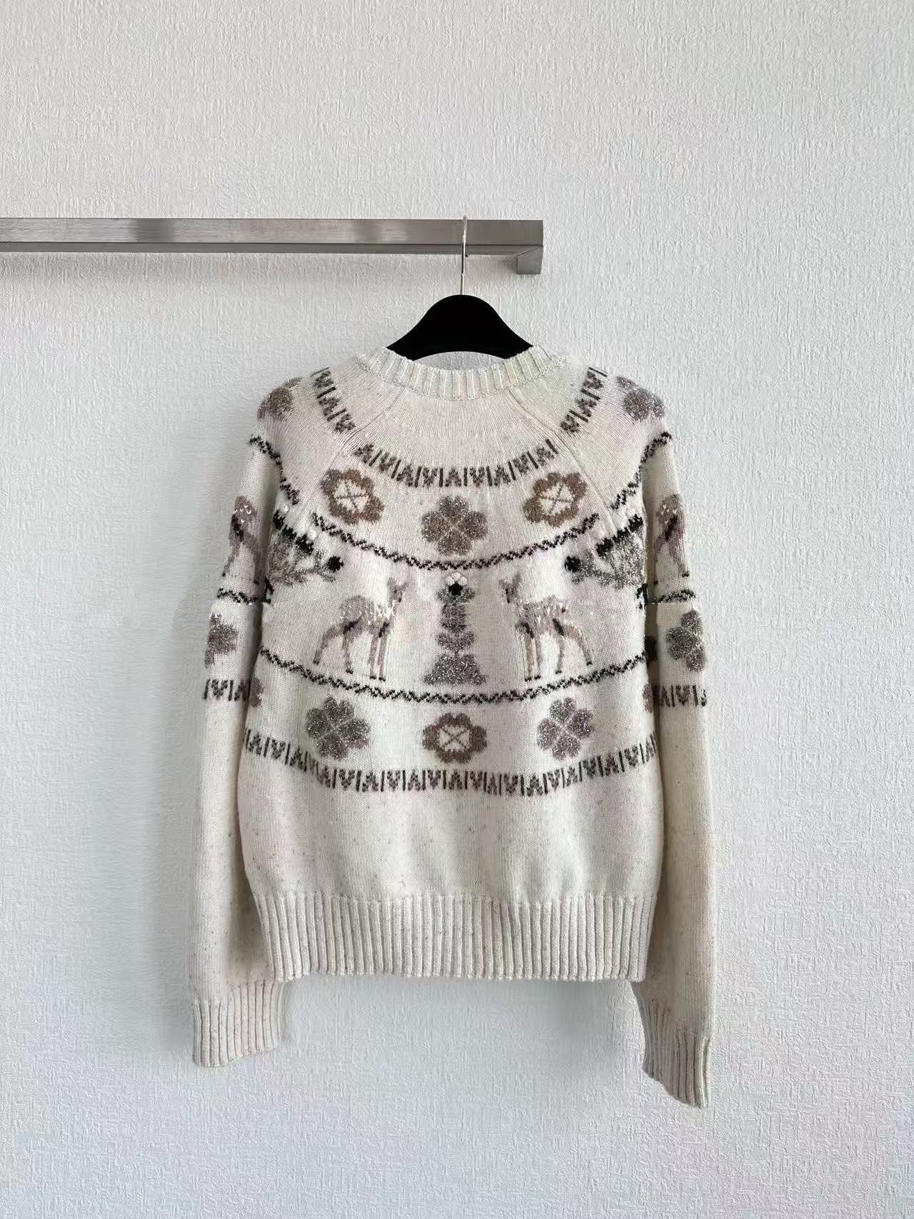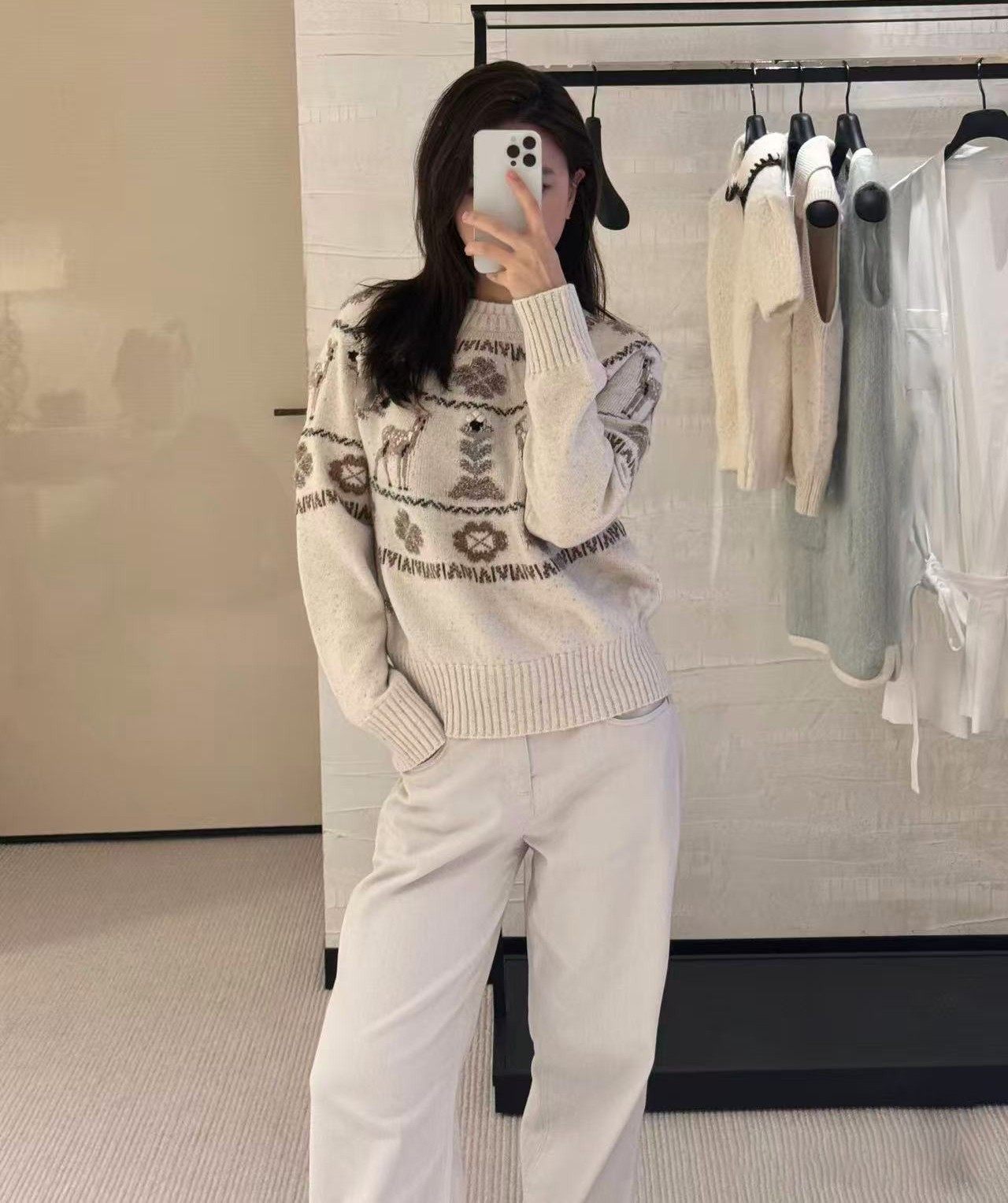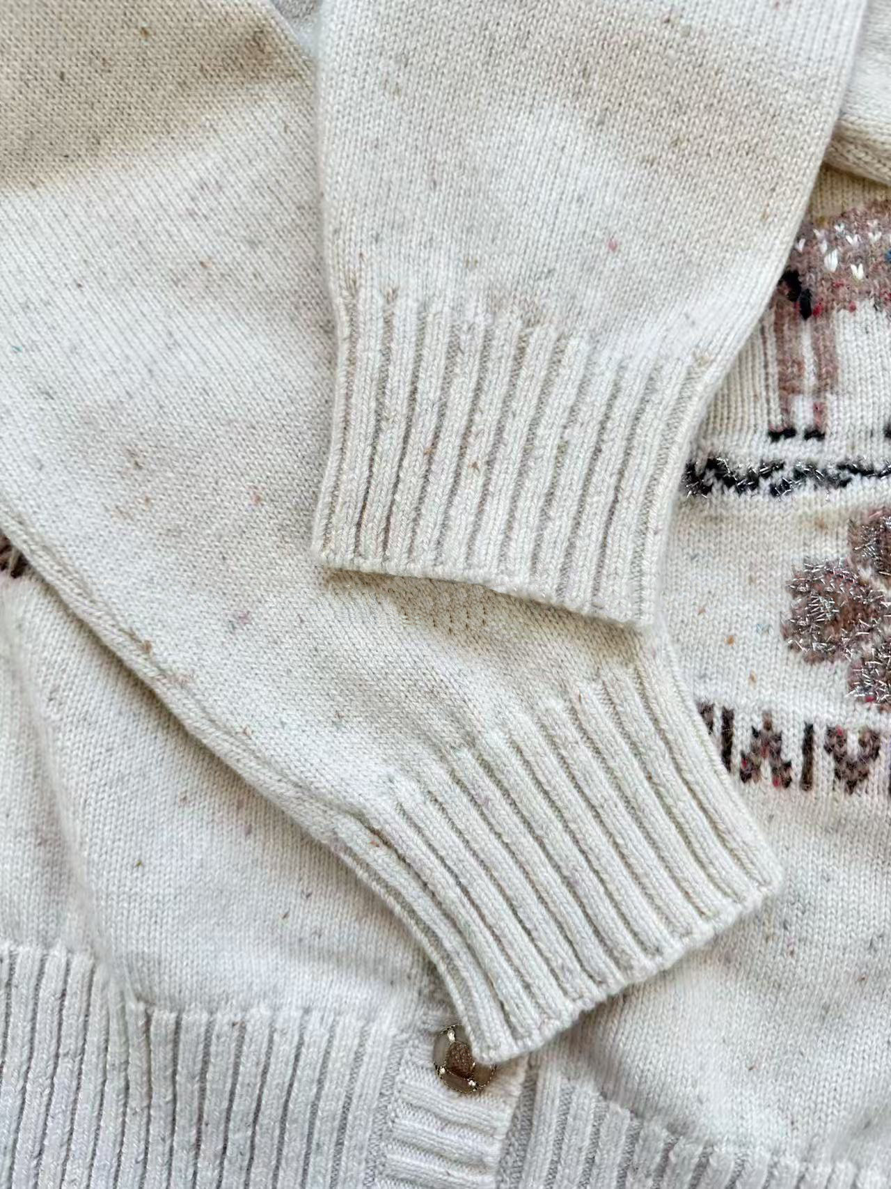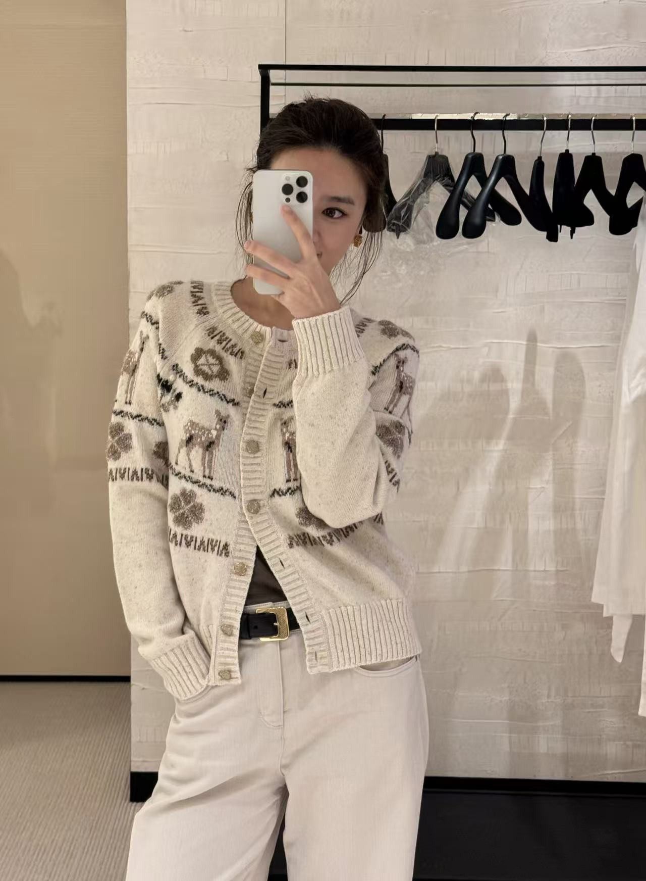 2025 autumn and winter heavy industry animal snowflake multi-element embroidery ski cashmere brown knitted cardigan pullover long sleeve