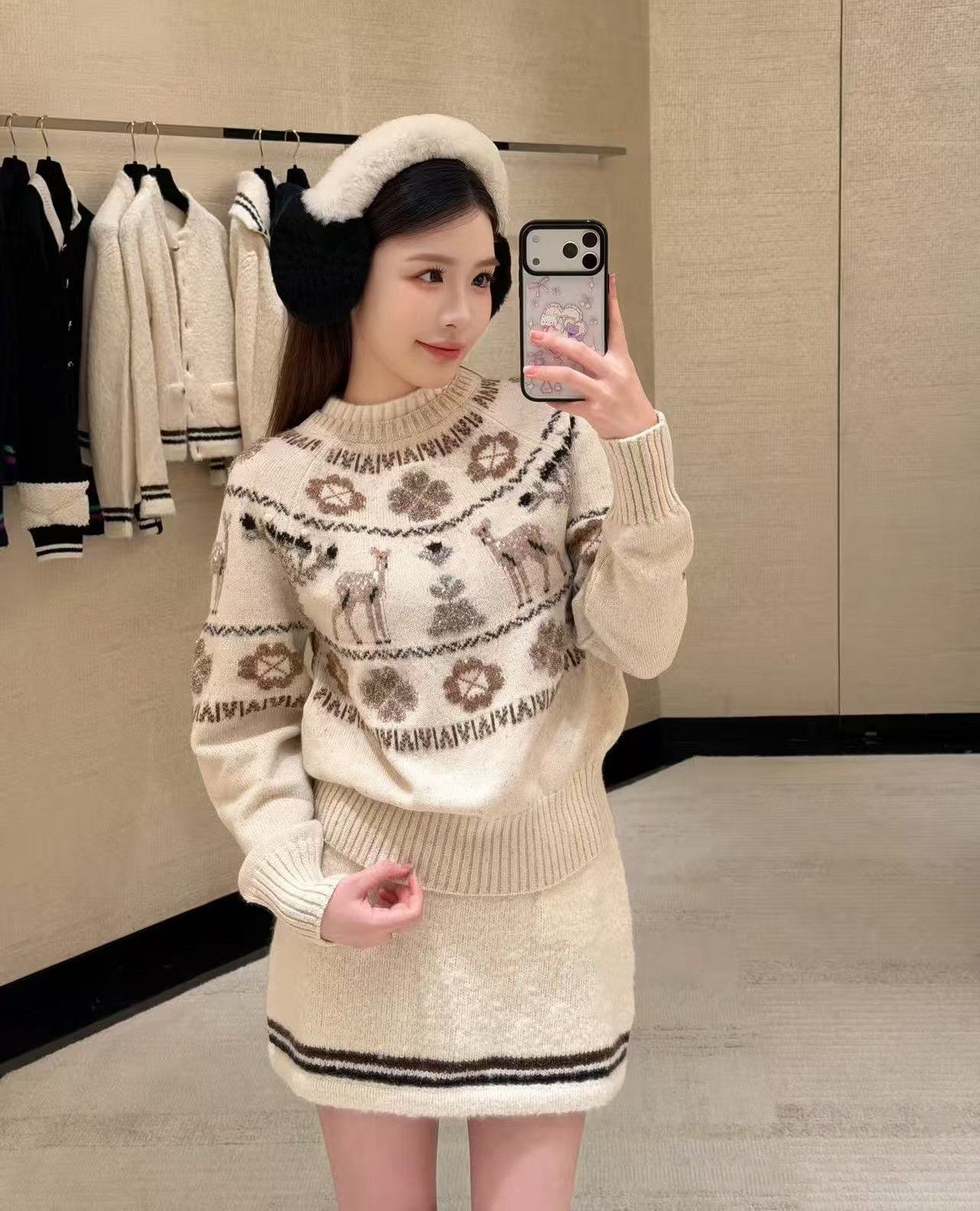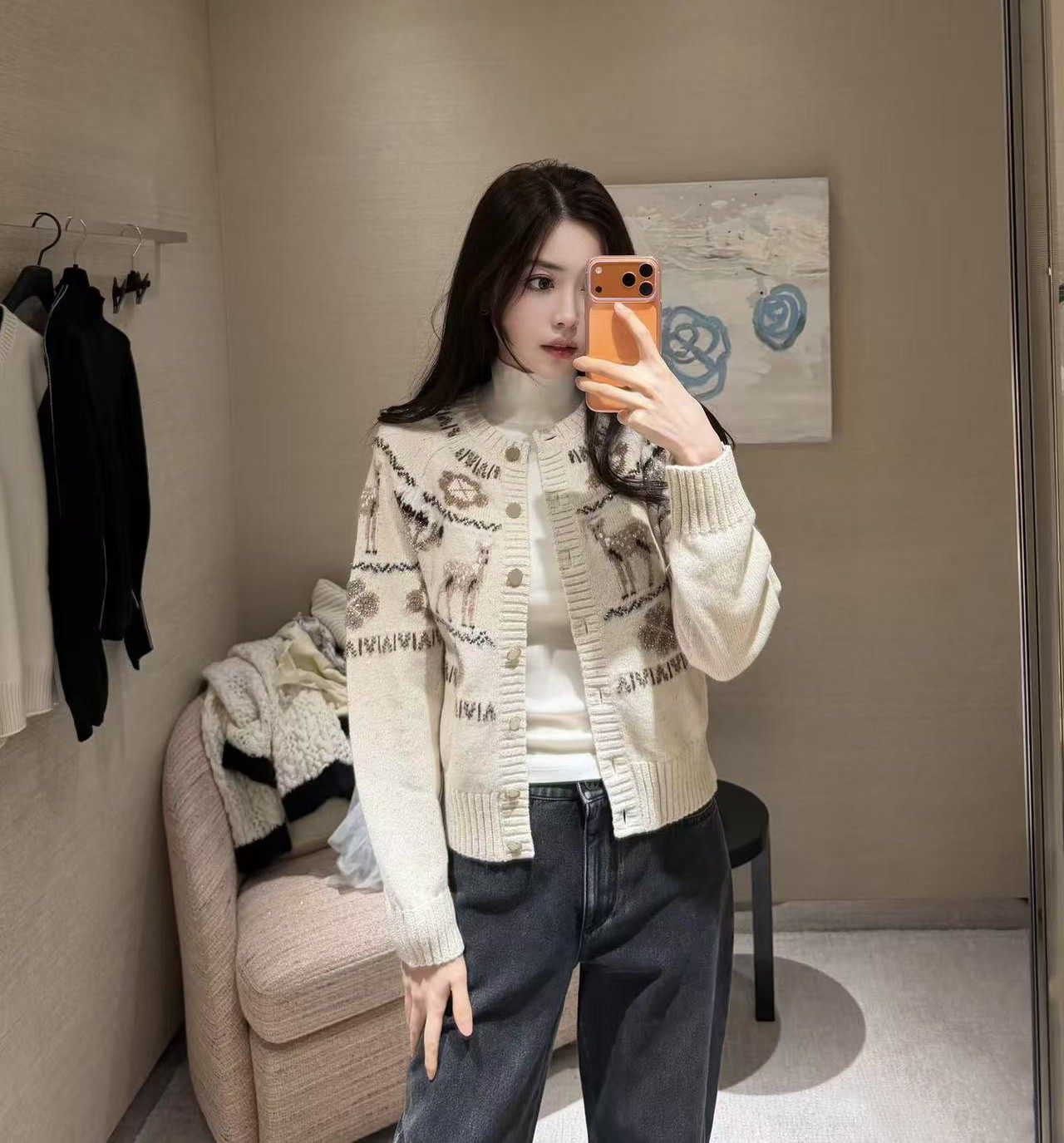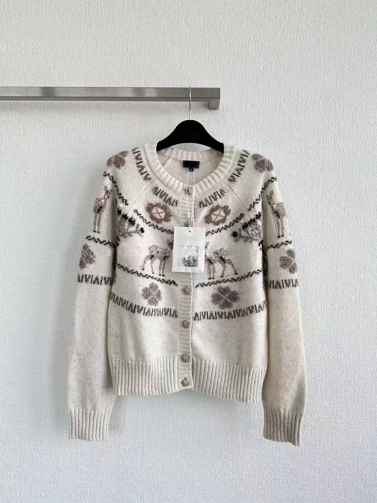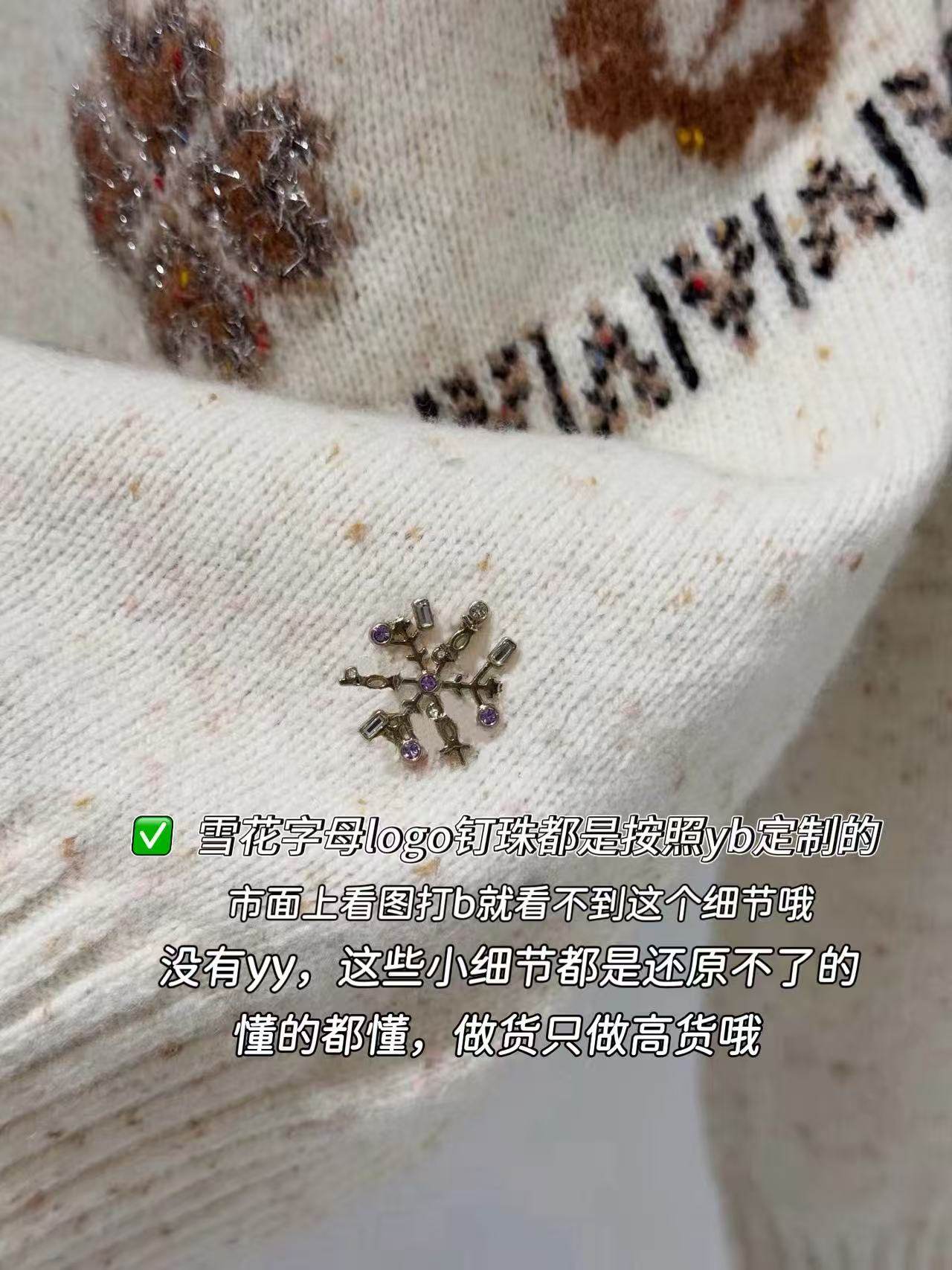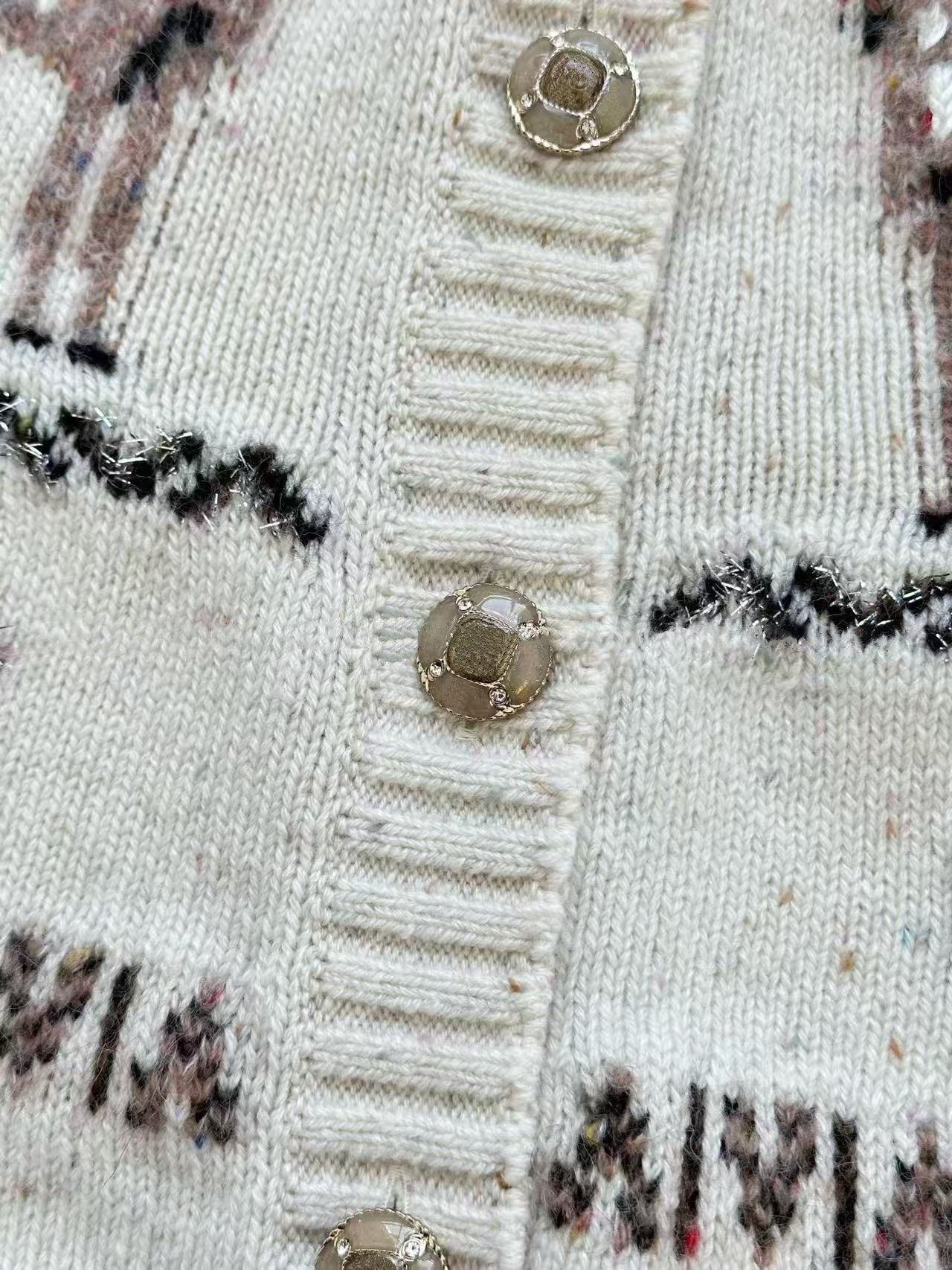 2025 autumn and winter heavy industry animal snowflake multi-element embroidery ski cashmere brown knitted cardigan pullover long sleeve