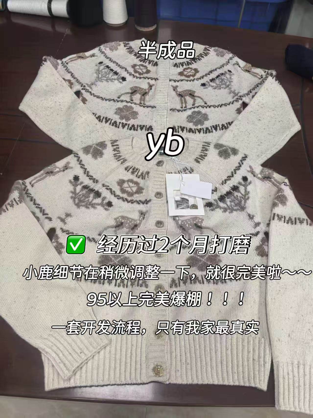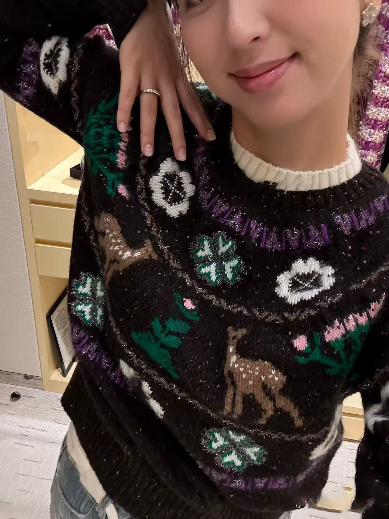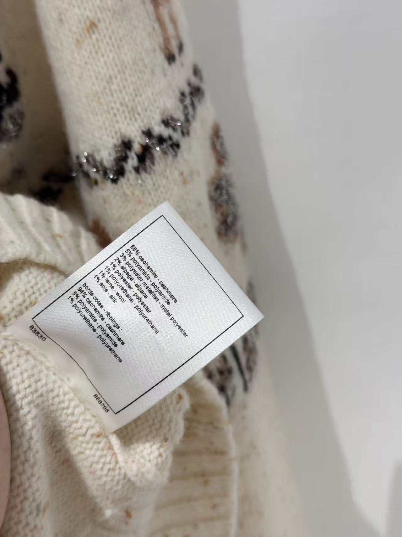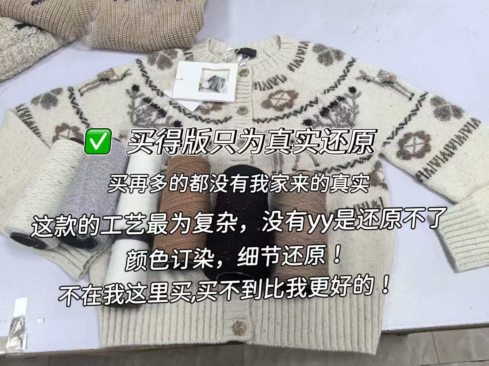2025 autumn and winter heavy industry animal snowflake multi-element embroidery ski cashmere brown knitted cardigan pullover long sleeve