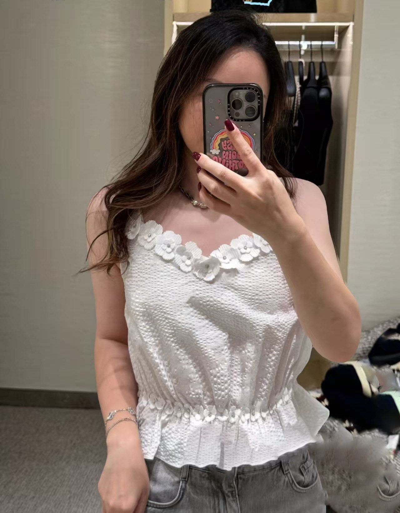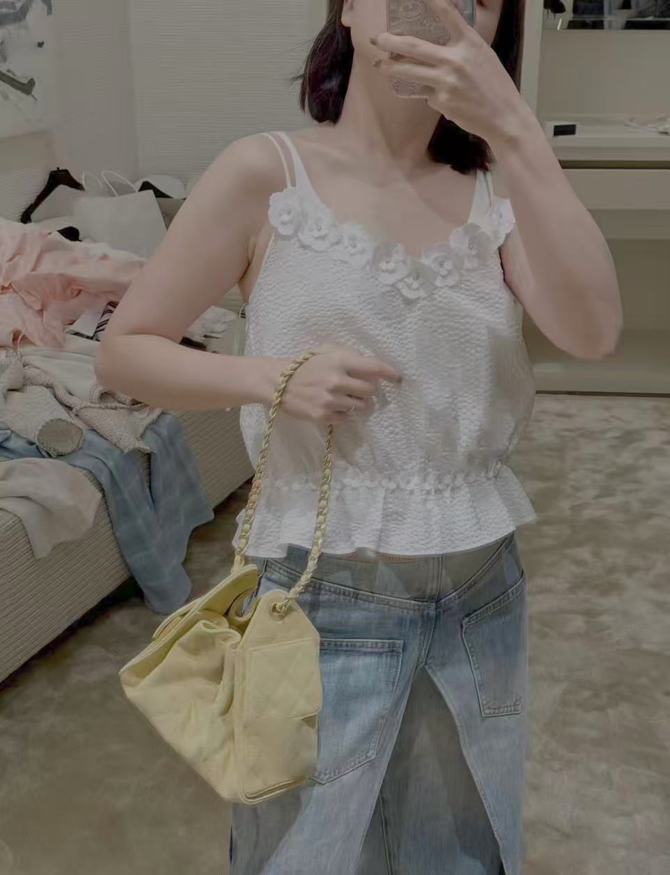 2025 autumn and winter heavy industry camellia delicate three-dimensional flower dark pattern fashion sleeveless vest suspender top women