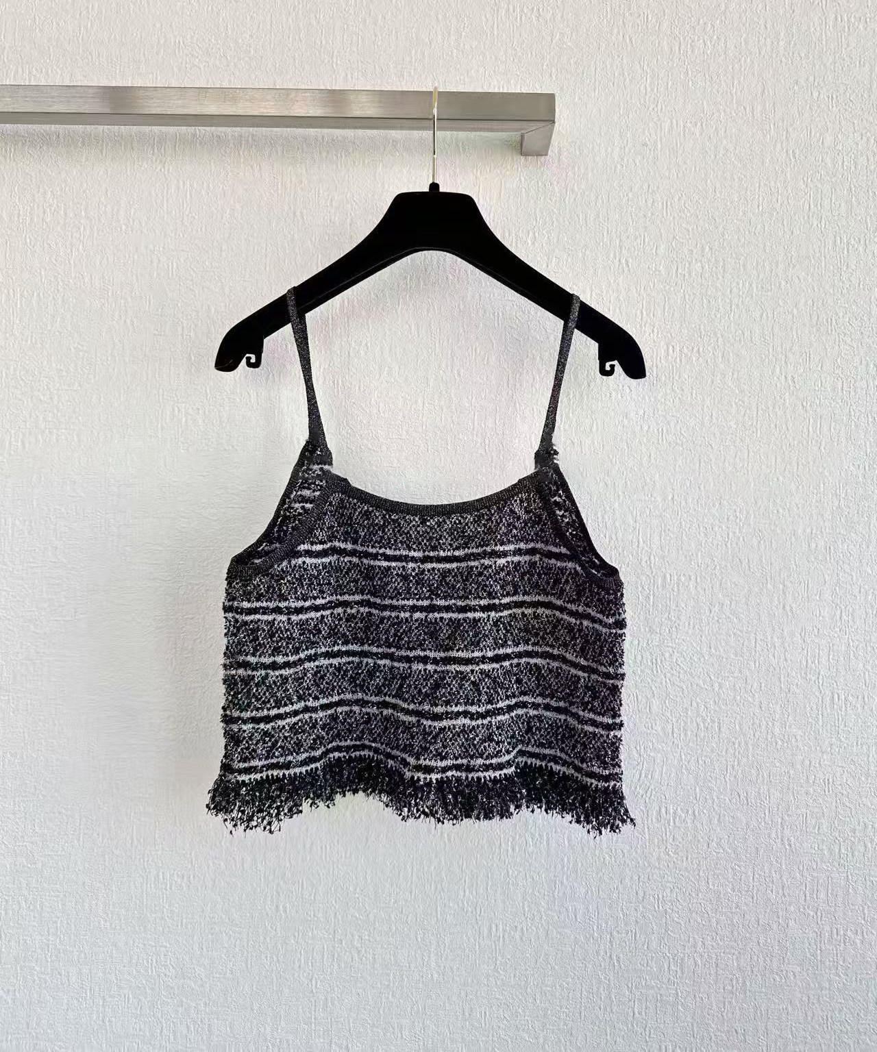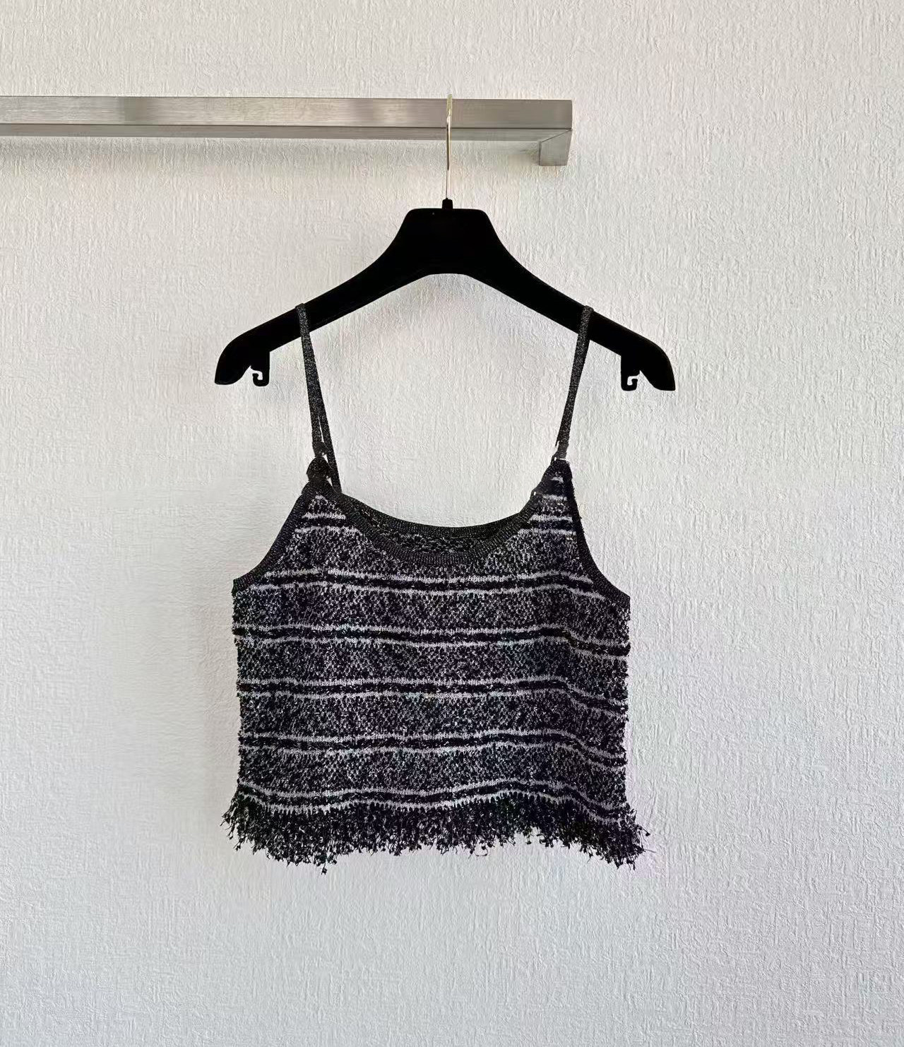 2025 autumn and winter heavy industry model high-end blue silver bright line fringed sleeveless sling vest single-breasted cardigan women