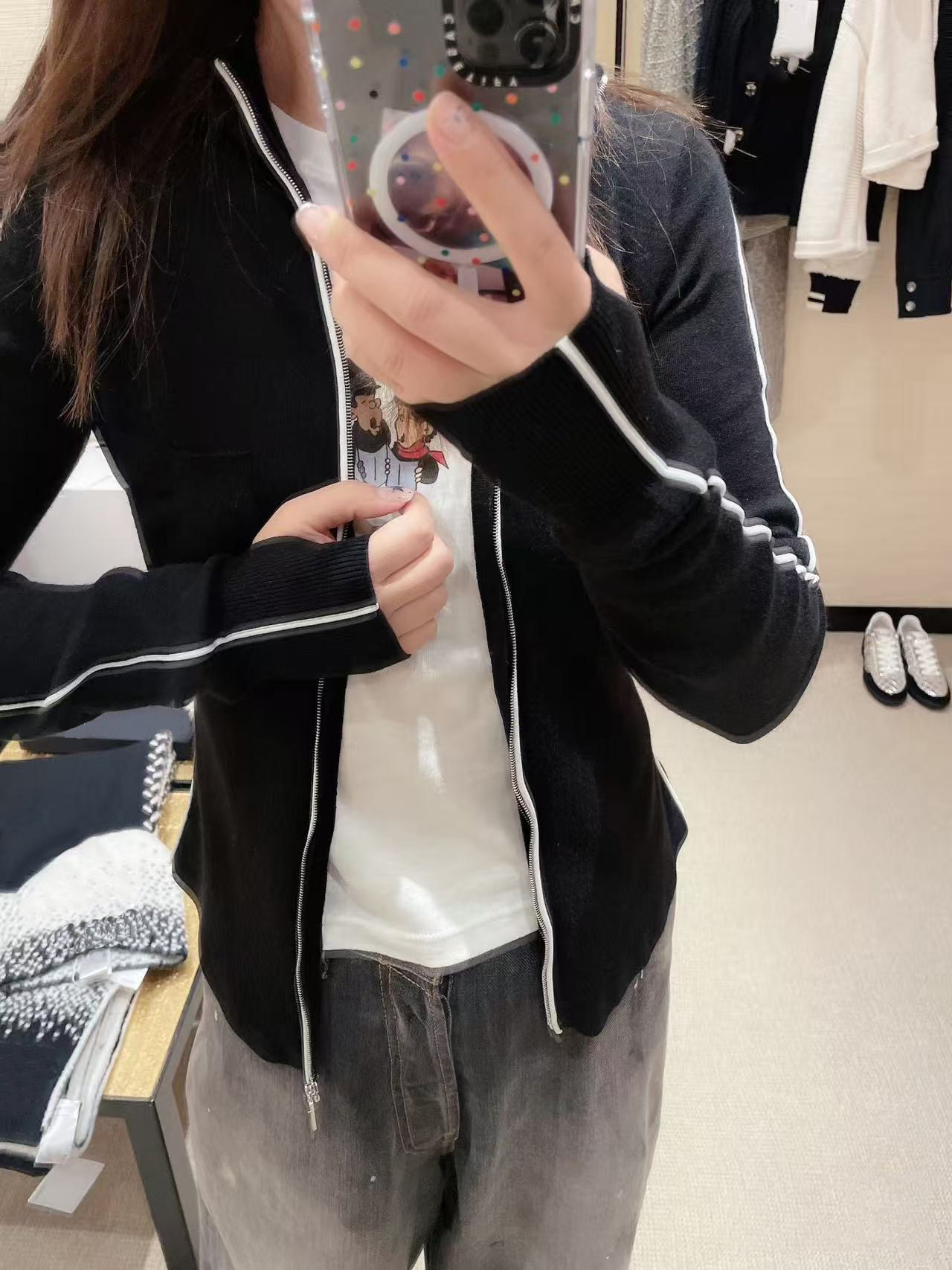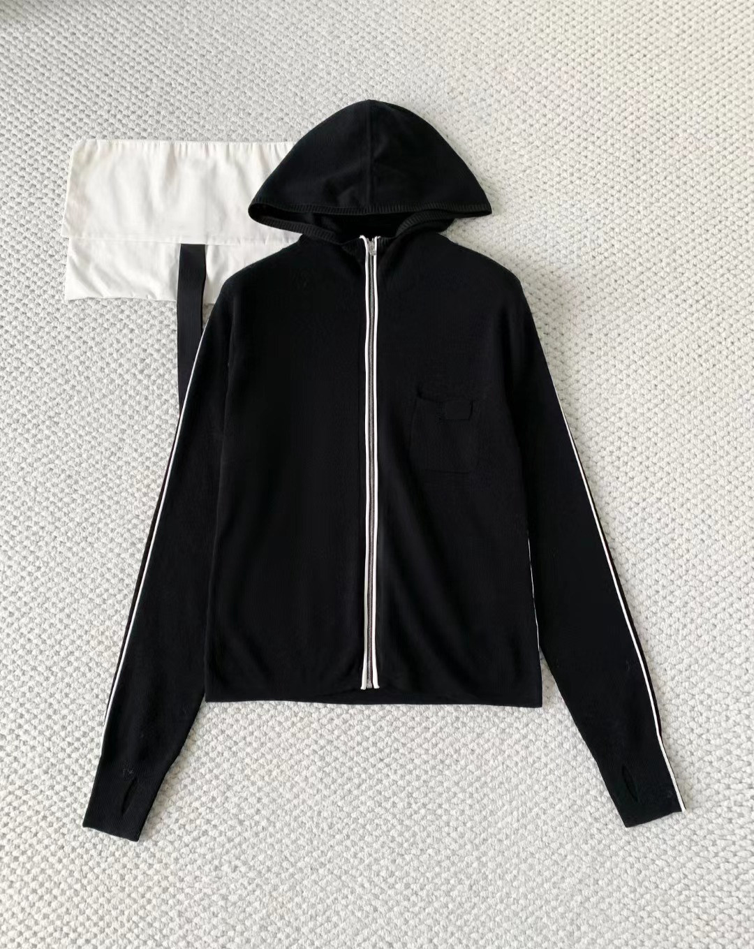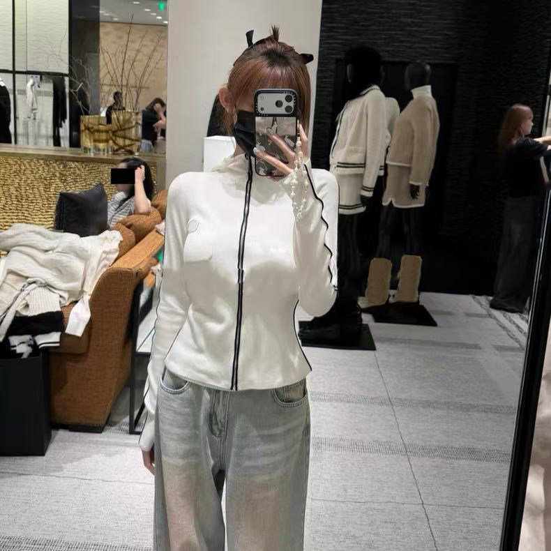 2025 autumn and winter heavy industry skiing letter embroidery slim-fitting thin cashmere knitted hooded zipper long-sleeved cardigan jacket