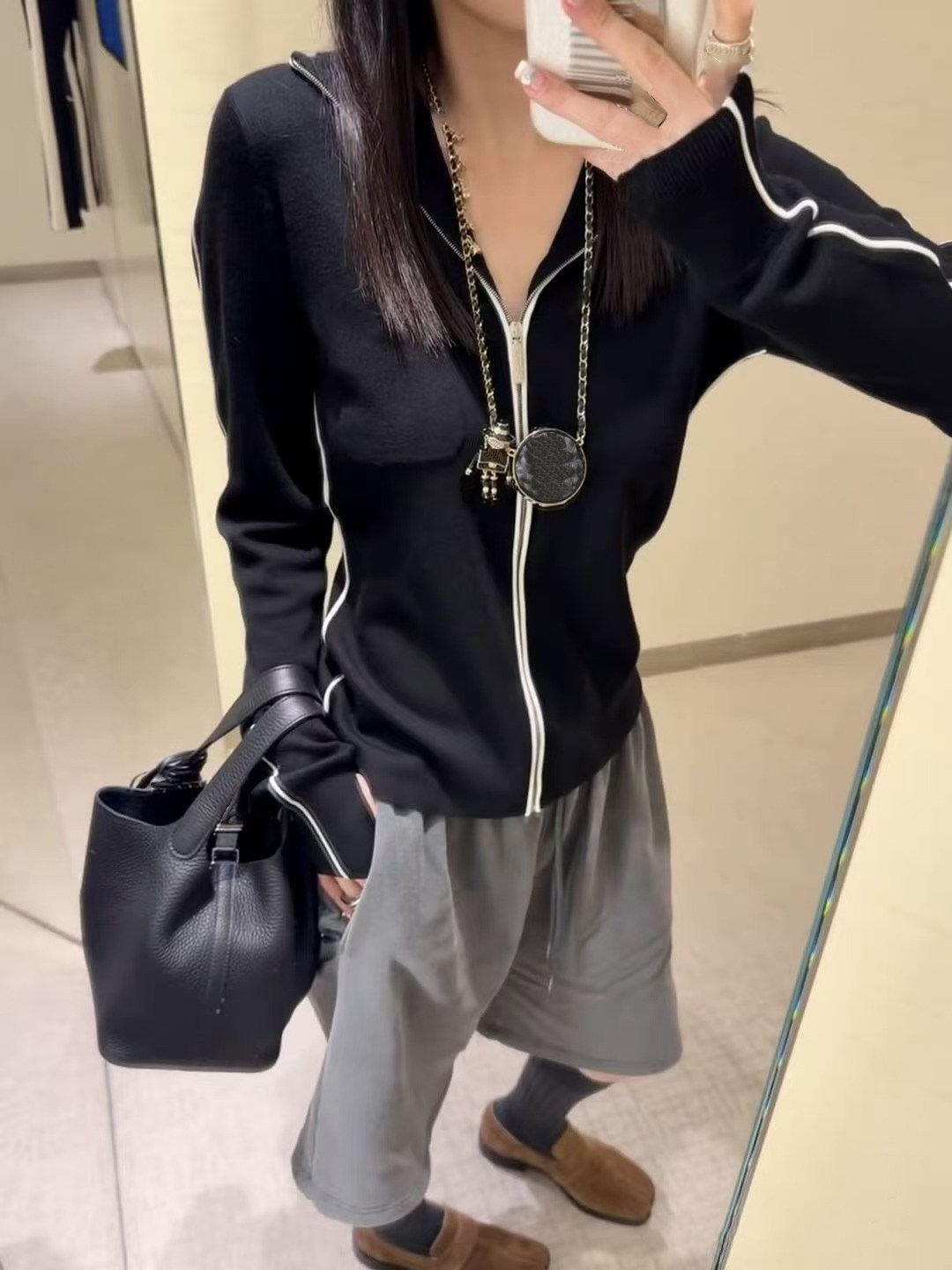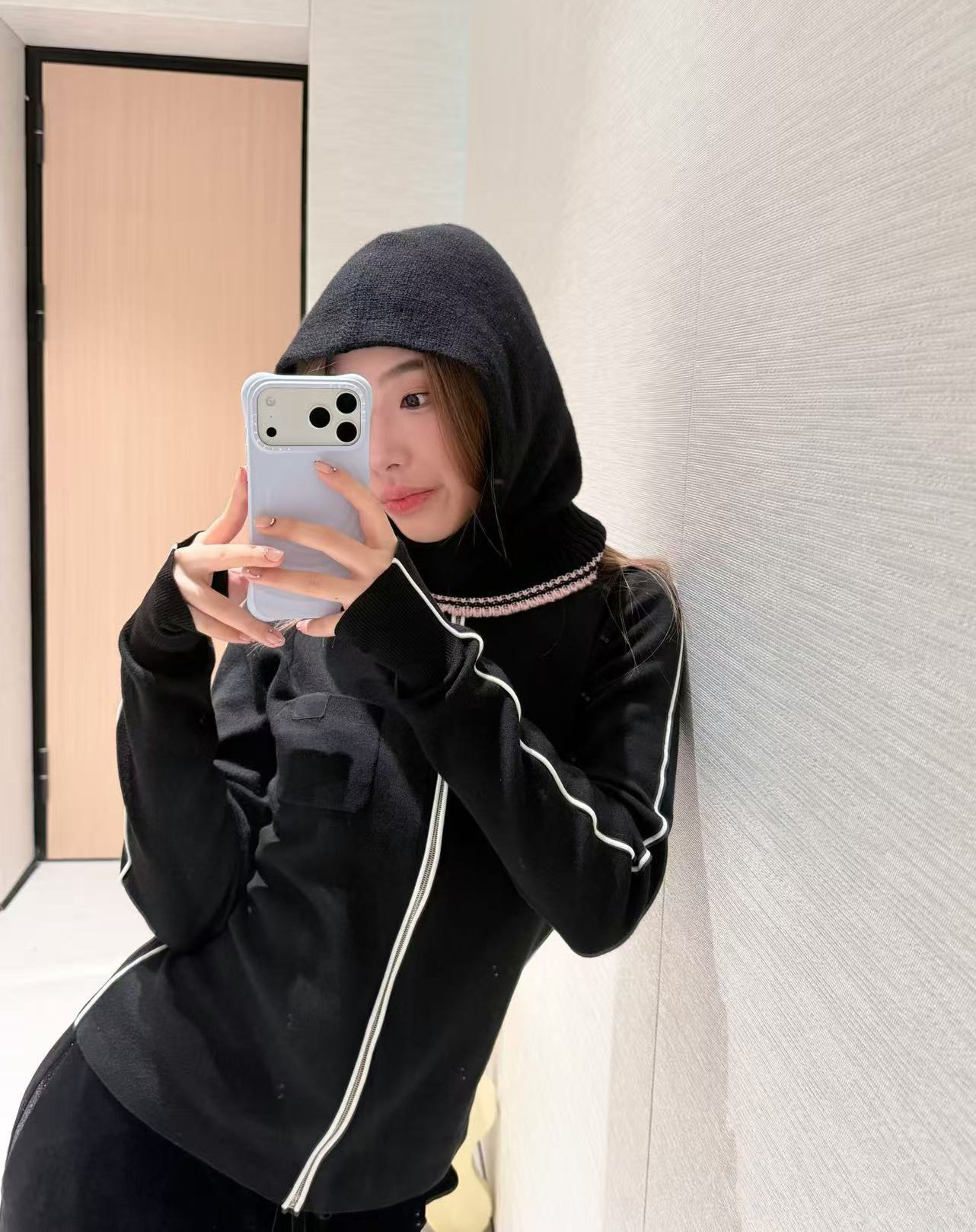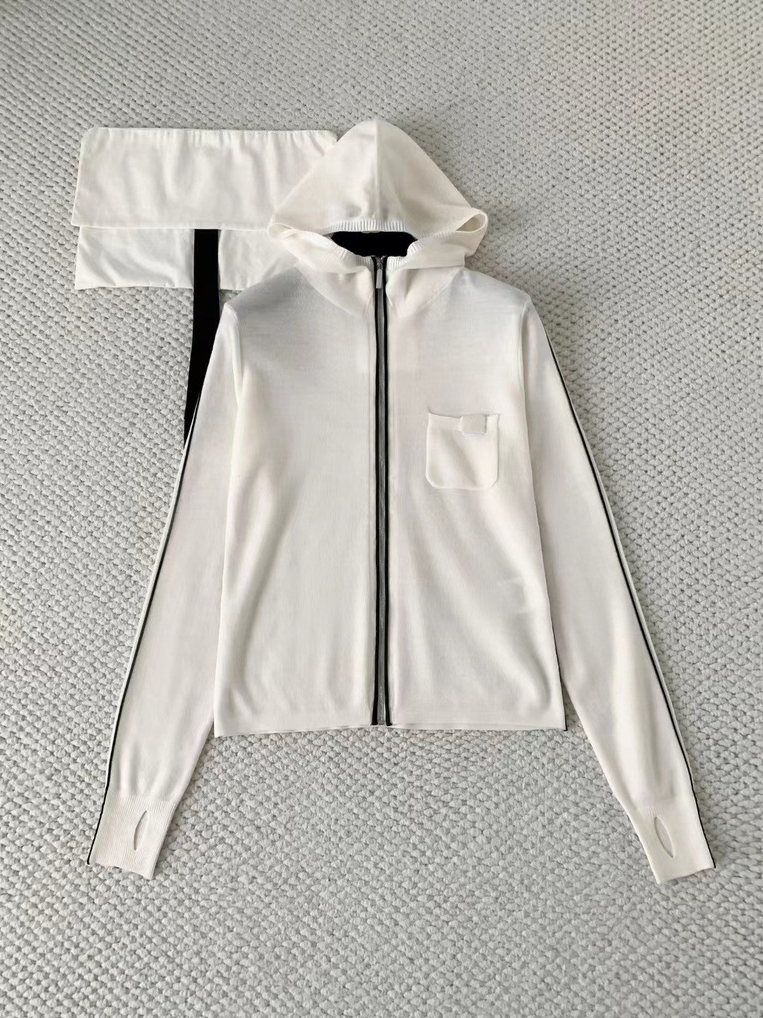 2025 autumn and winter heavy industry skiing letter embroidery slim-fitting thin cashmere knitted hooded zipper long-sleeved cardigan jacket