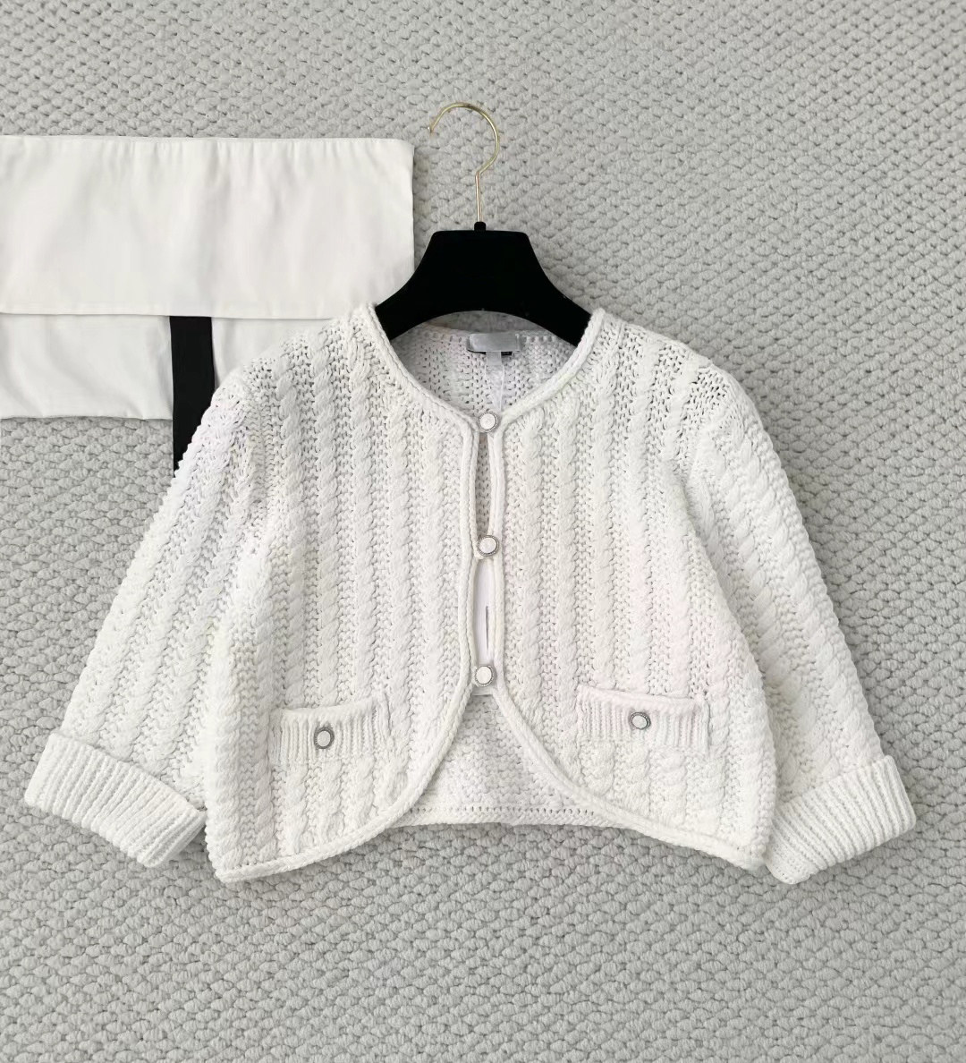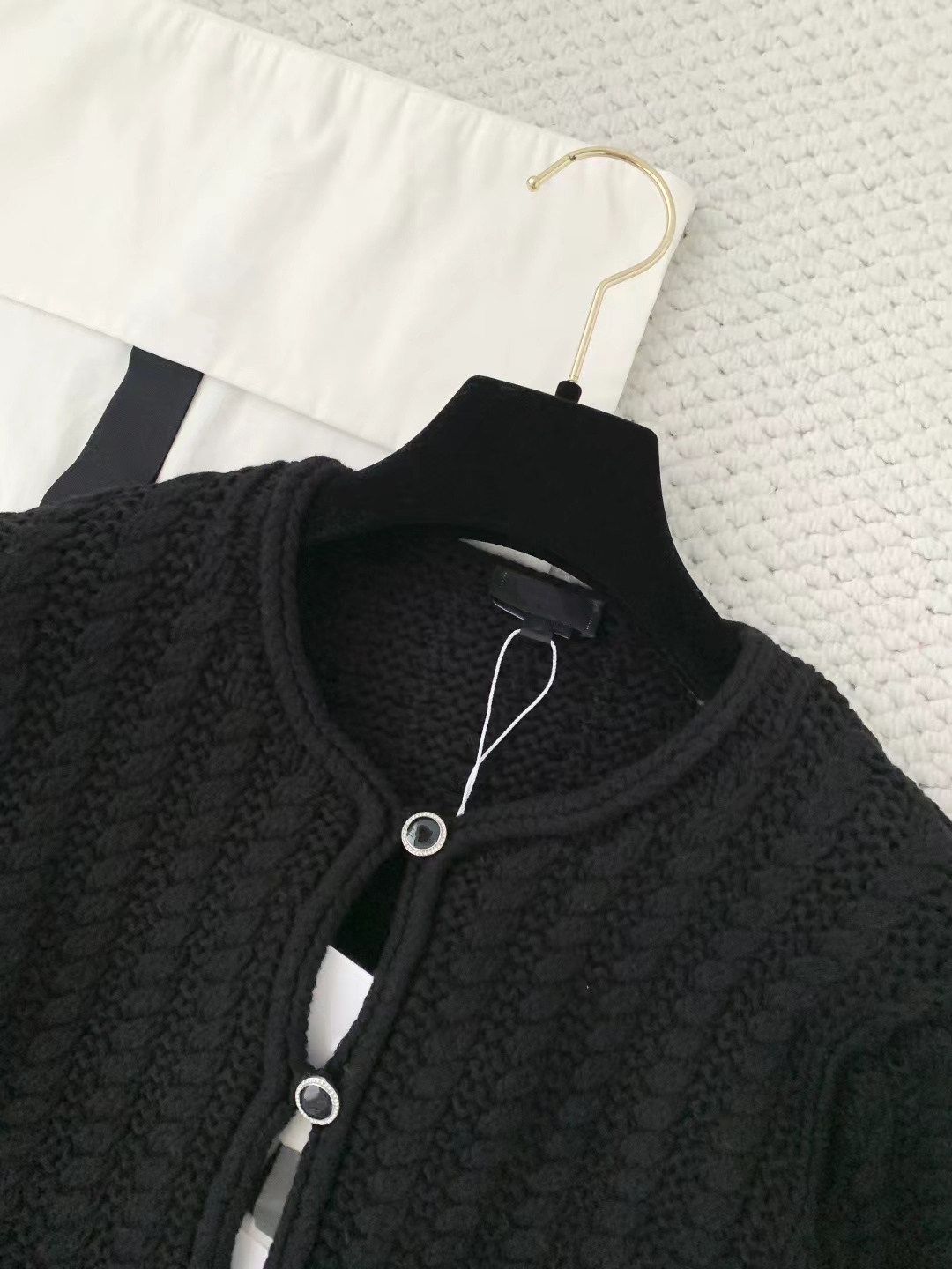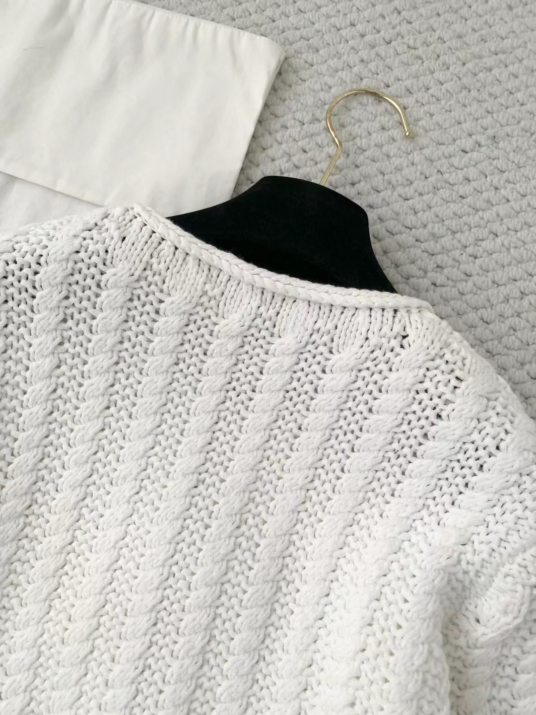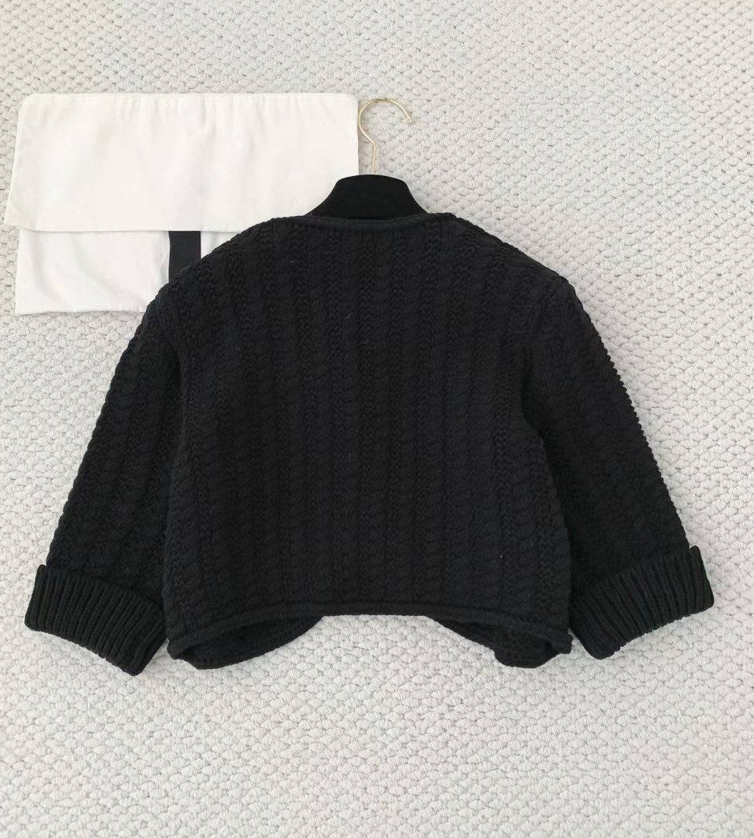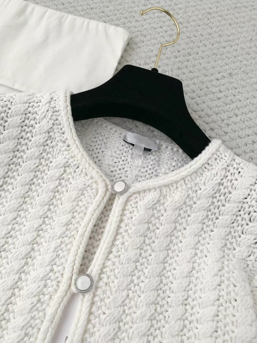 2025 autumn and winter temperament heavy industry hollow age-reducing twist knitted button-up cardigan short small long-sleeved top women