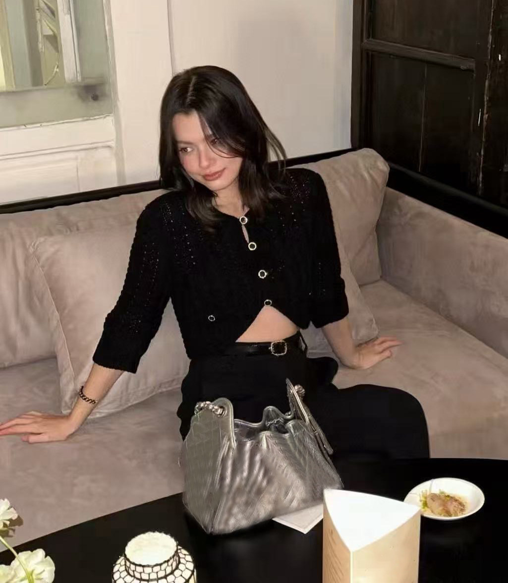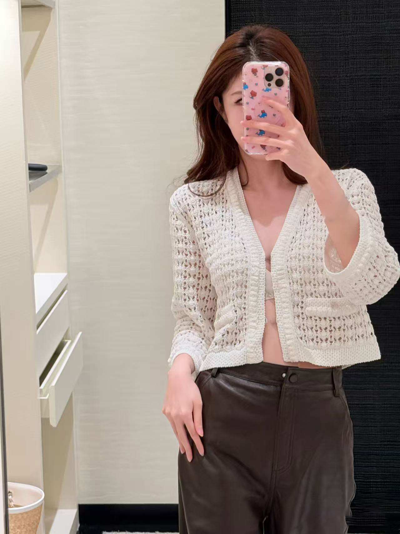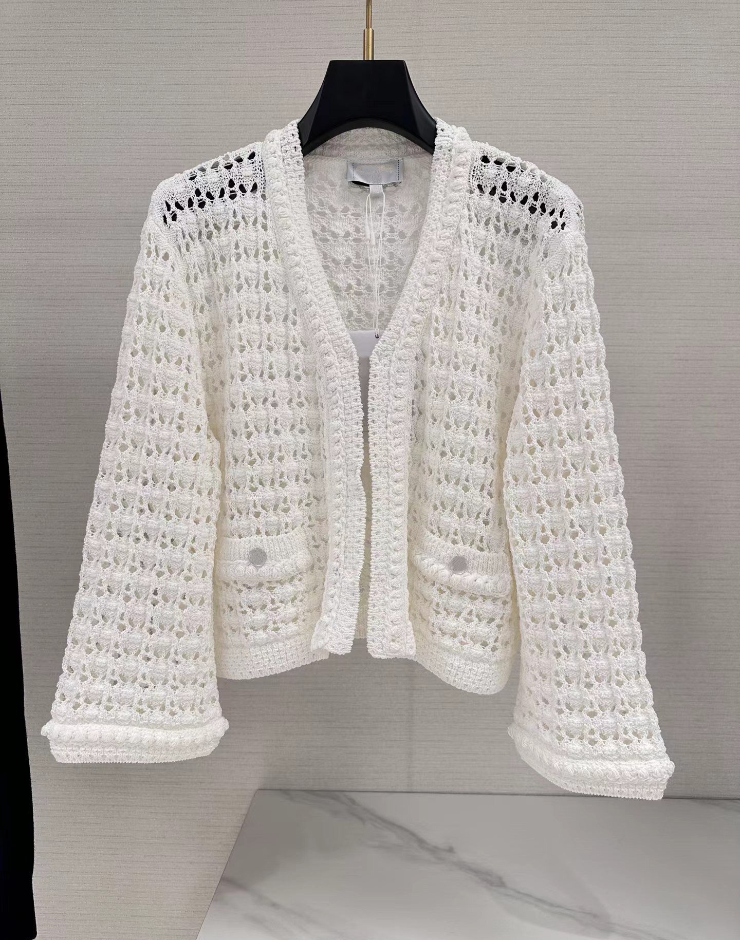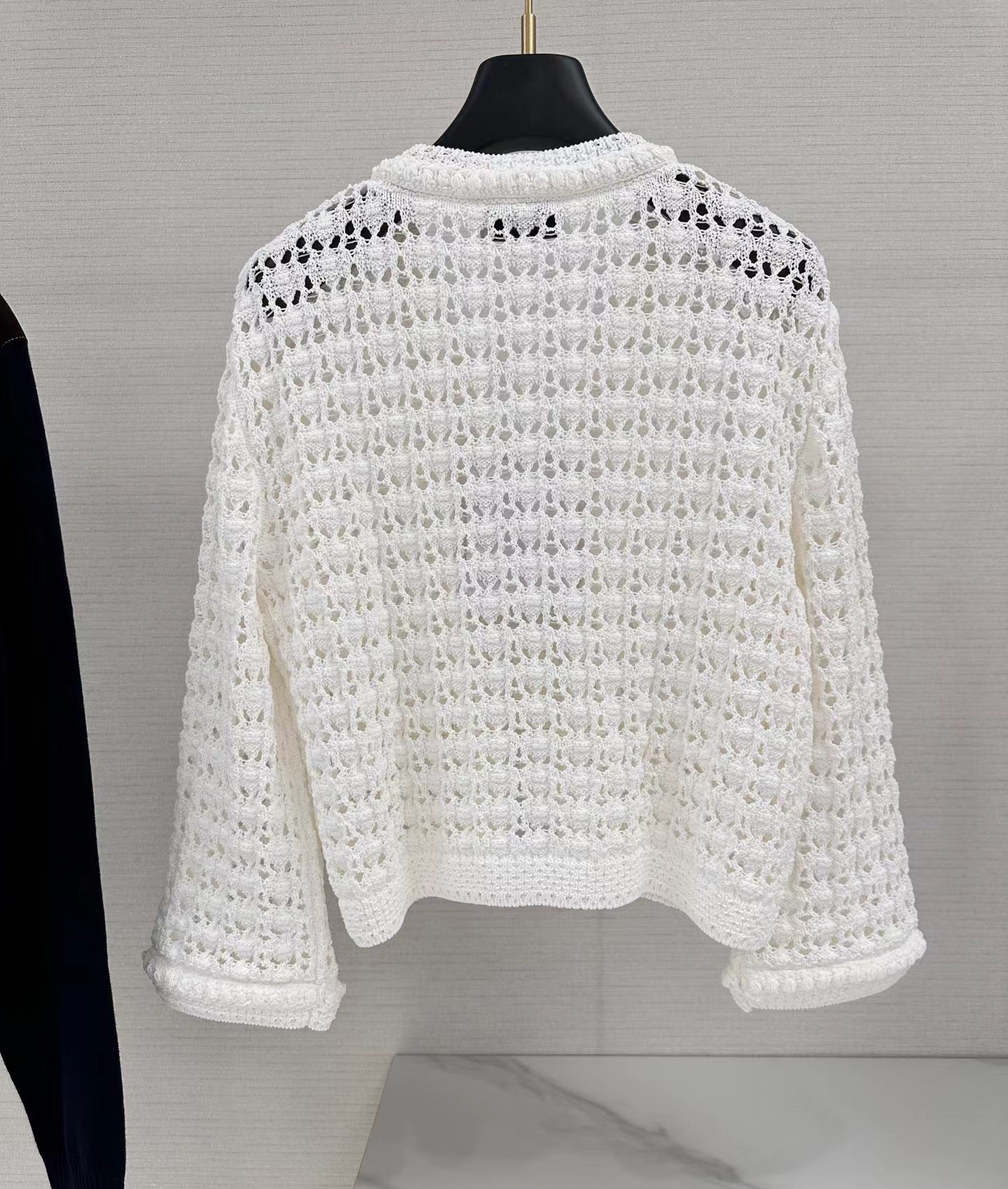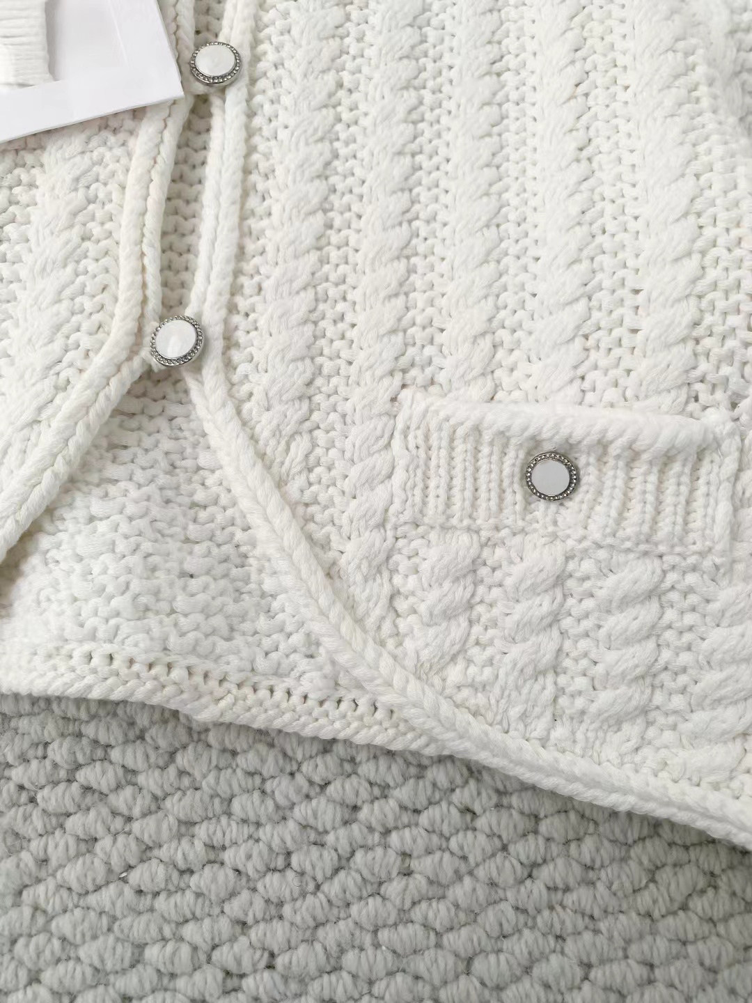 2025 autumn and winter temperament heavy industry hollow age-reducing twist knitted button-up cardigan short small long-sleeved top women