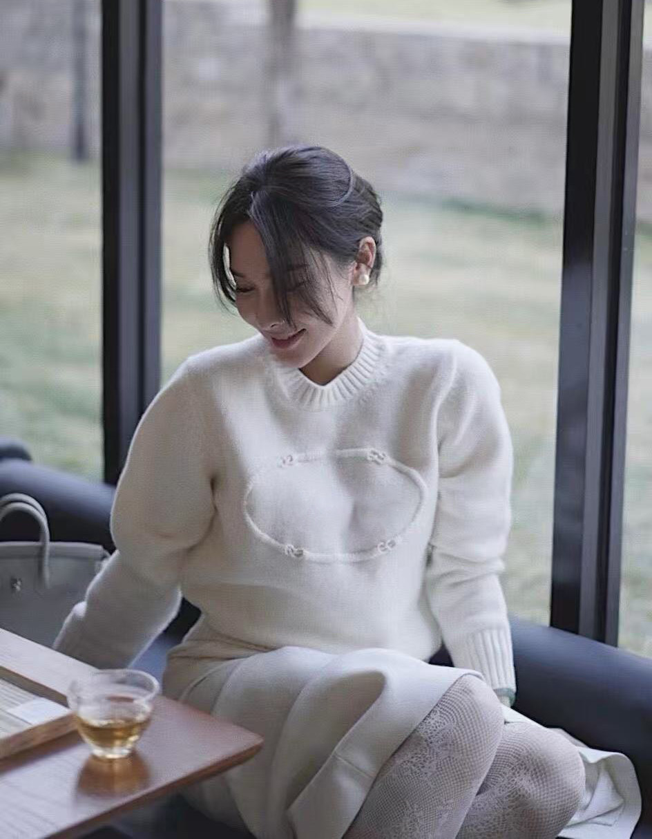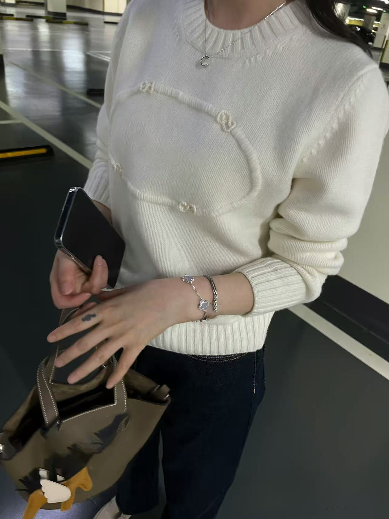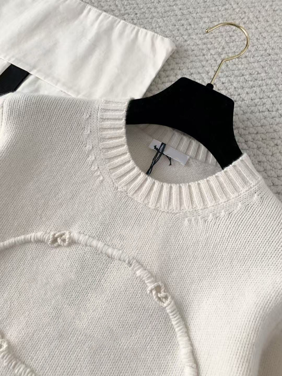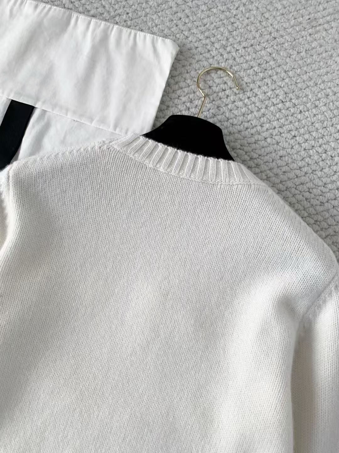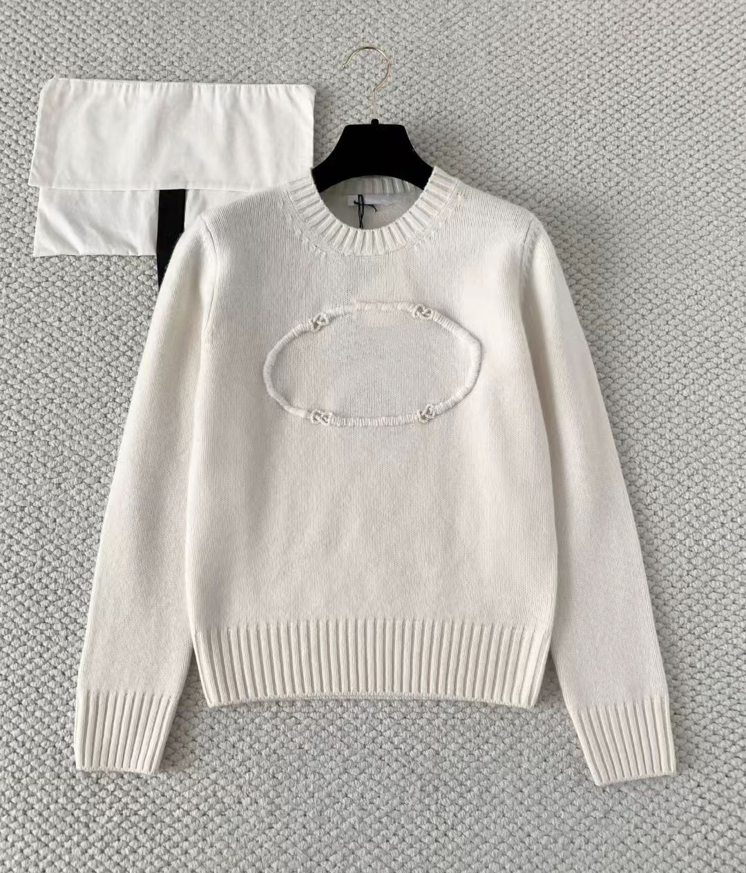 2025 Autumn/Winter Classic Premium White Letter Embroidered Jacquard Crew Neck Soft Cashmere Knitted Pullover Long Sleeve Top