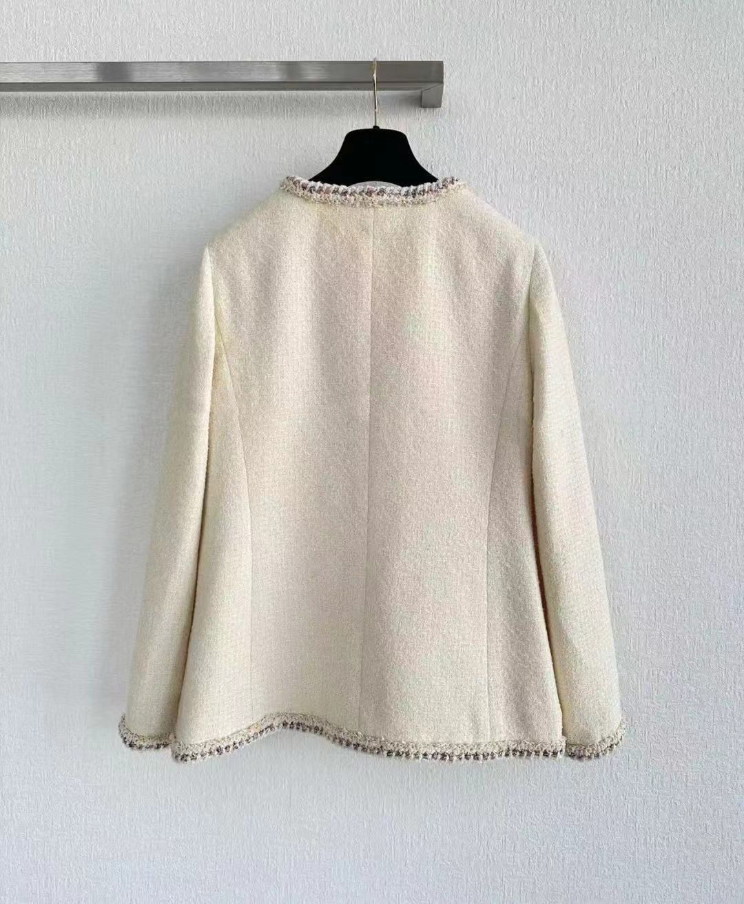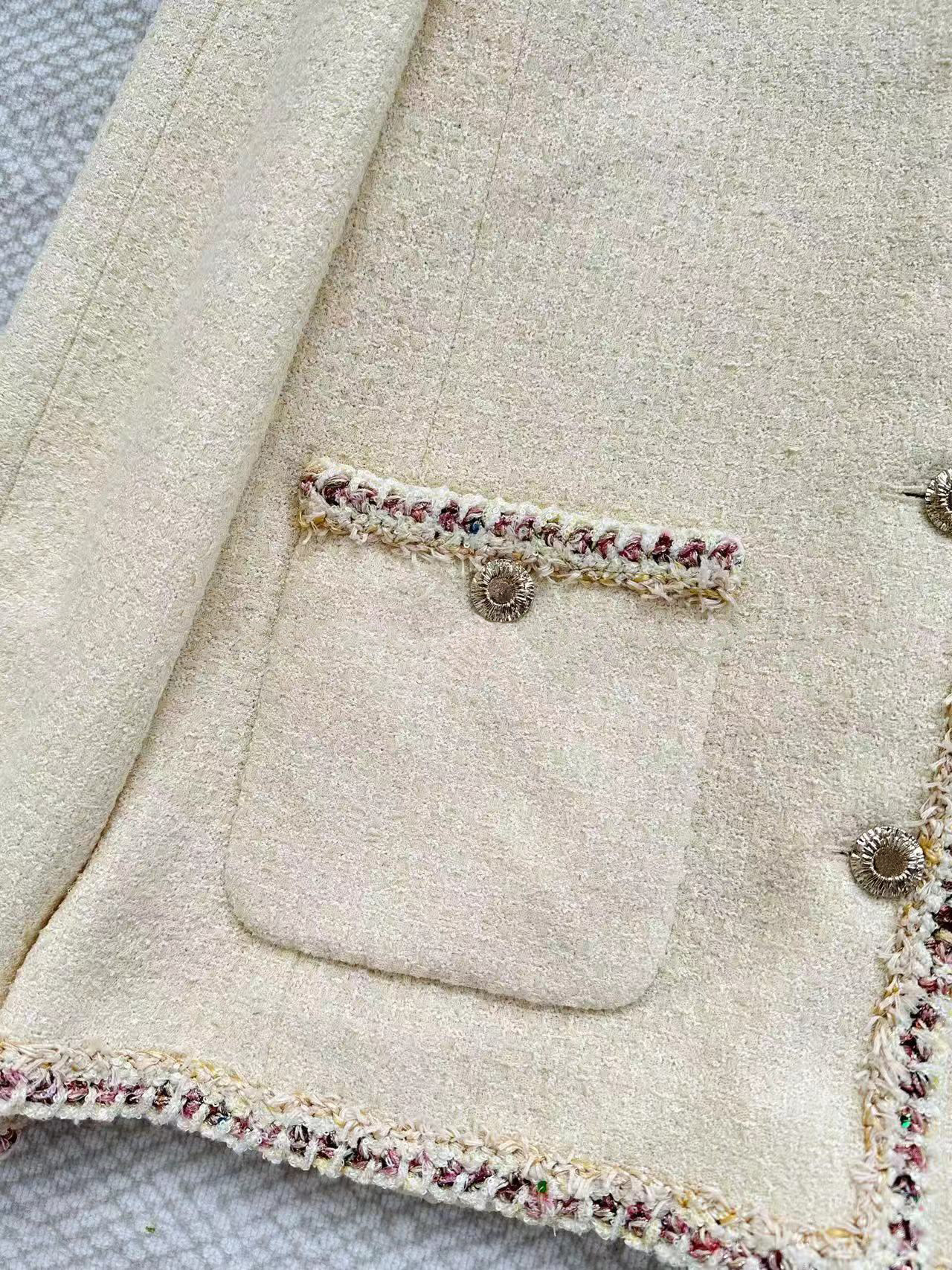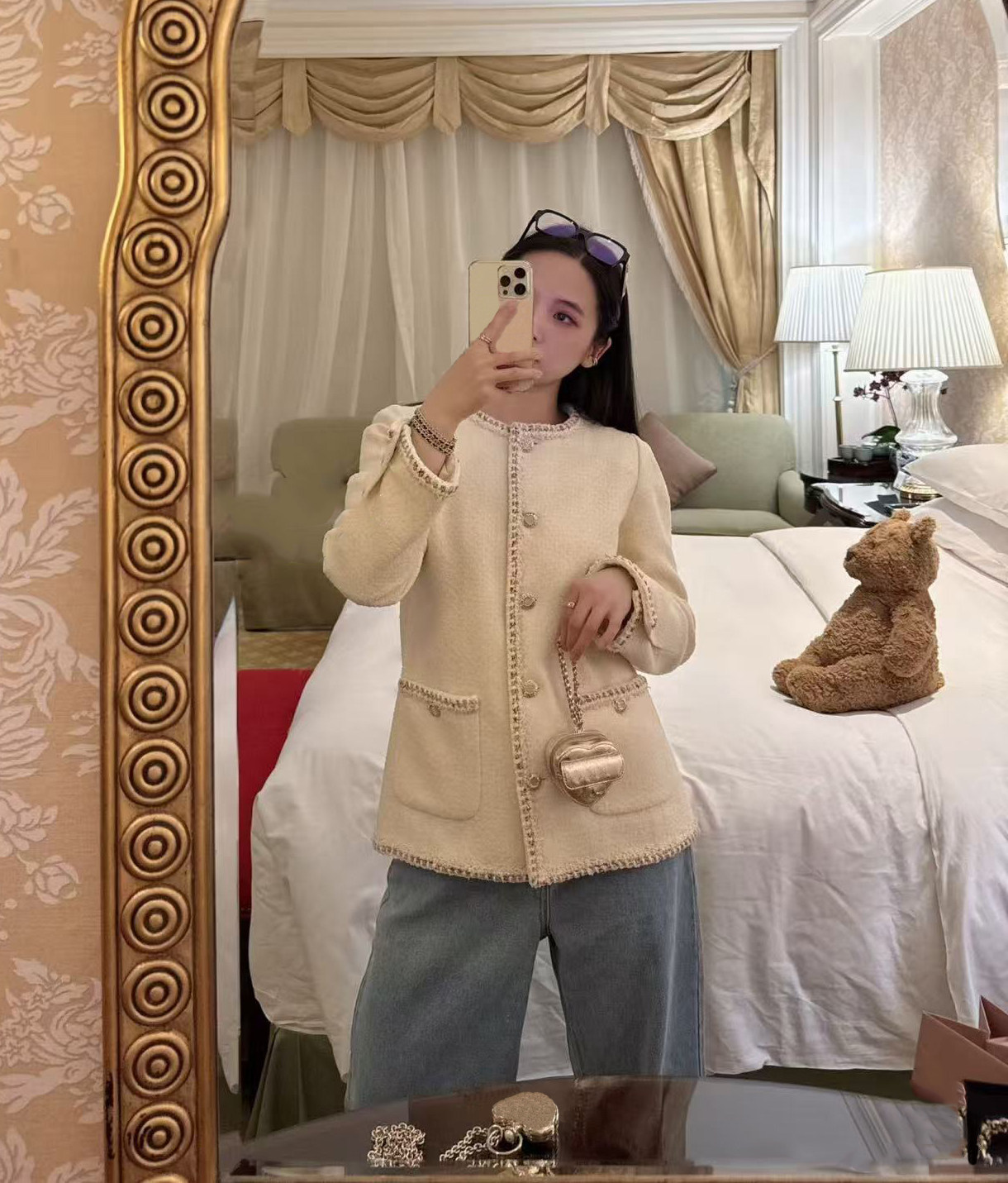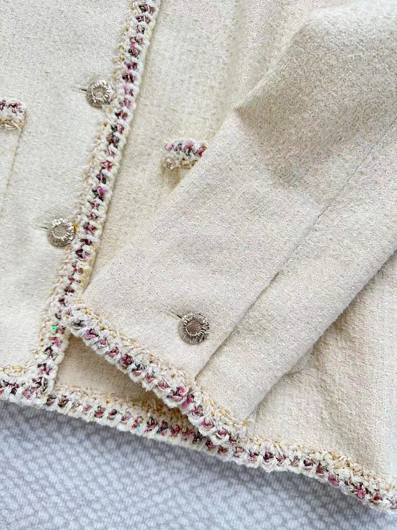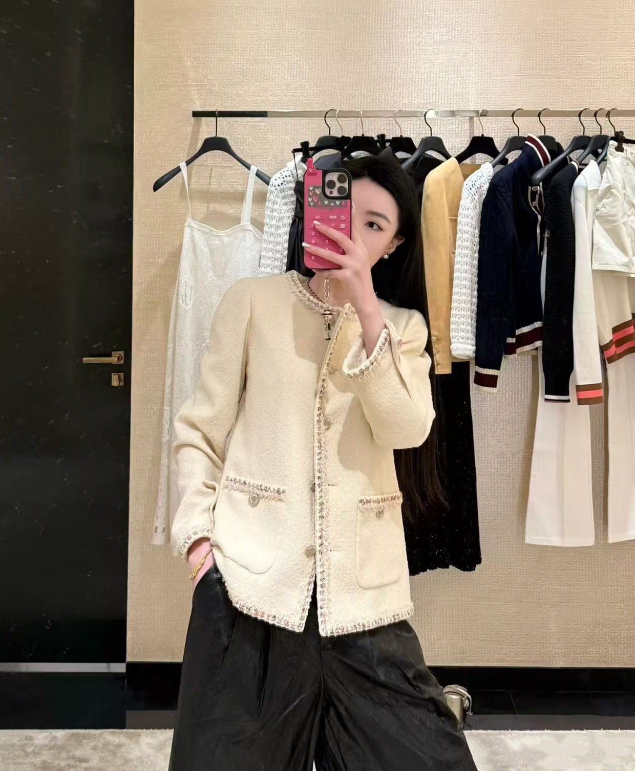 2025 autumn and winter French high-end contrasting tweed heavy industry weaving celebrity temperament round neck single-breasted coat women
