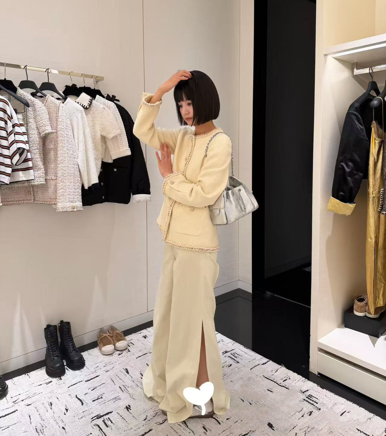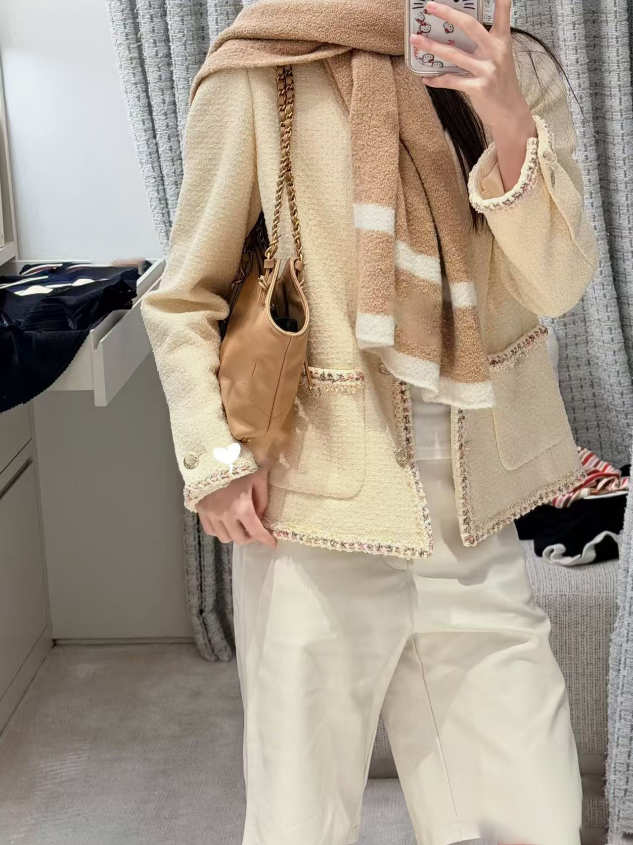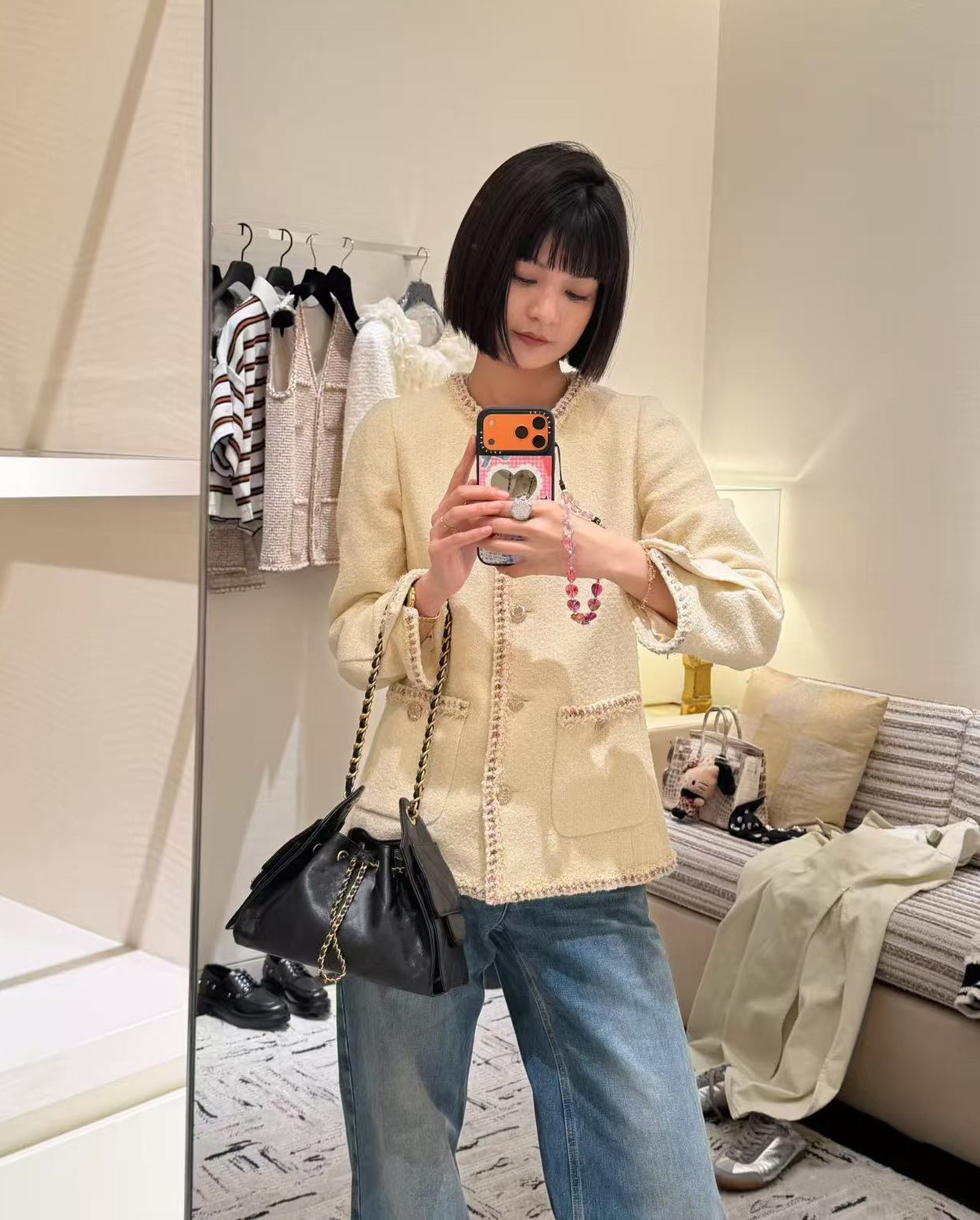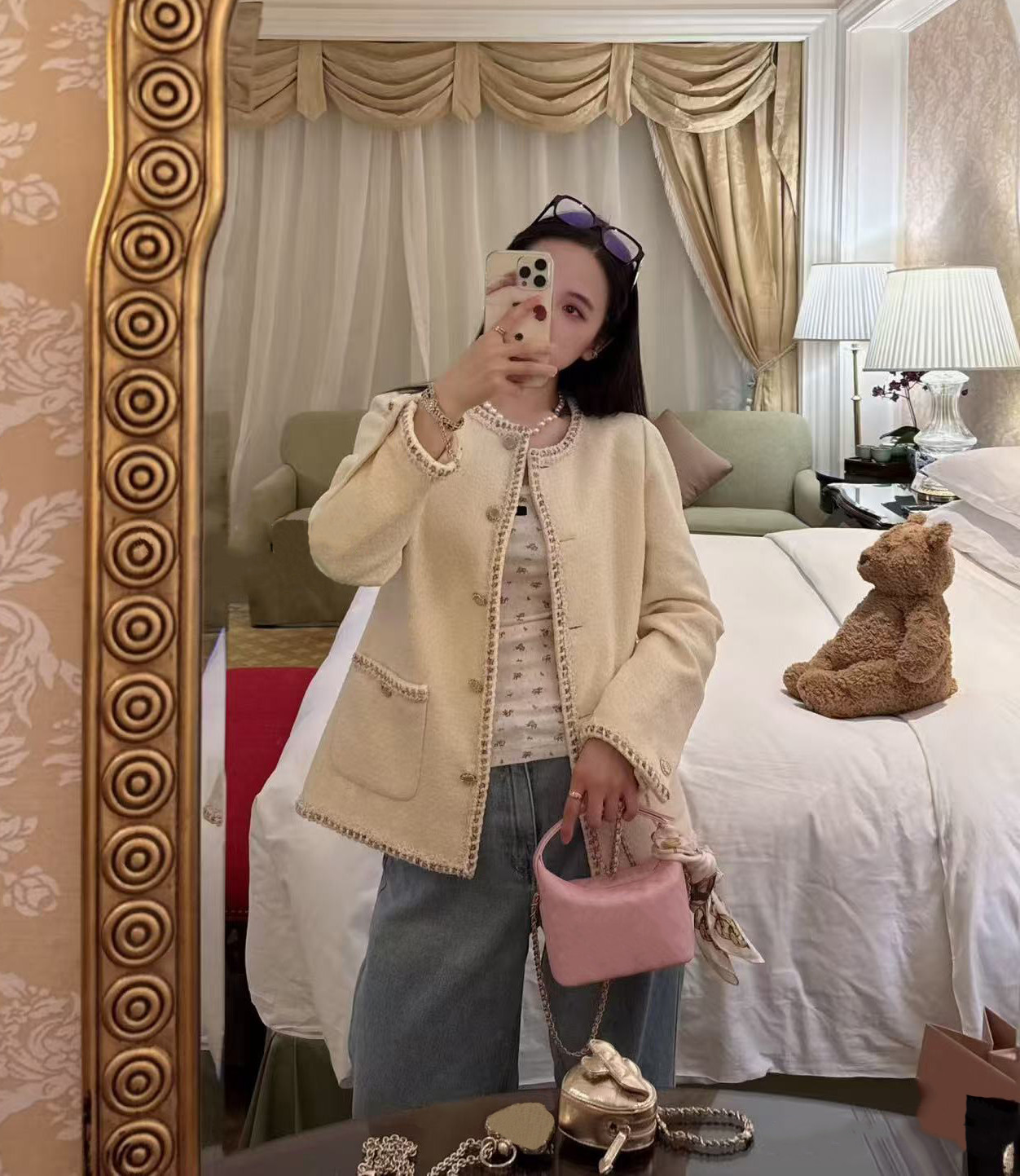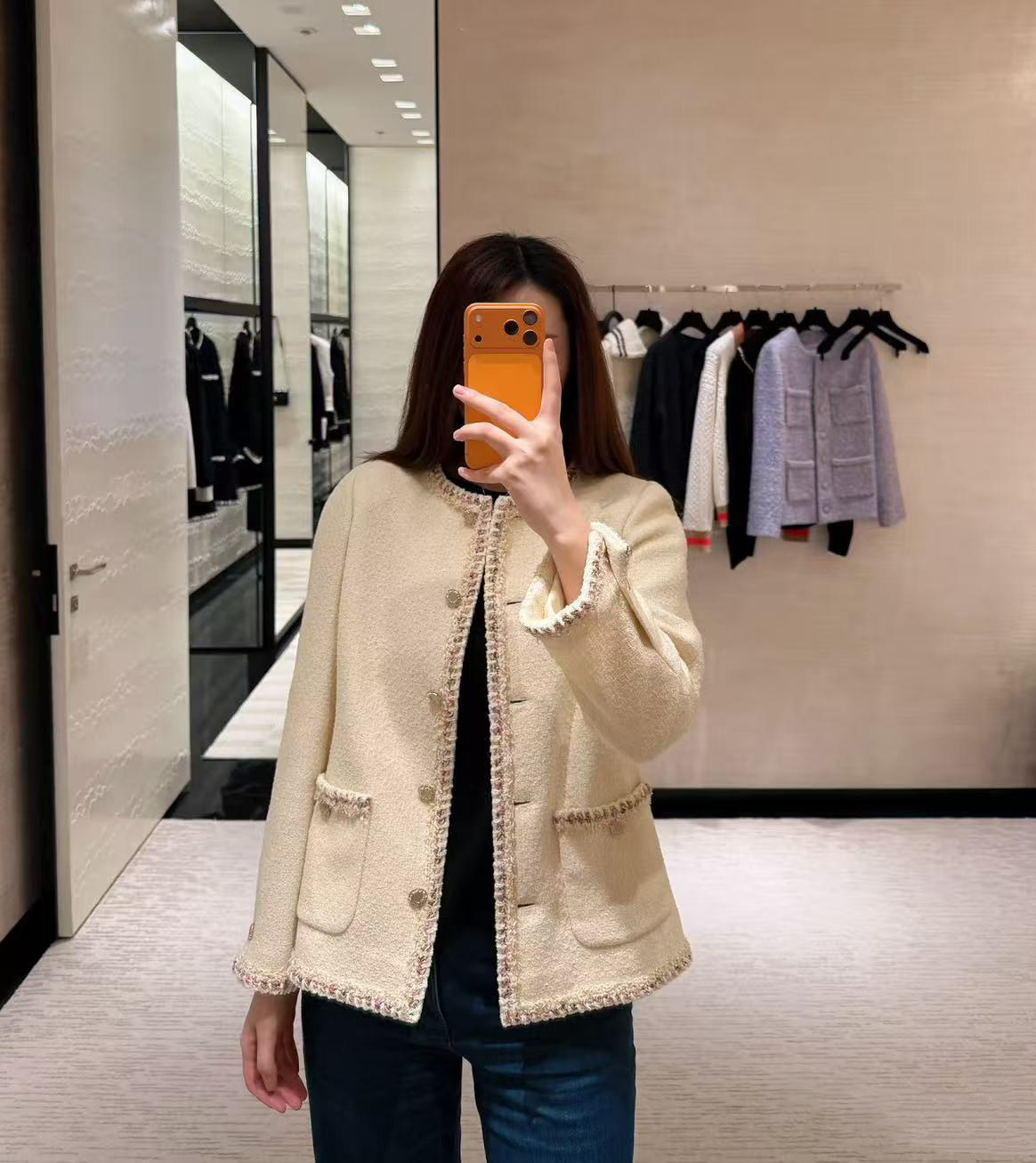 2025 autumn and winter French high-end contrasting tweed heavy industry weaving celebrity temperament round neck single-breasted coat women