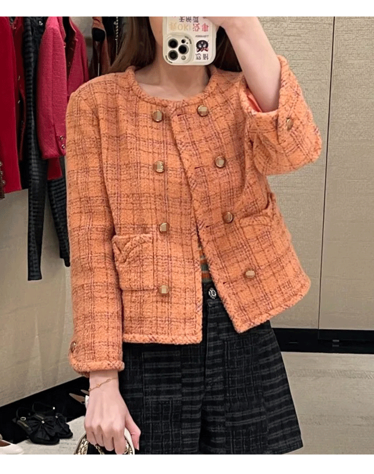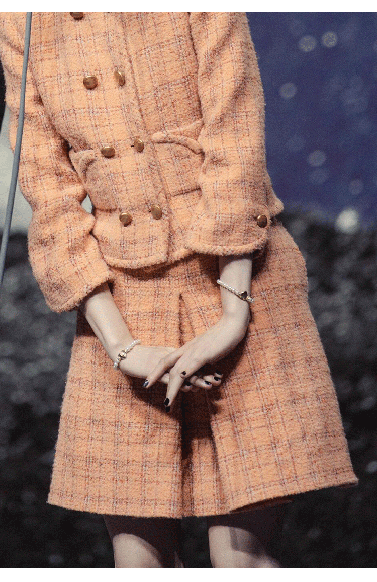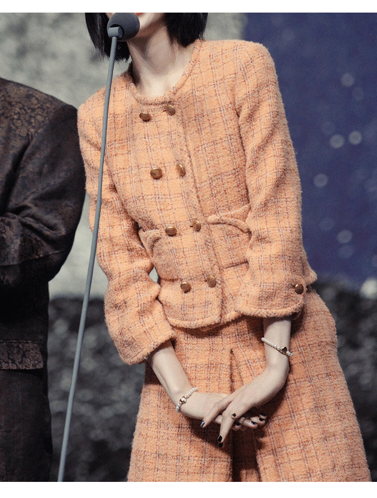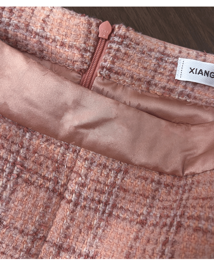 2025 new suit jacket half skirt women's two-piece set looks thin wool tweed celebrity temperament looks thin