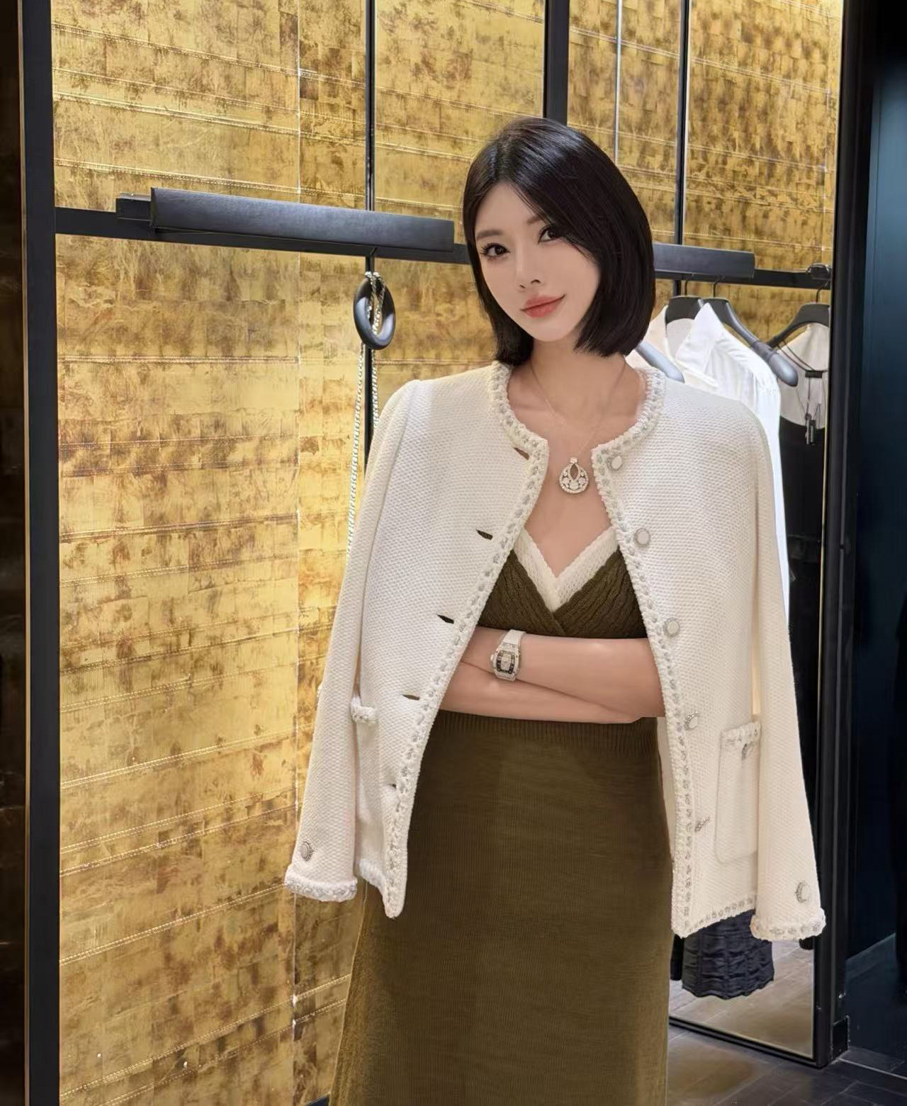 2026 early spring contrasting colors French high-end heavy industry tweed weaving bundled edge celebrity temperament single-breasted jacket jacket