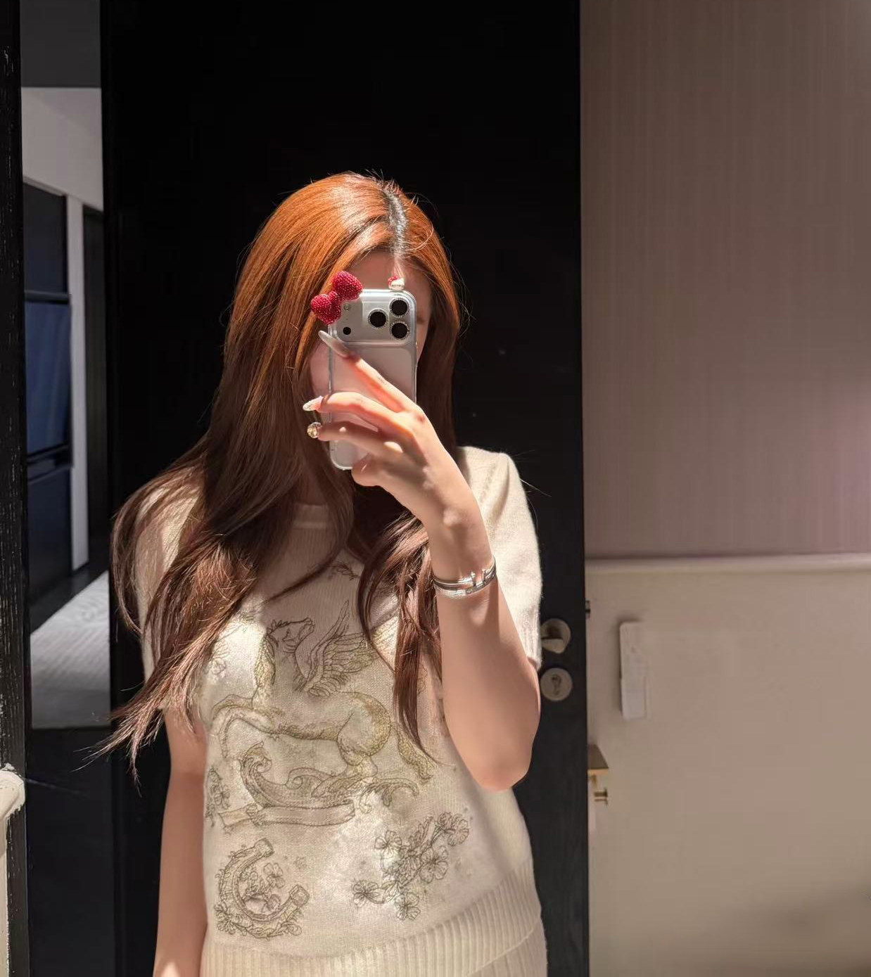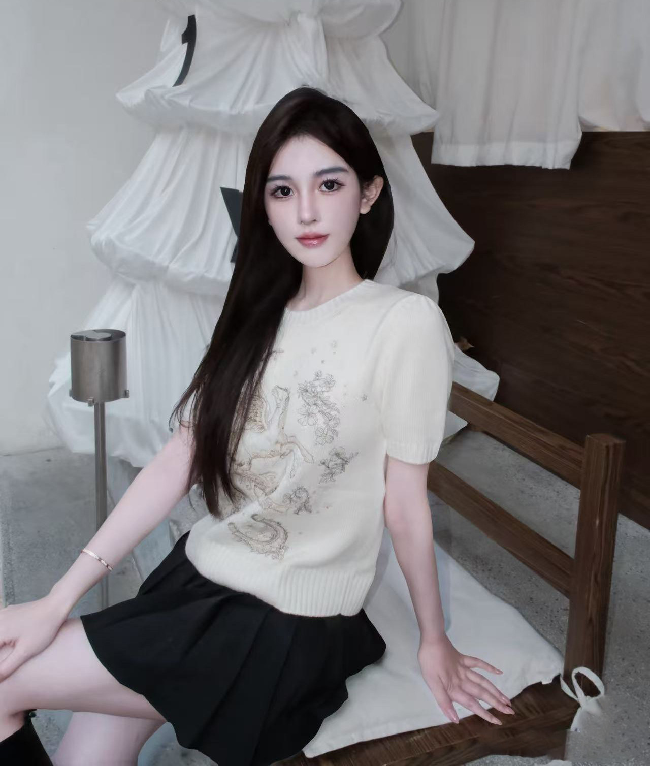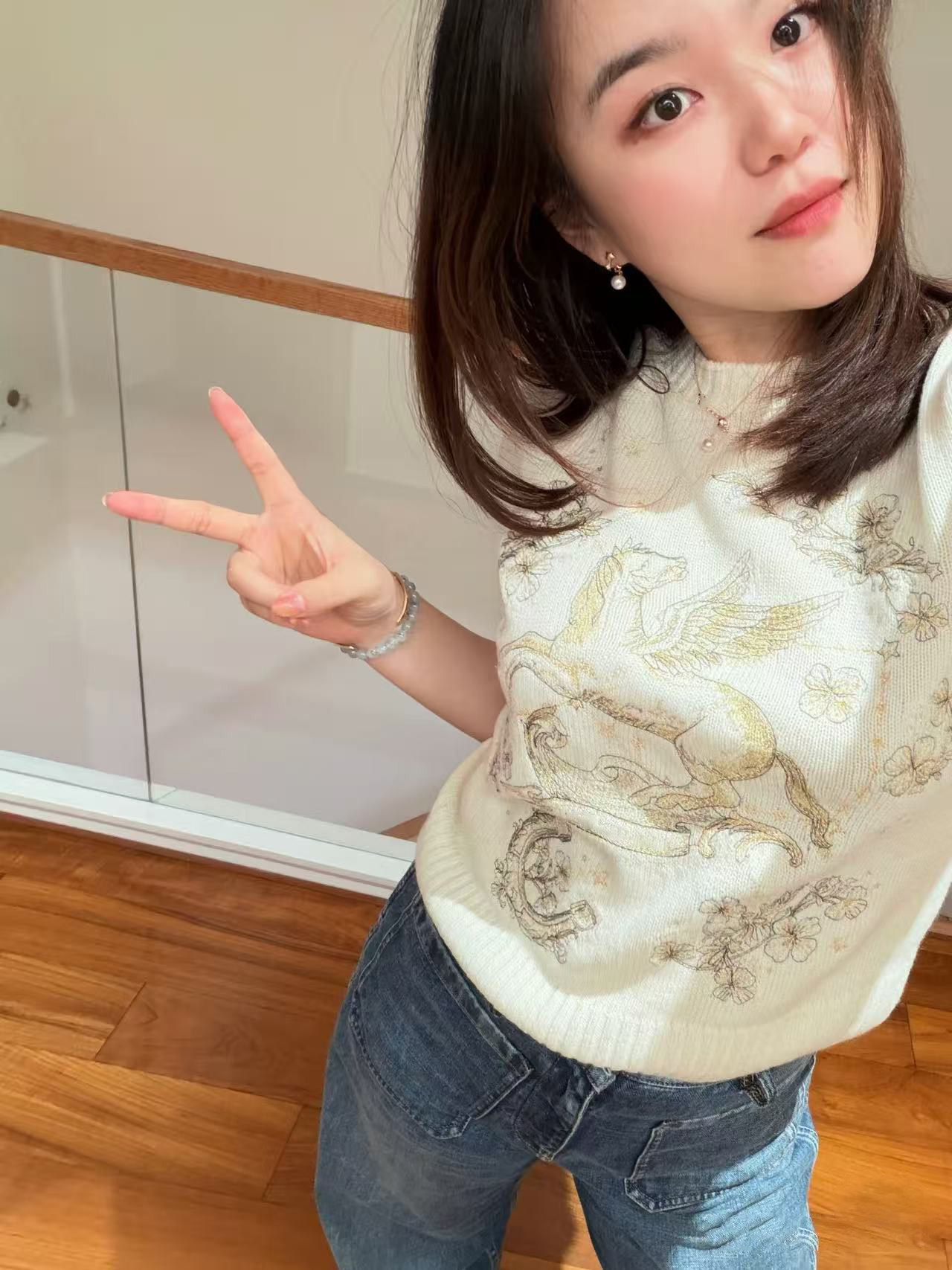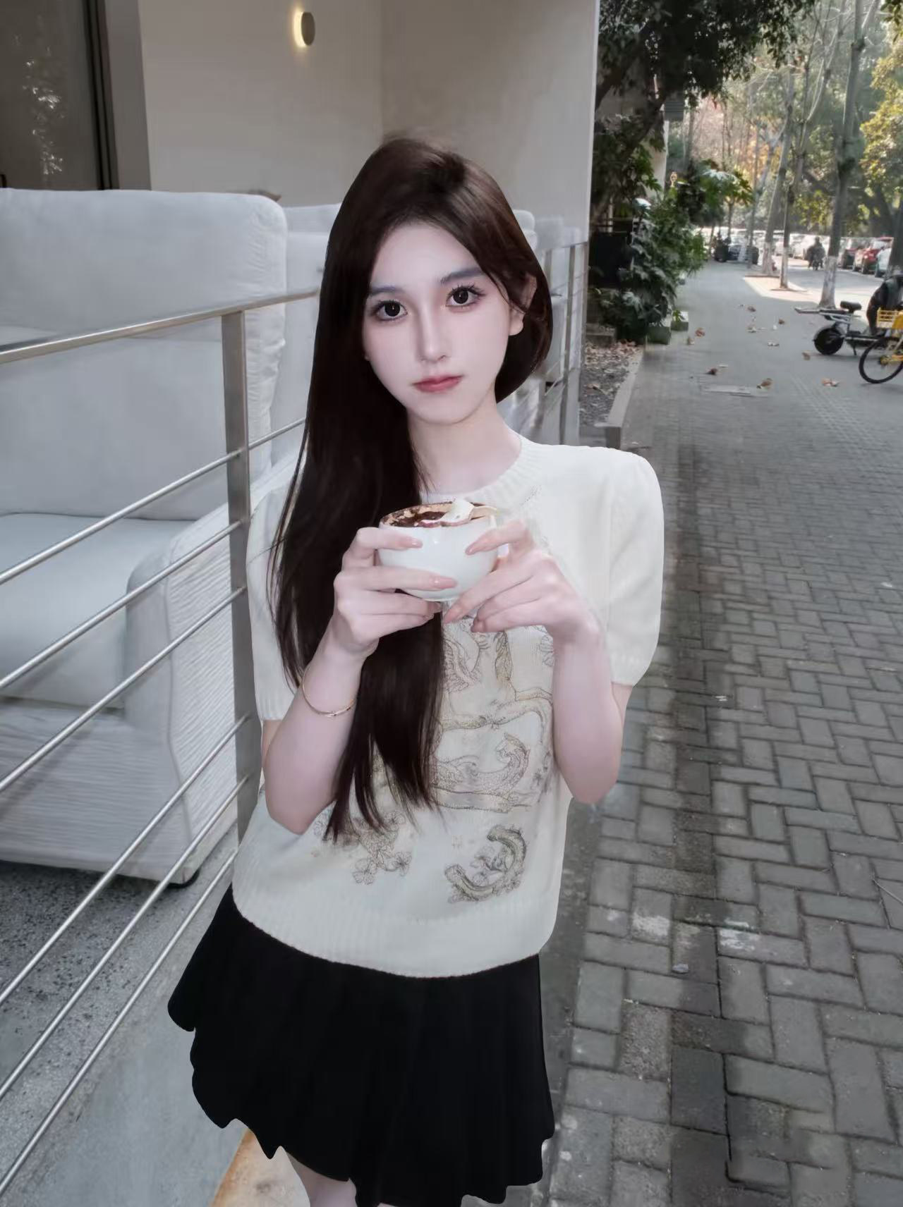 2026 early spring design fashion sense foreign style animal letter embroidery round neck short sleeve cashmere soft knitted top women