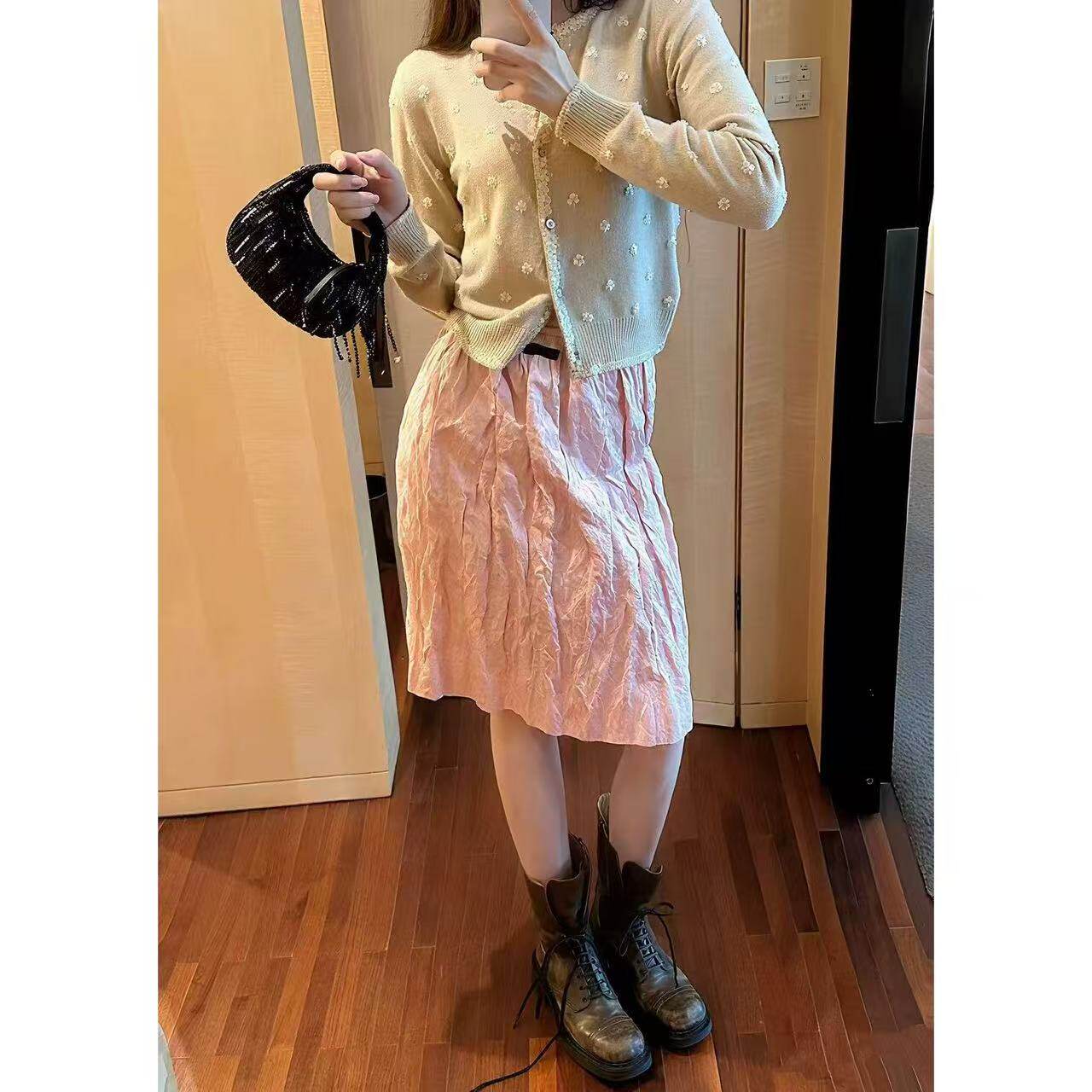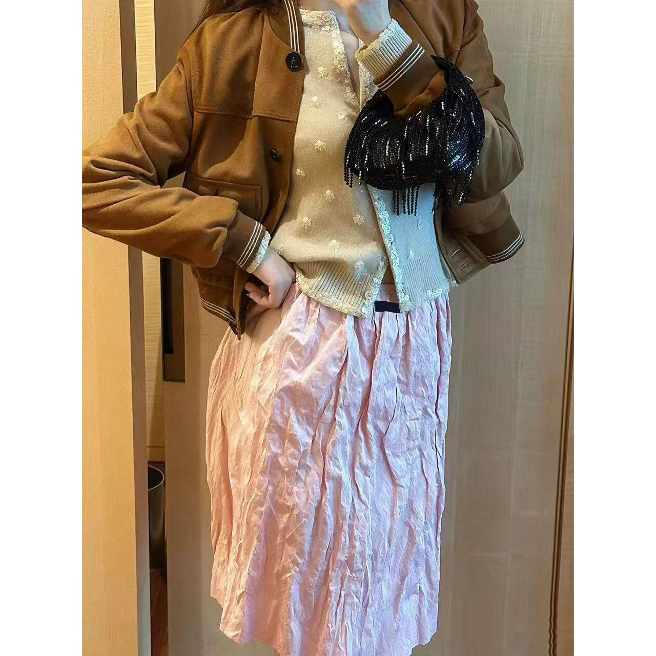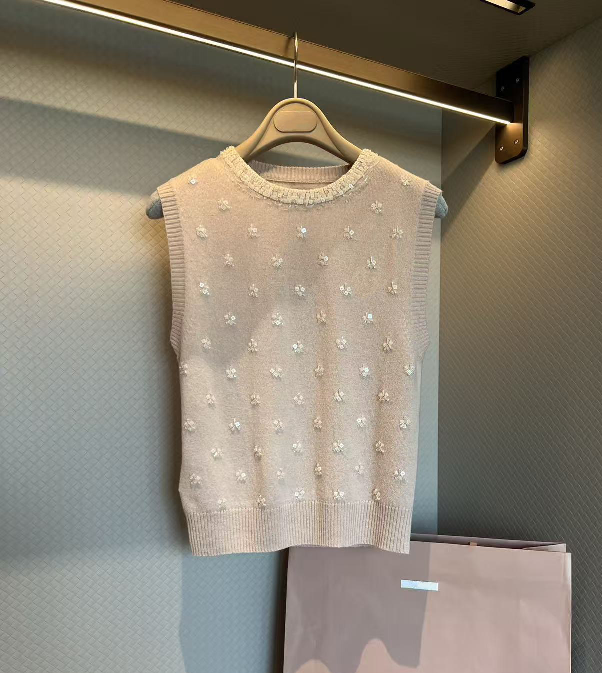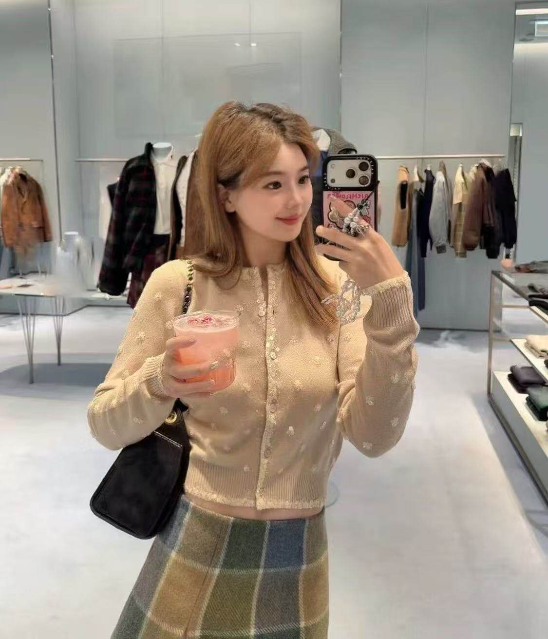 2026 early spring design French high-end heavy industry three-dimensional bead thousand gold round neck cashmere knitted cardigan women