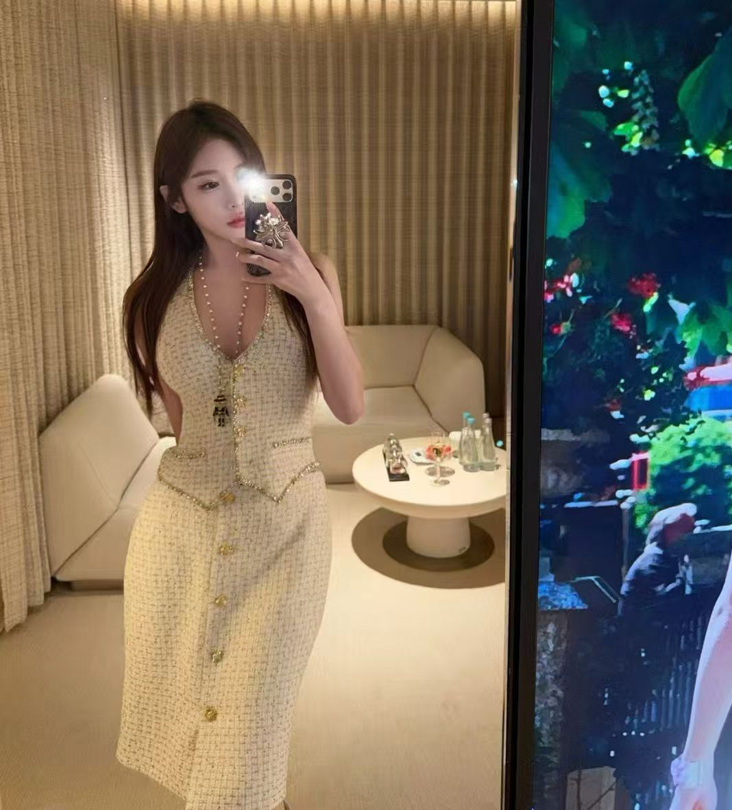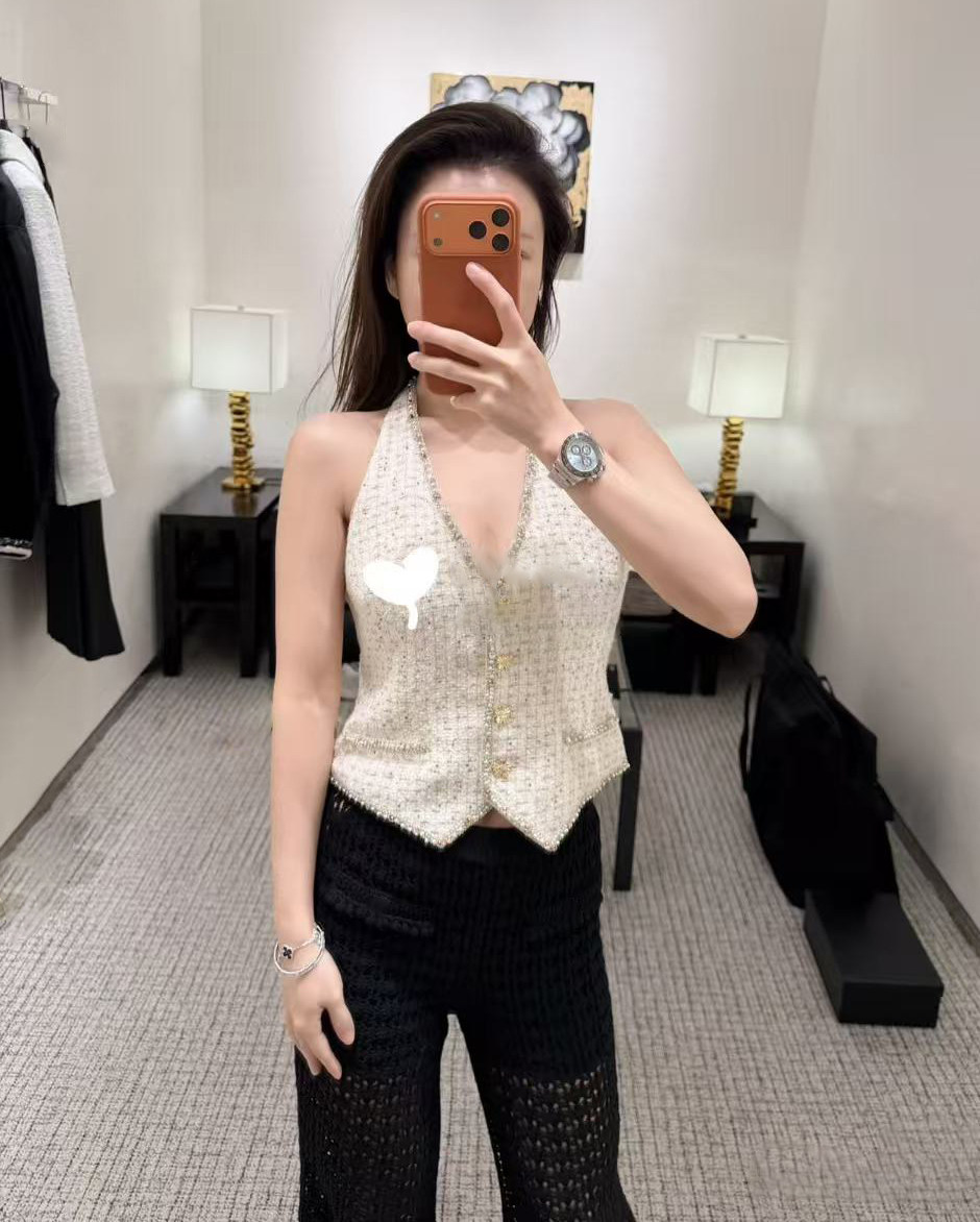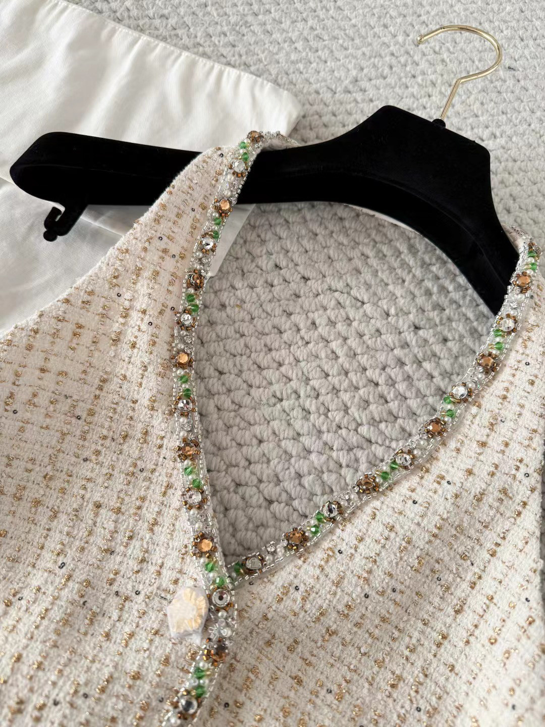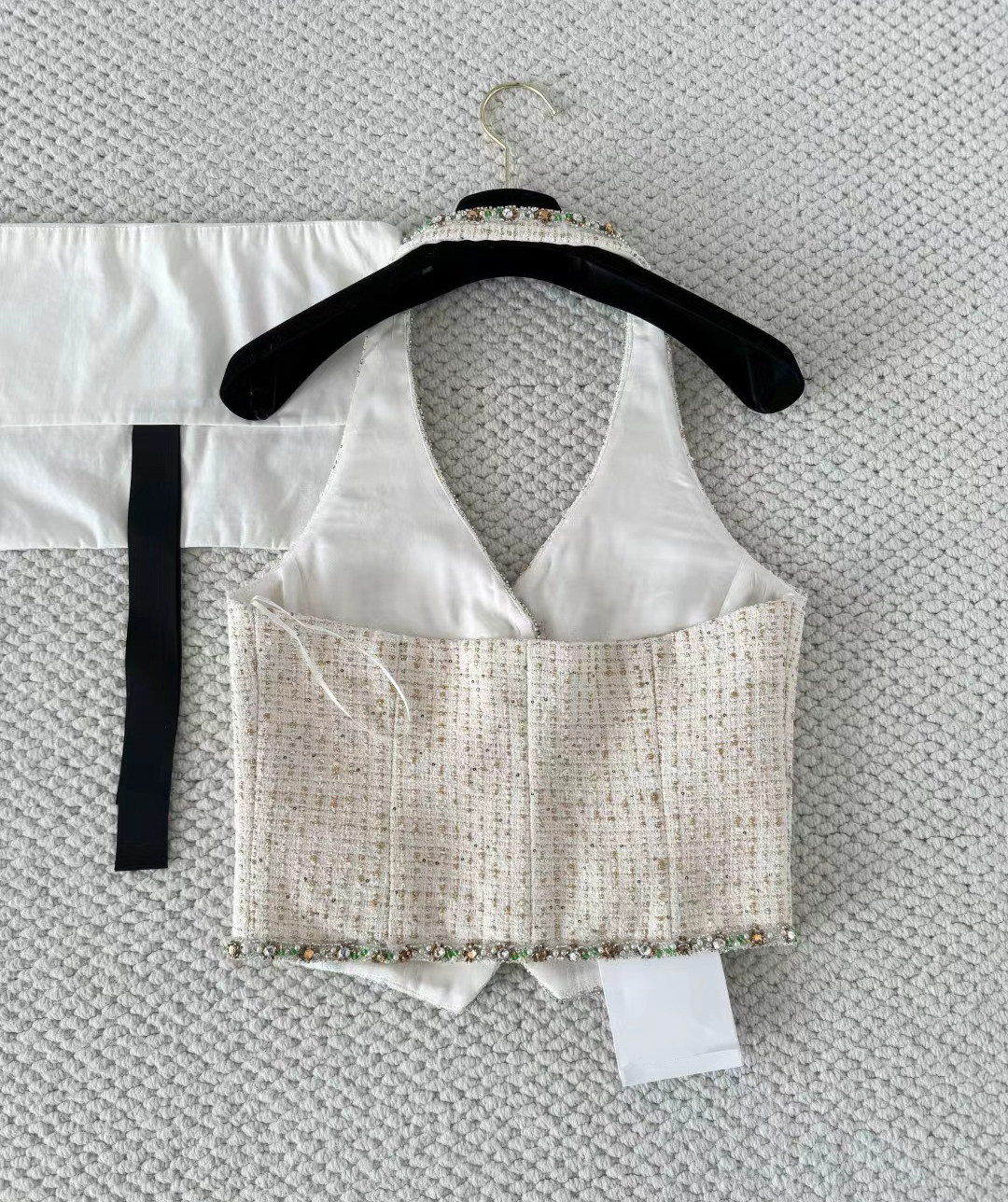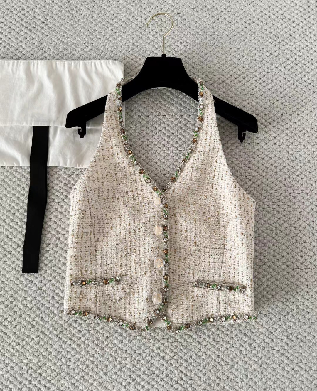 2026 early spring French high-end heavy industry beads pure desire wind neck slim and thin sleeveless vest suspender top
