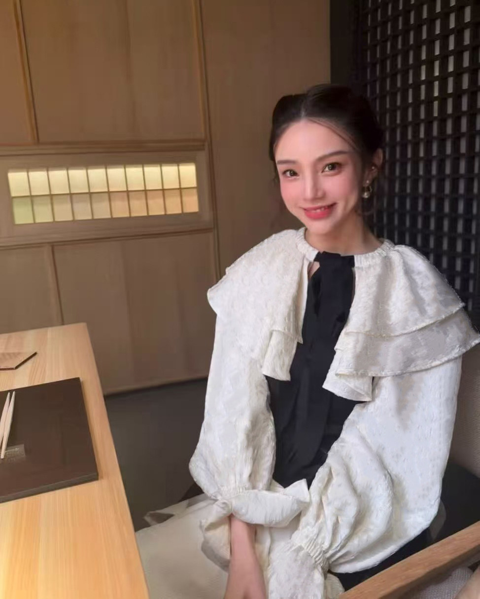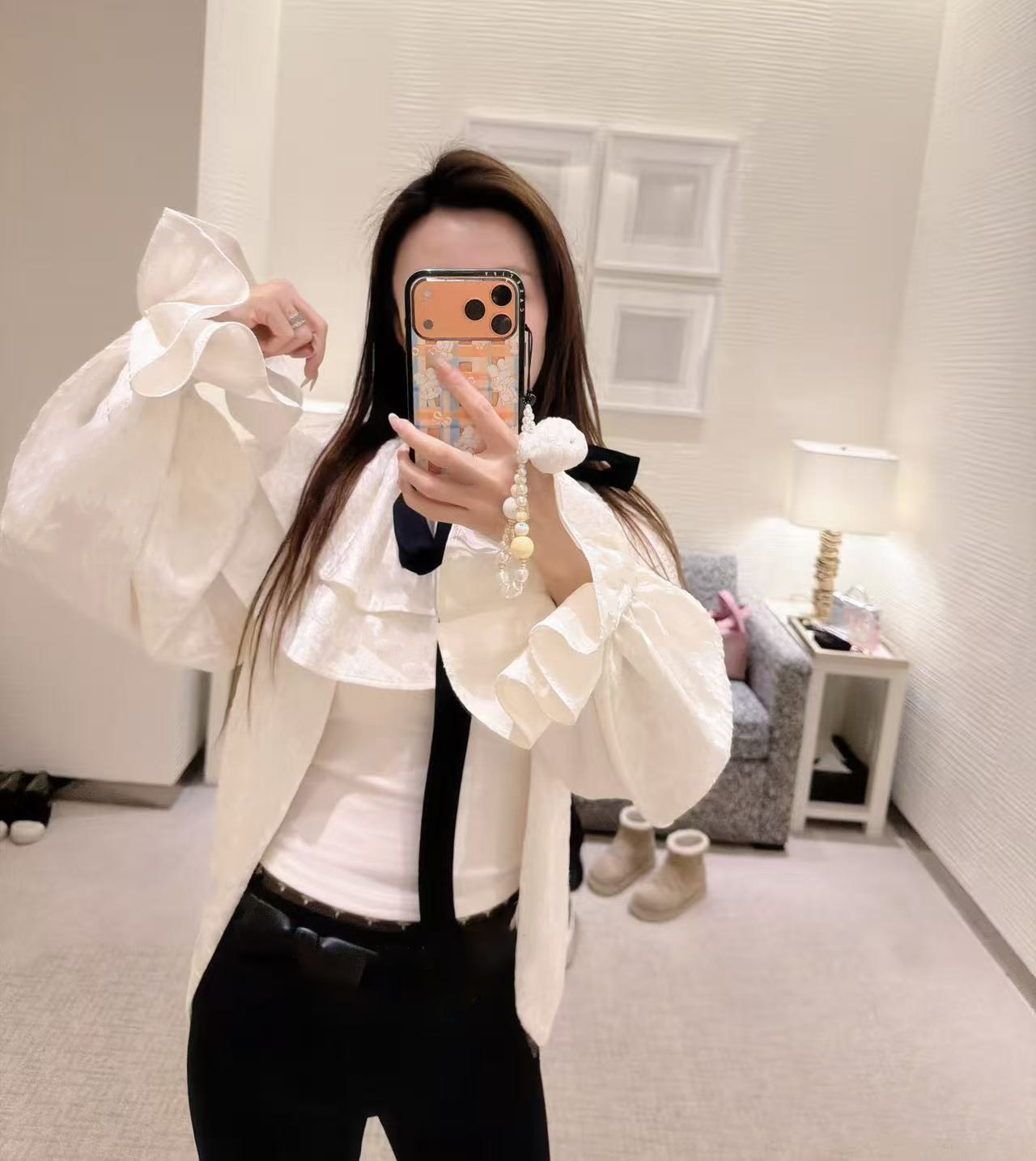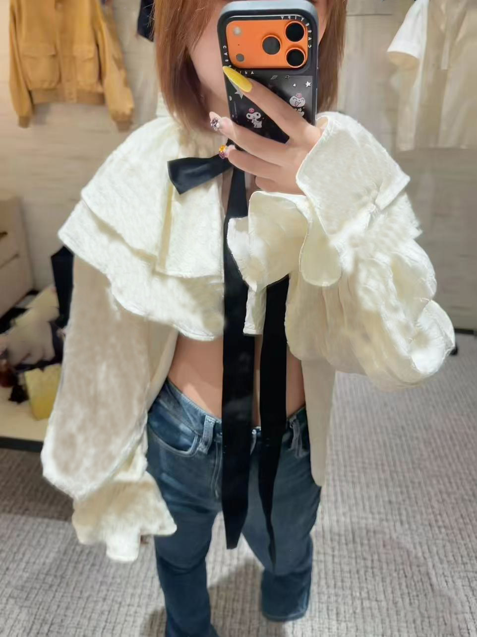 2026 early spring high-end heavy industry lotus leaf edge lace-up mulberry silk shawl cape fashion foreign style long-sleeved top women