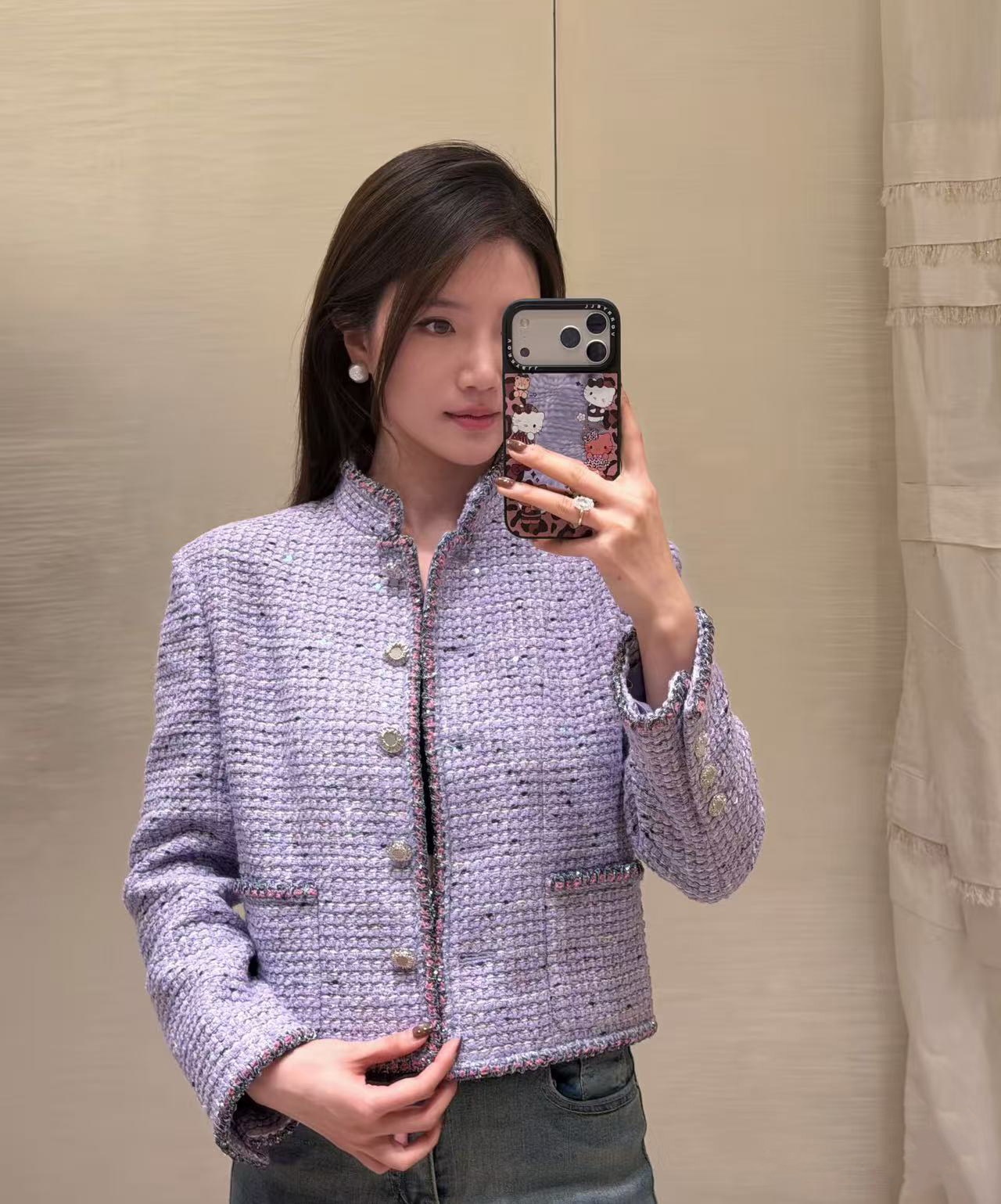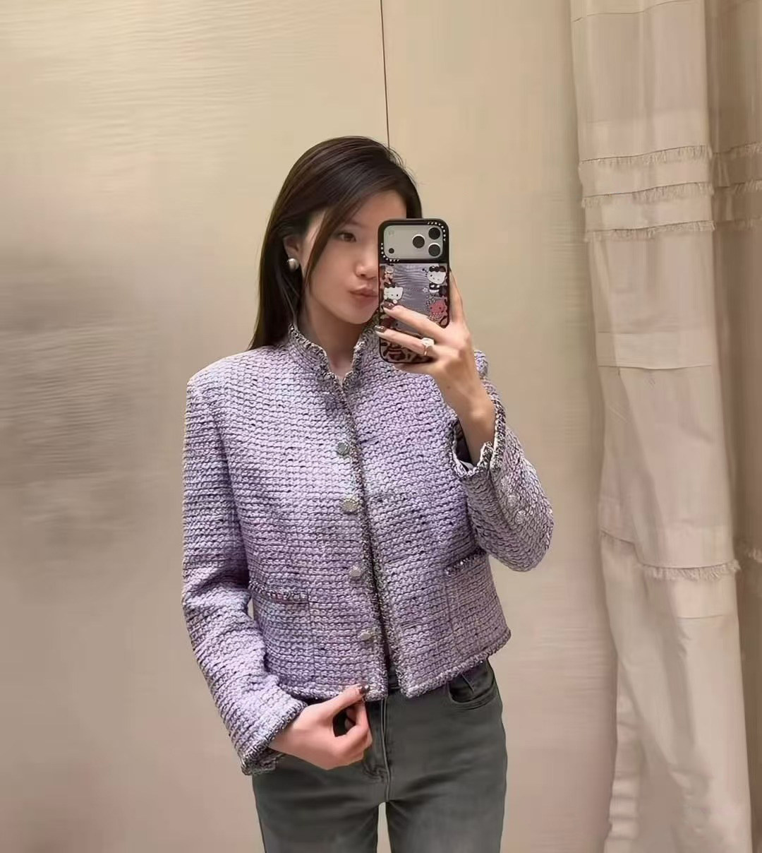 2026 early spring law high sense heavy industry weaving embroidery celebrity temperament thousand gold wind purple fine flash short coat women