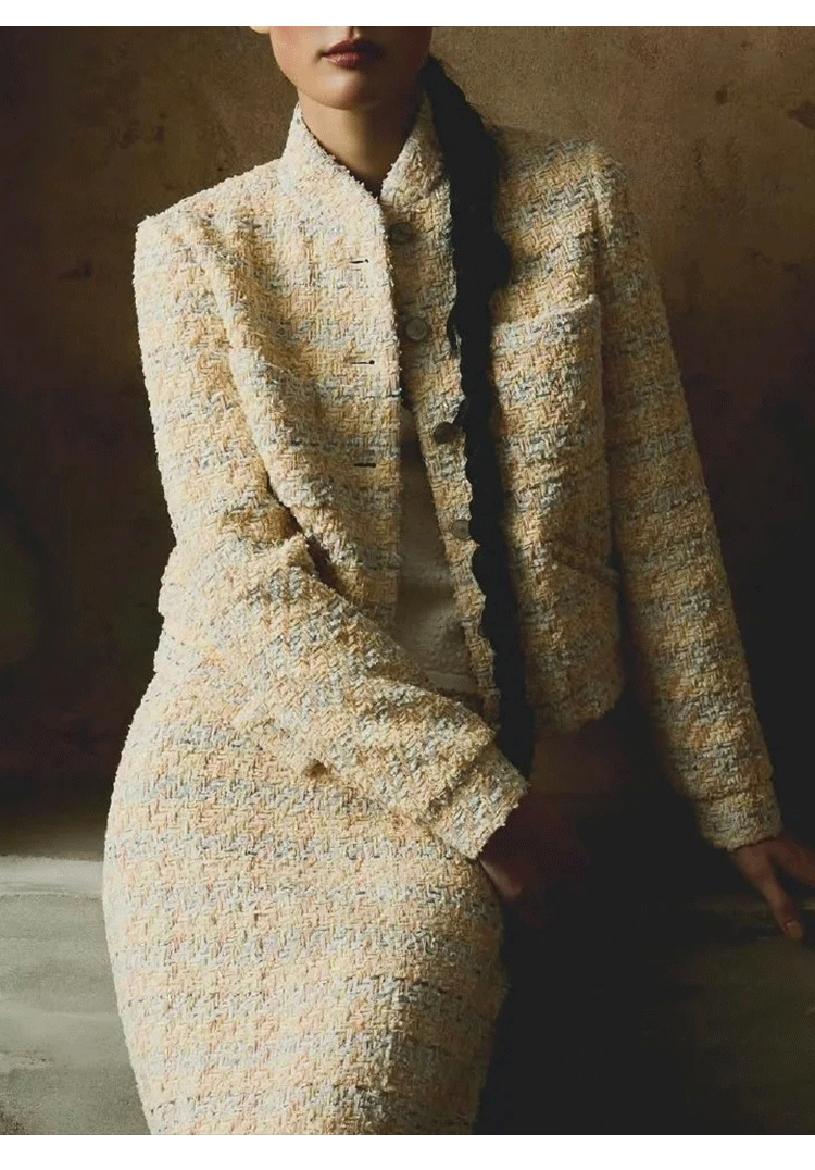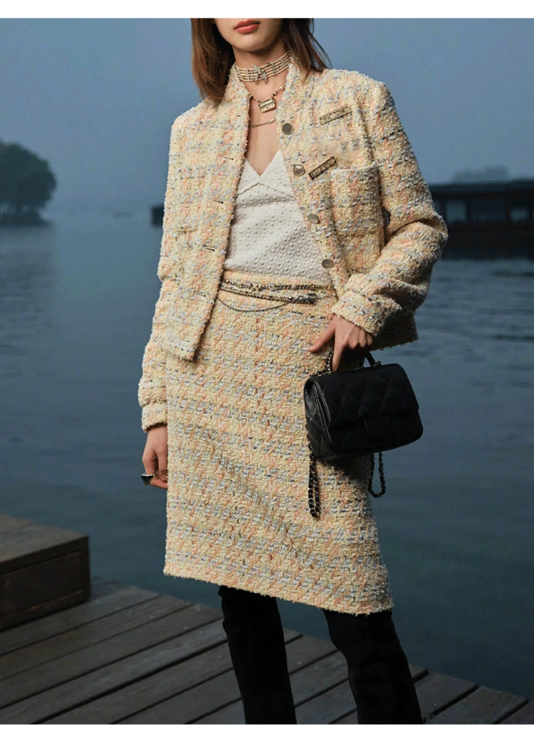 25 Early Spring Wool Tweed Set Jacket Jacket Skirt Celebrity Temperament Two-piece Set Premium Sense