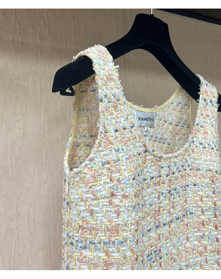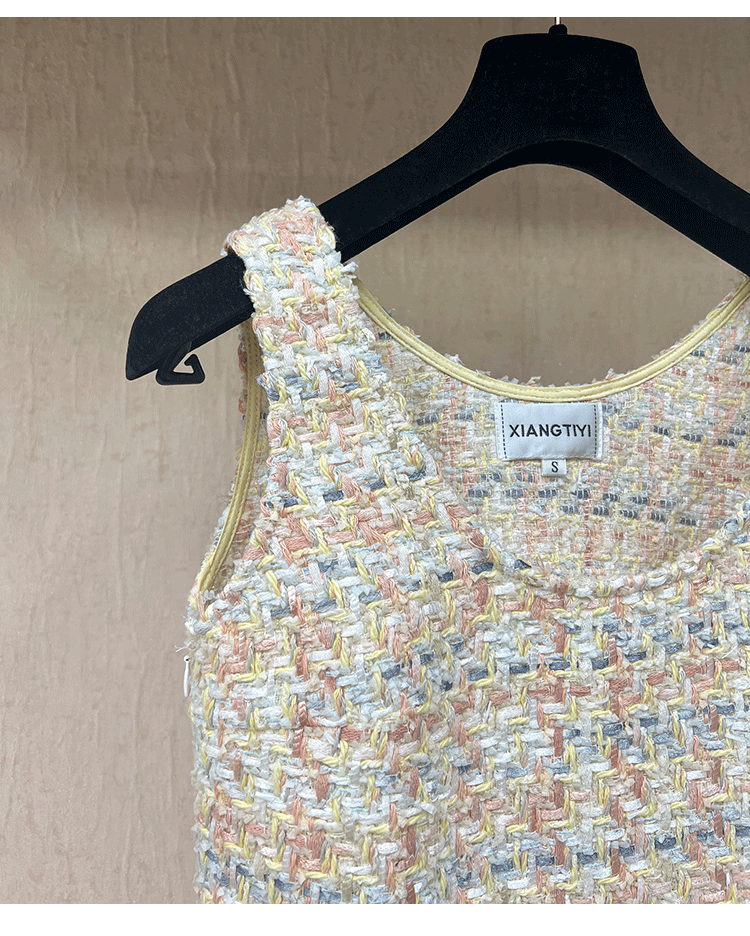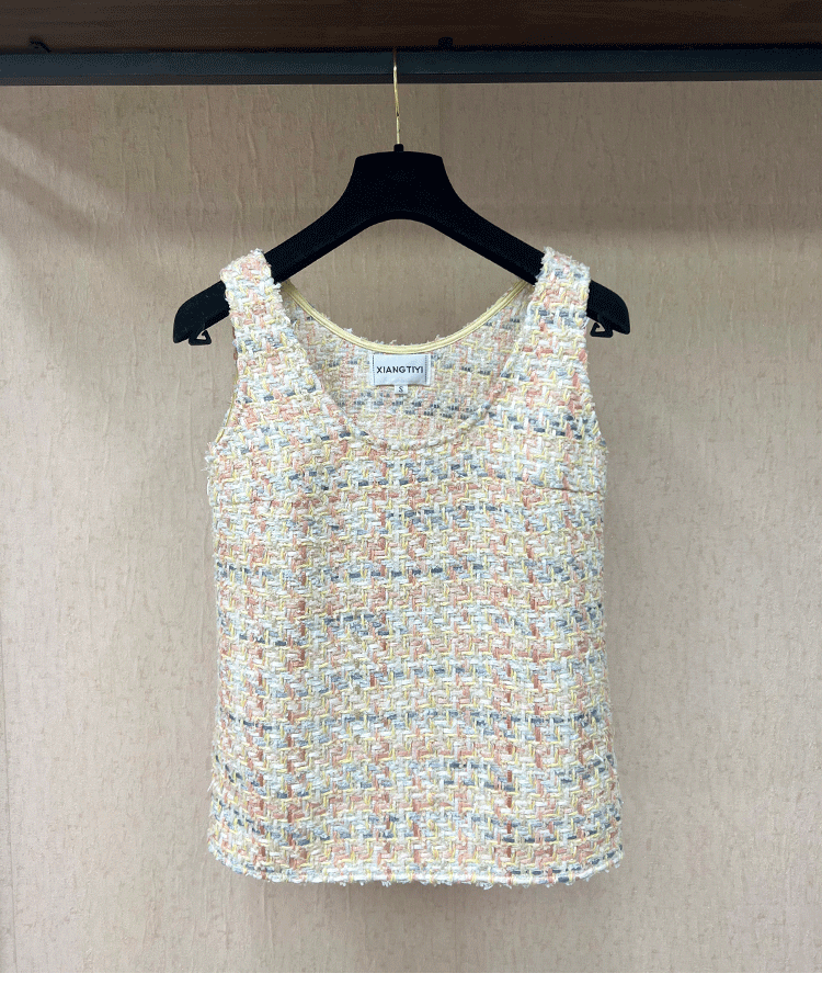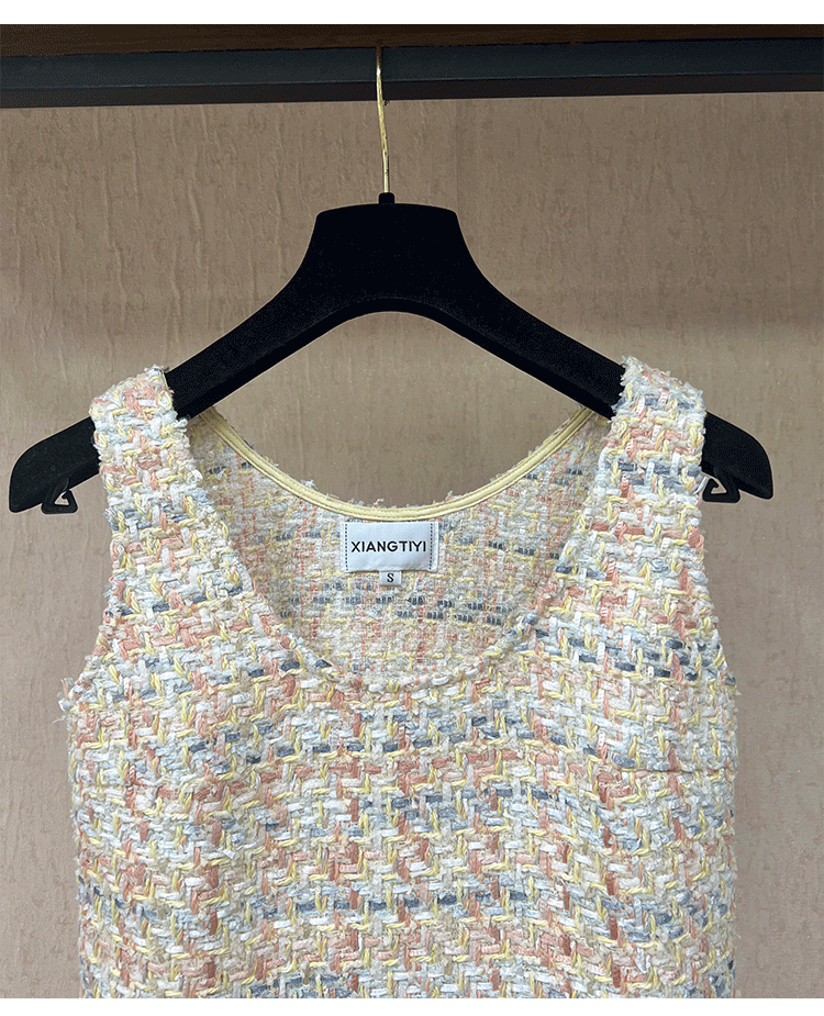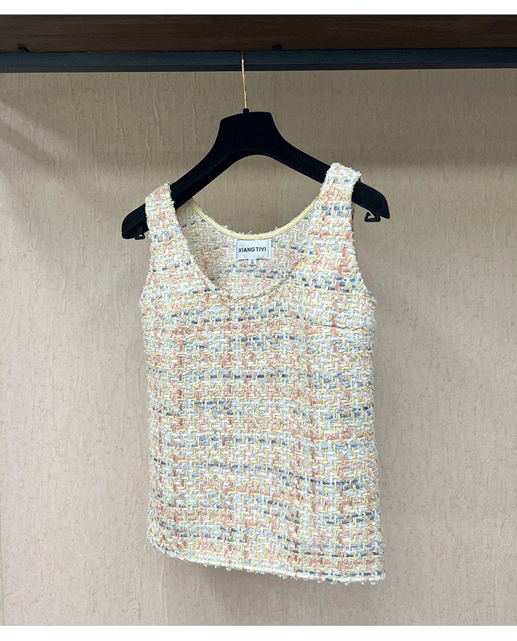 25 Spring and Summer New Vest Women's Sleeveless Suspender Inner Wool Tweed Thin Top Celebrity Women's Clothing