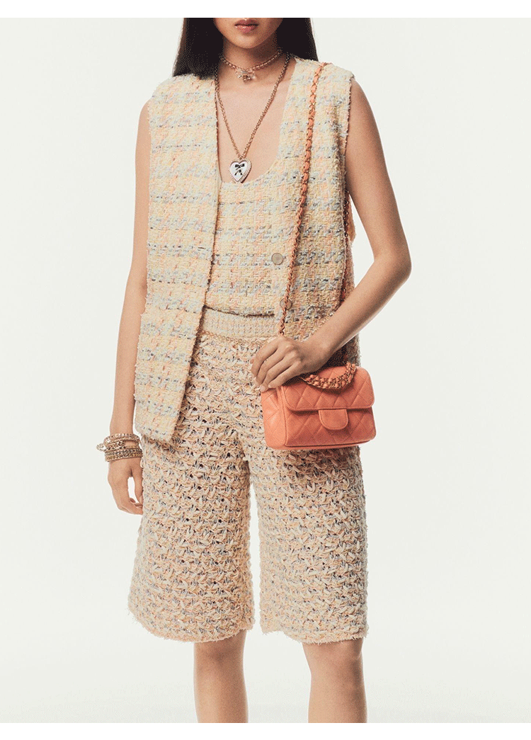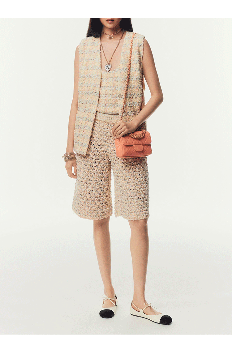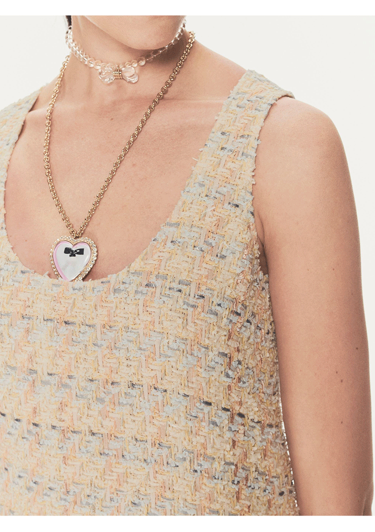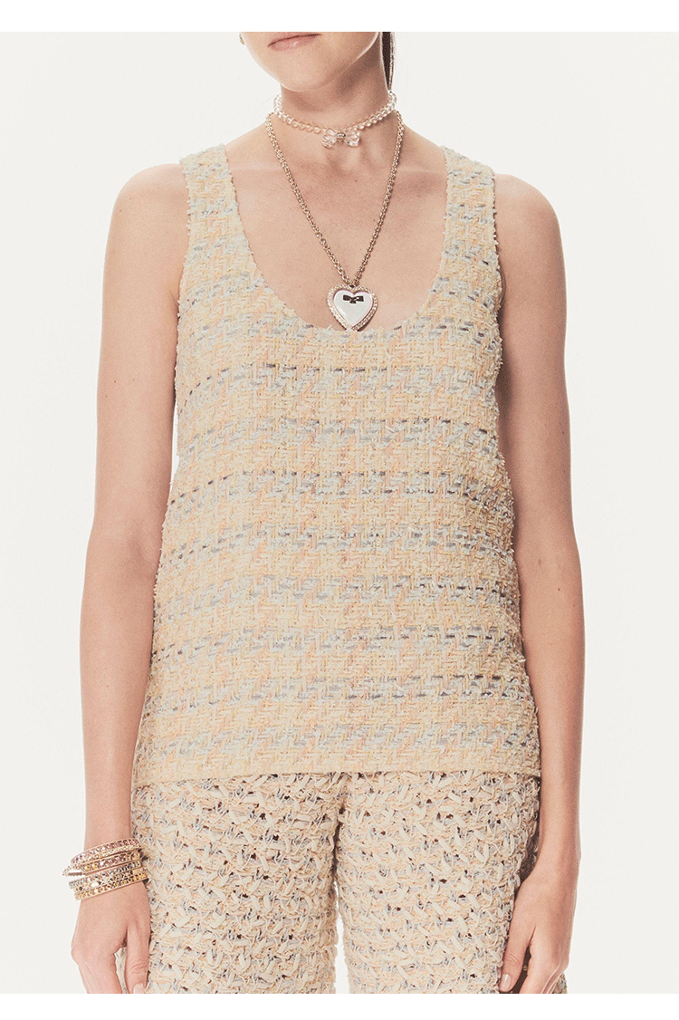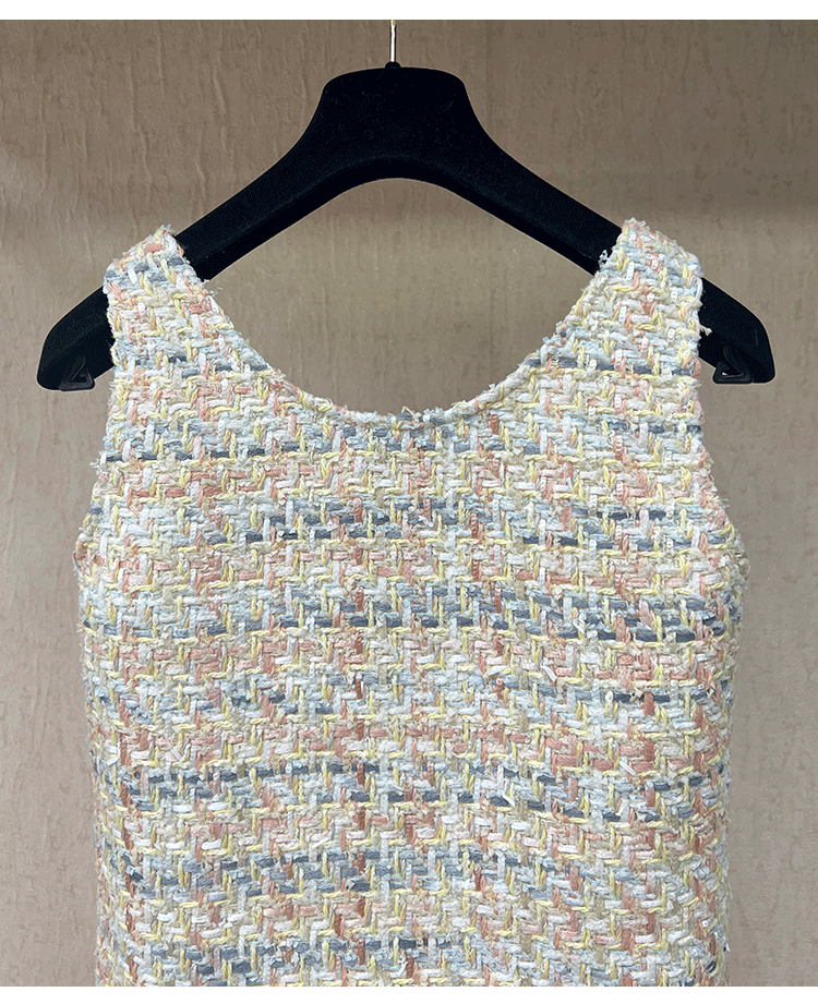 25 Spring and Summer New Vest Women's Sleeveless Suspender Inner Wool Tweed Thin Top Celebrity Women's Clothing