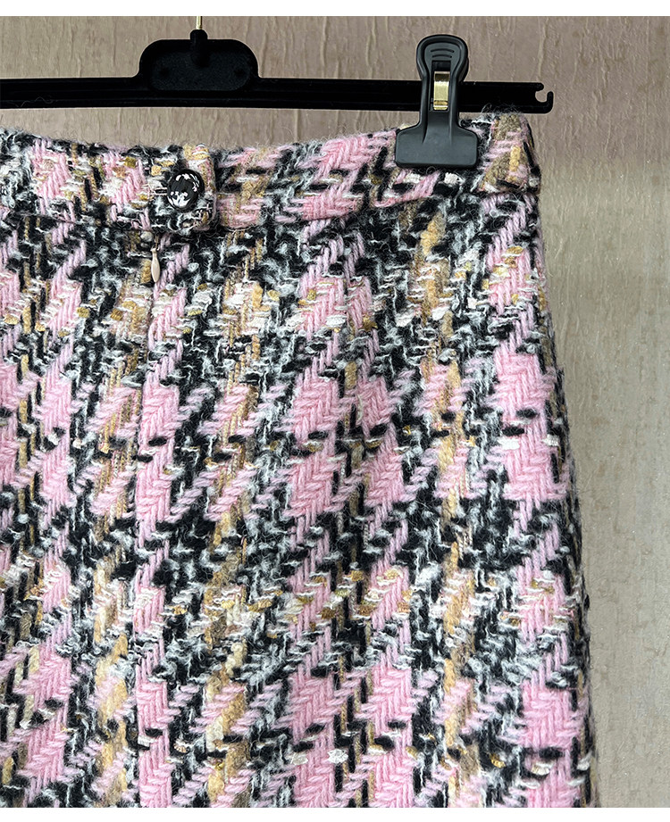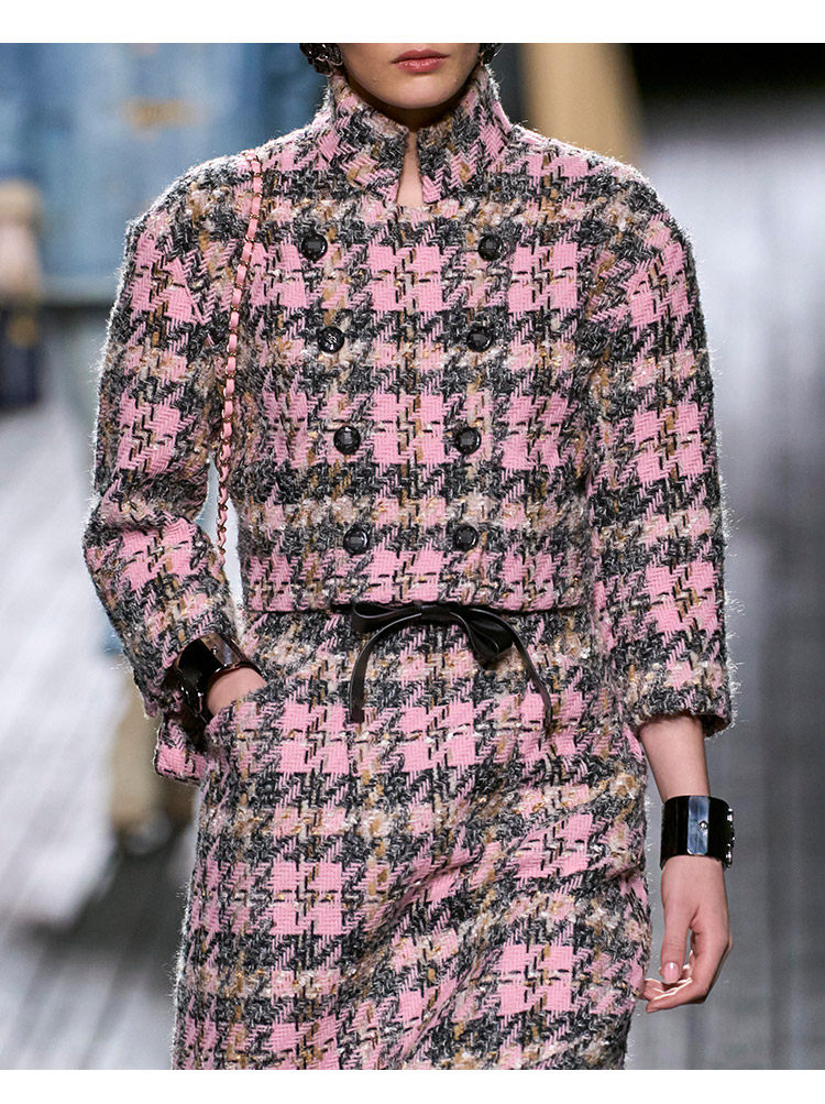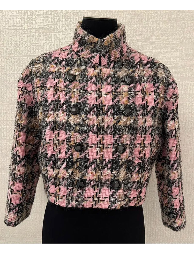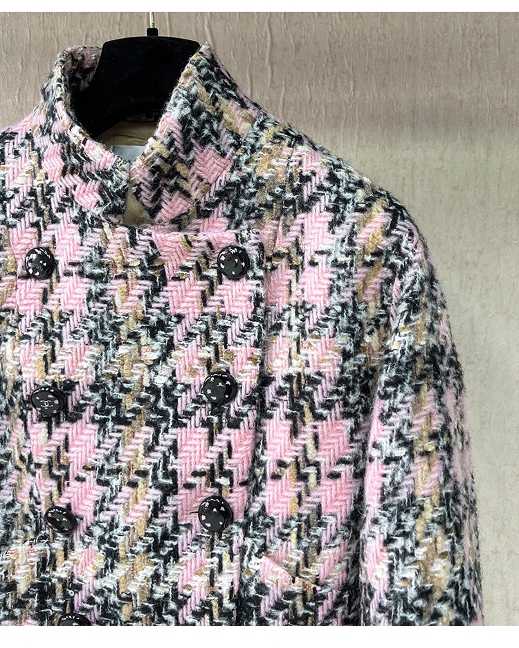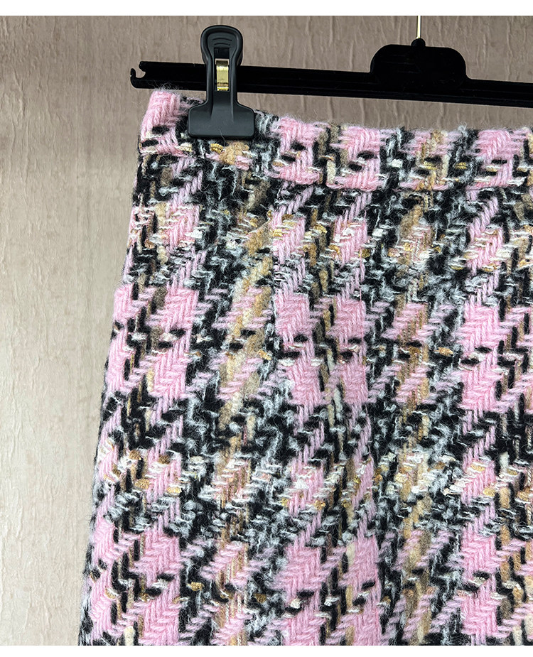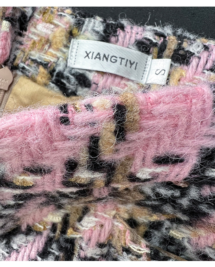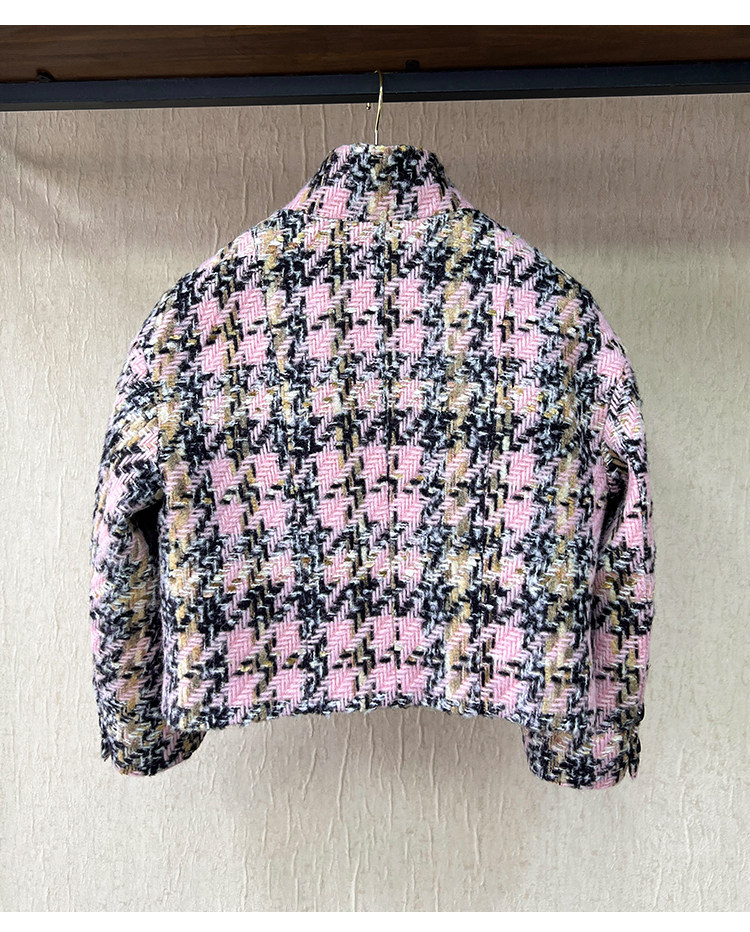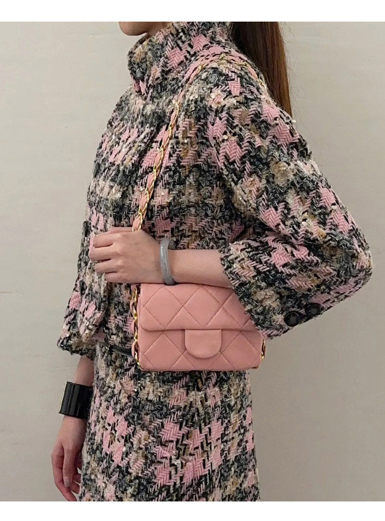 Autumn and winter new jackets, women's stand-up collar skirts, wool knitted tweed pink plaid suits, celebrity women's clothing