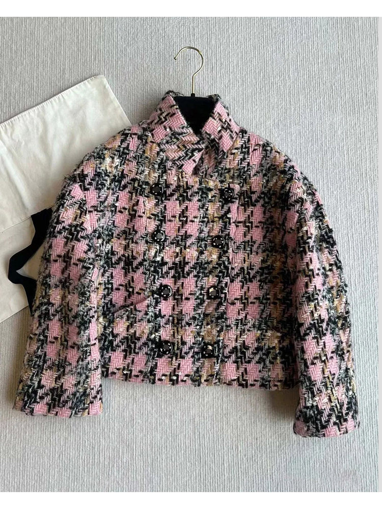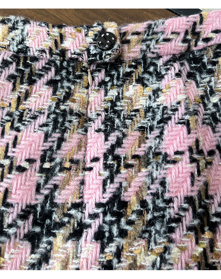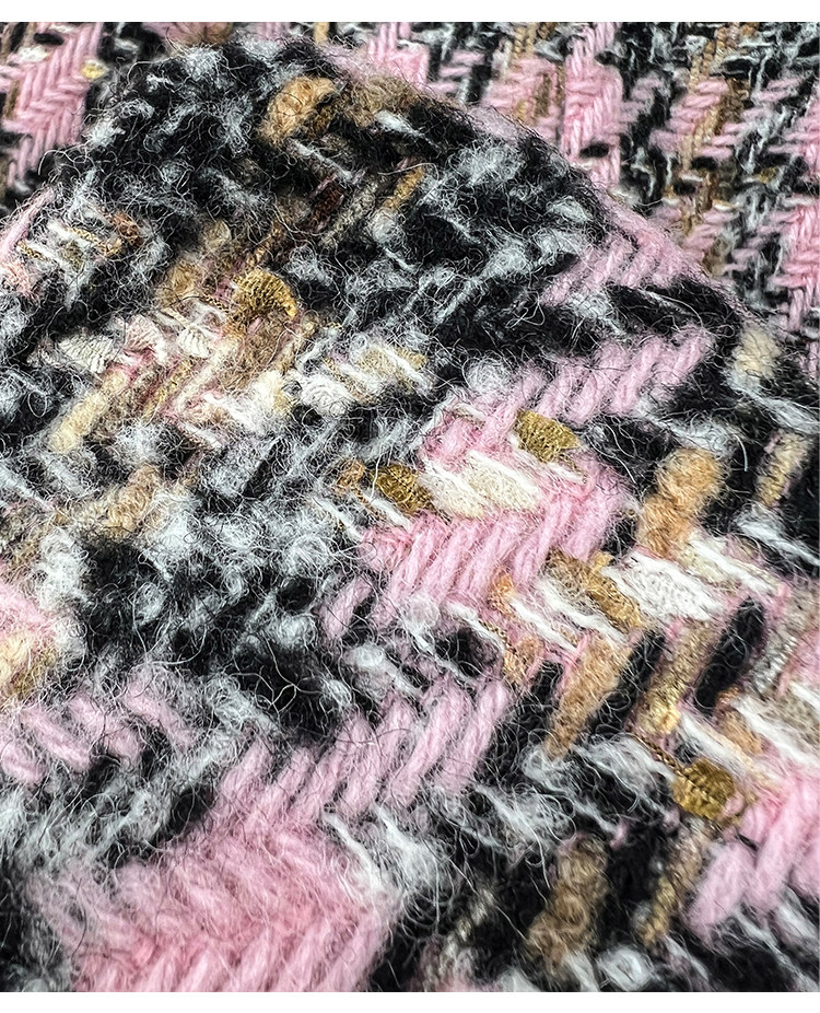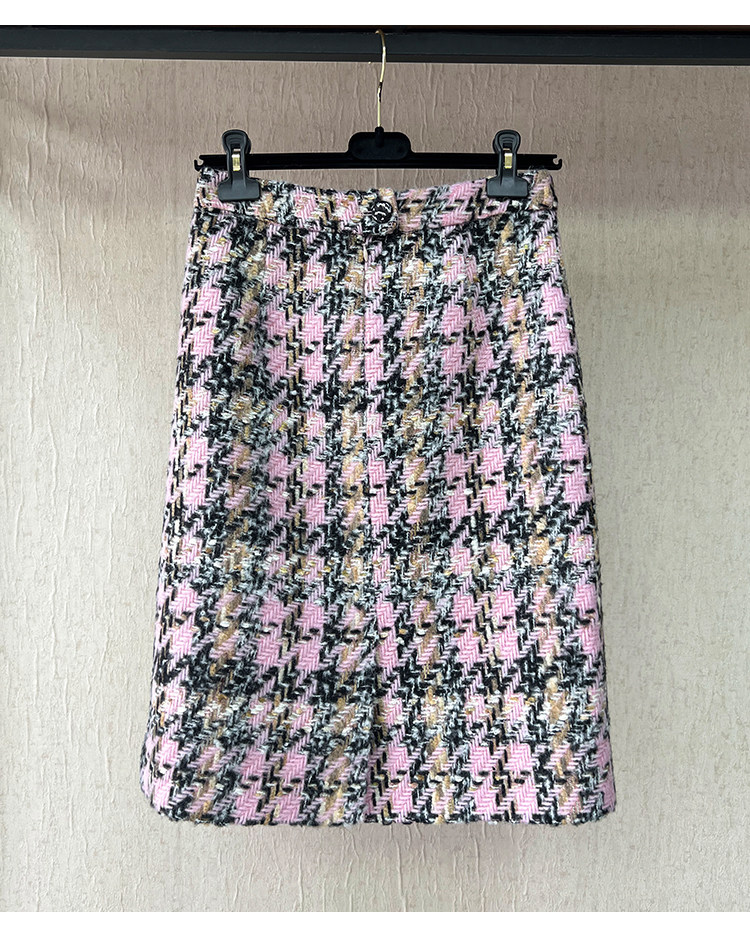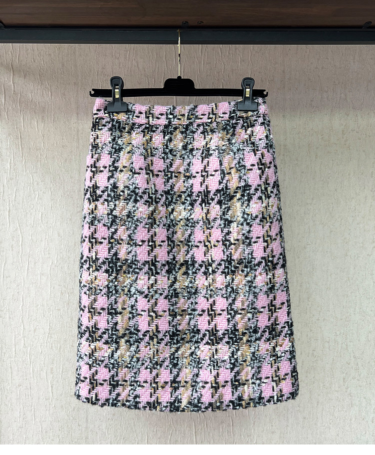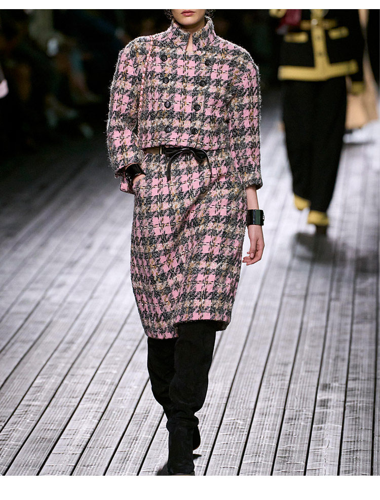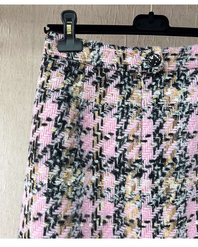 Autumn and winter new jackets, women's stand-up collar skirts, wool knitted tweed pink plaid suits, celebrity women's clothing