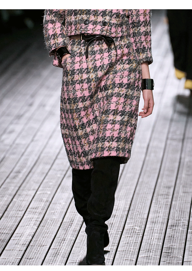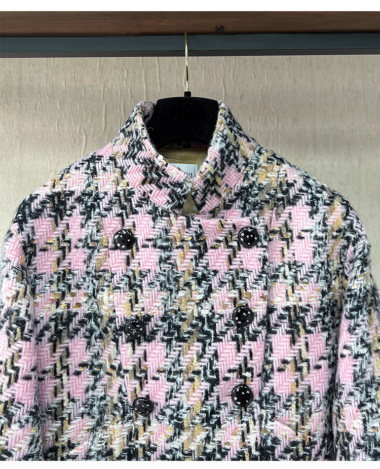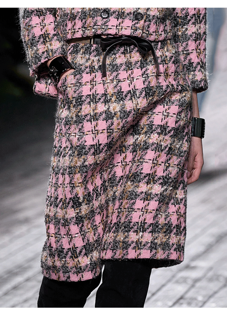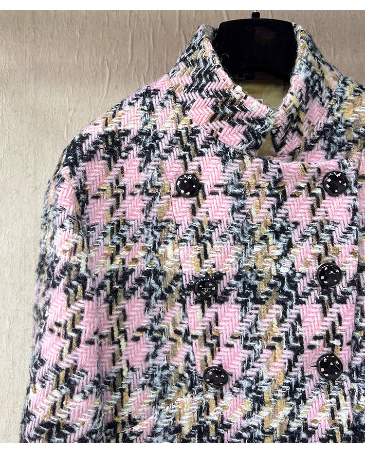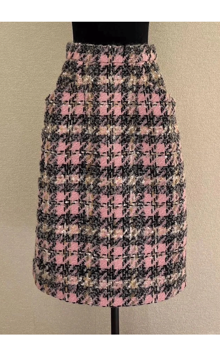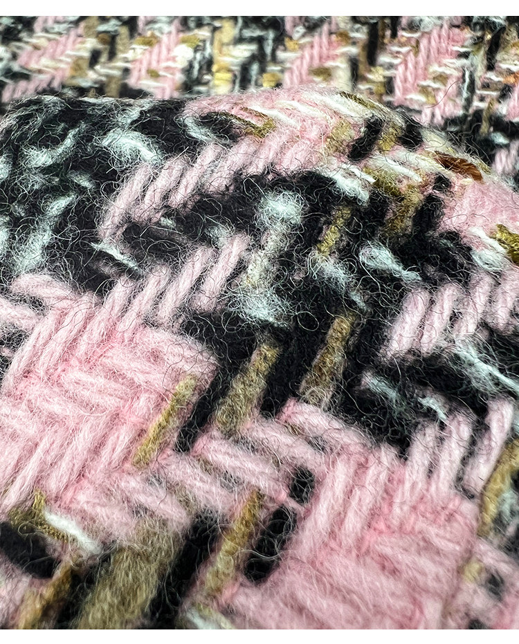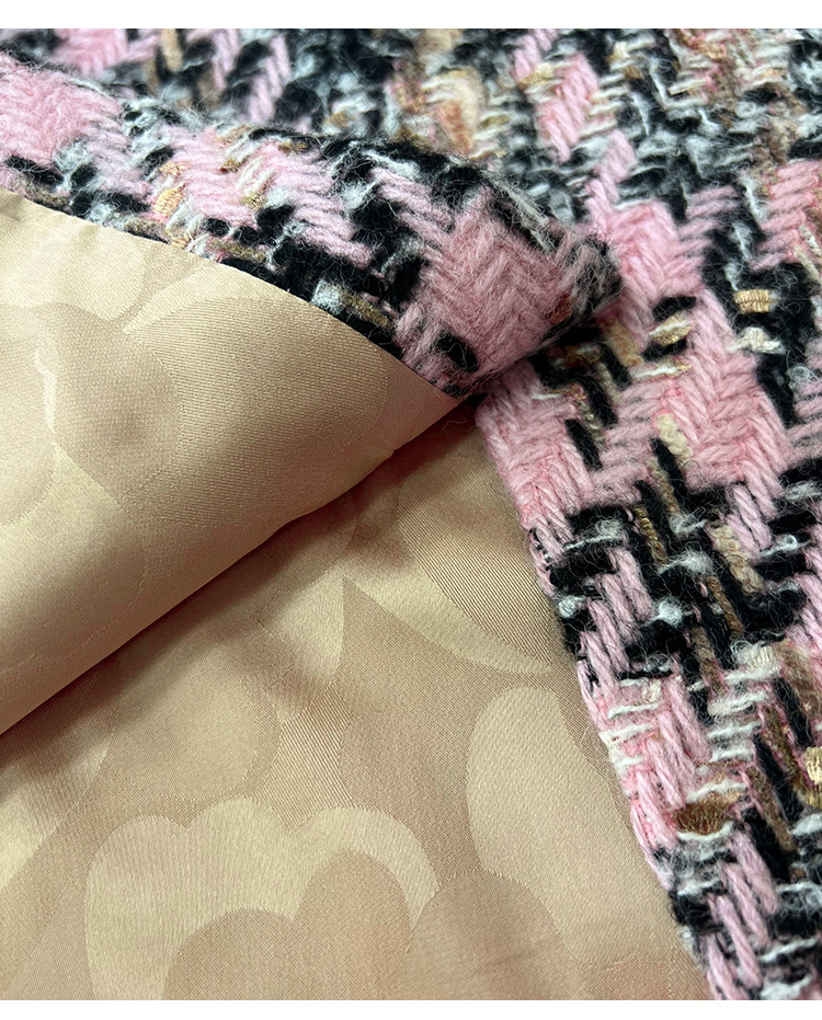 Autumn and winter new jackets, women's stand-up collar skirts, wool knitted tweed pink plaid suits, celebrity women's clothing