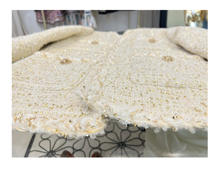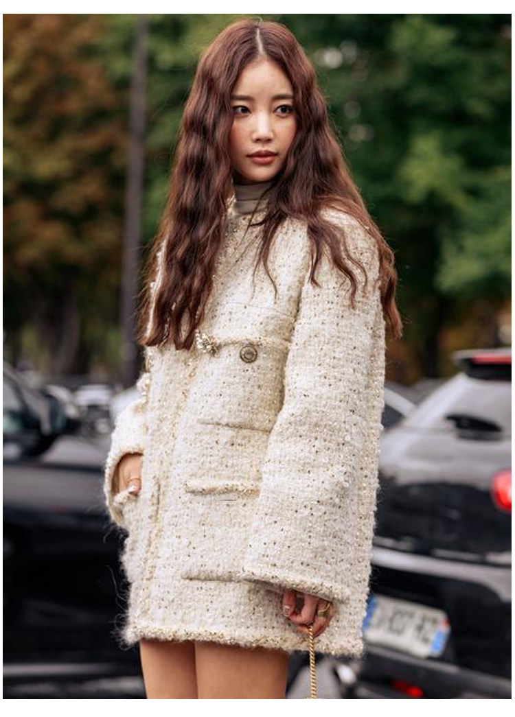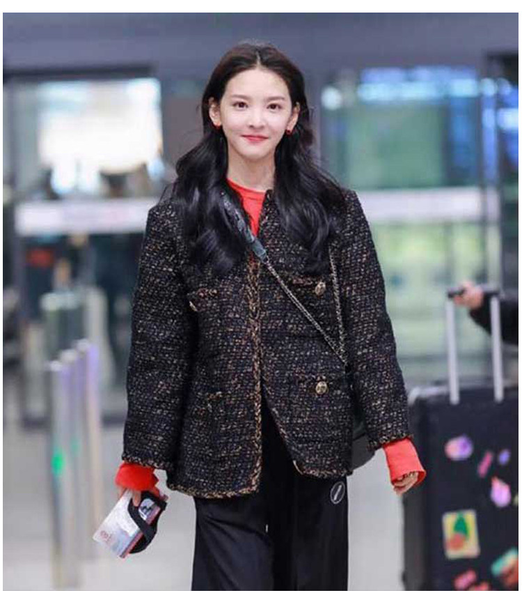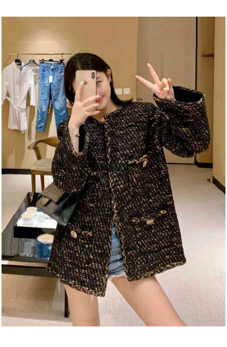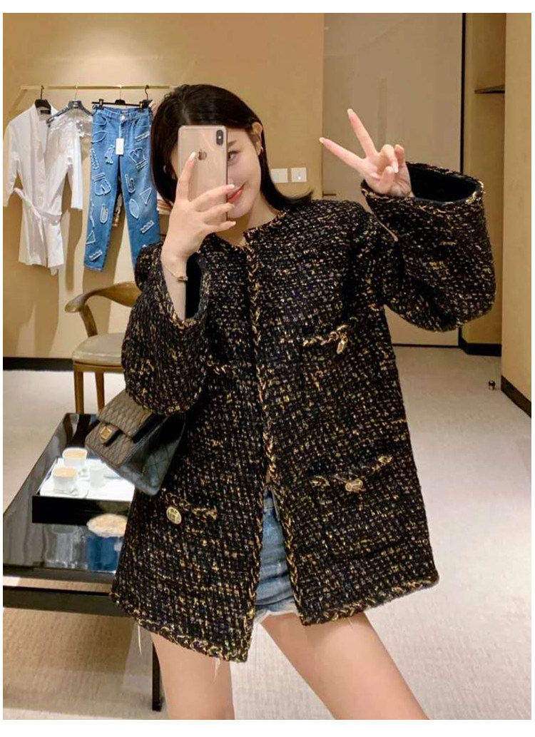 Black gold coat, socialite spring new Chen Weiting wool thickened loose padded coarse tweed top