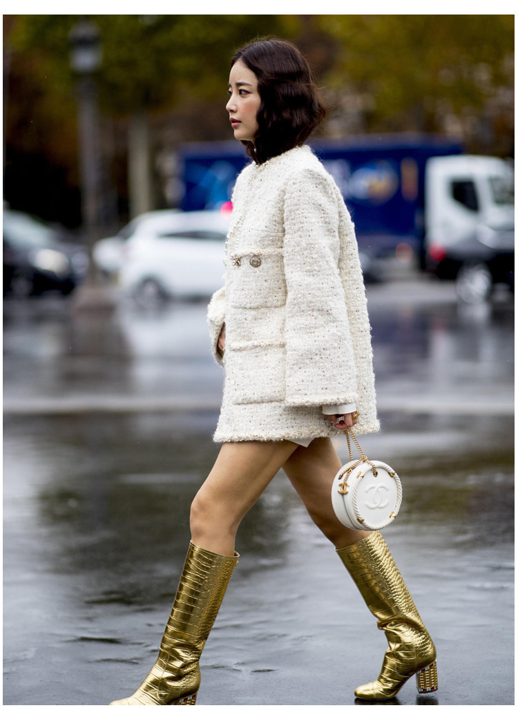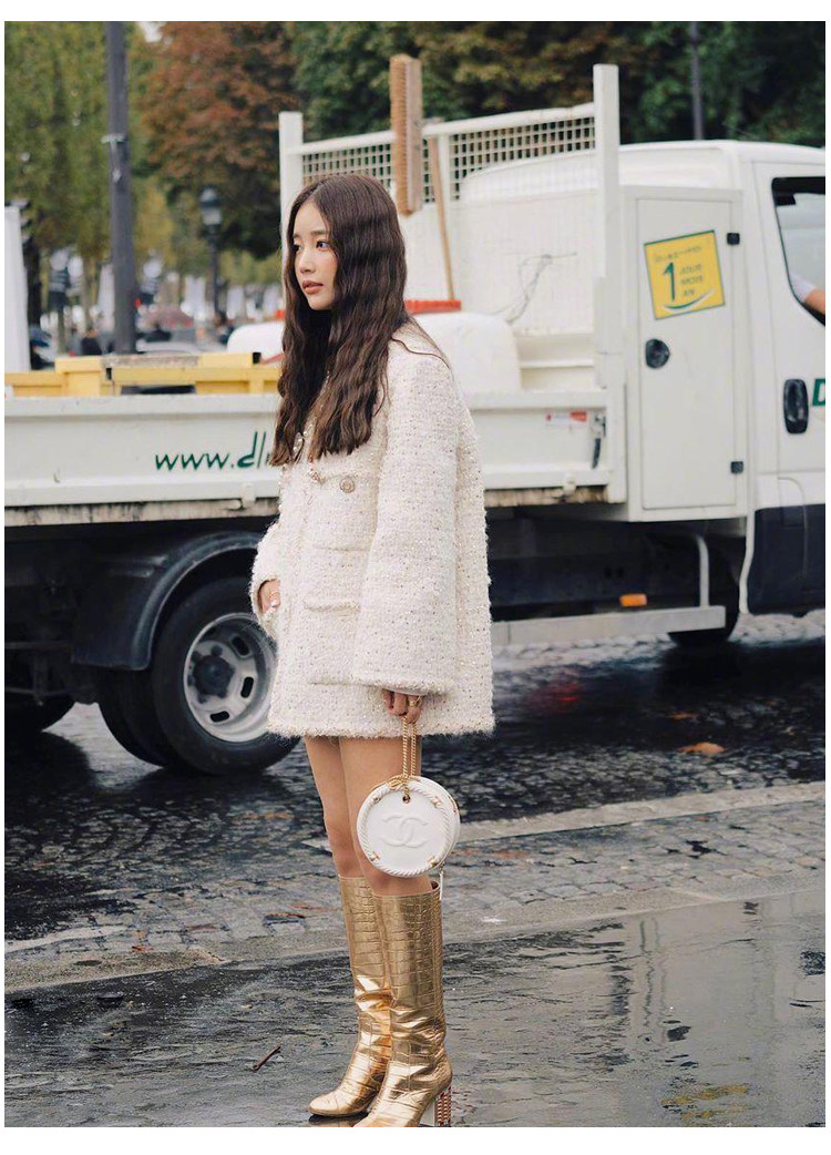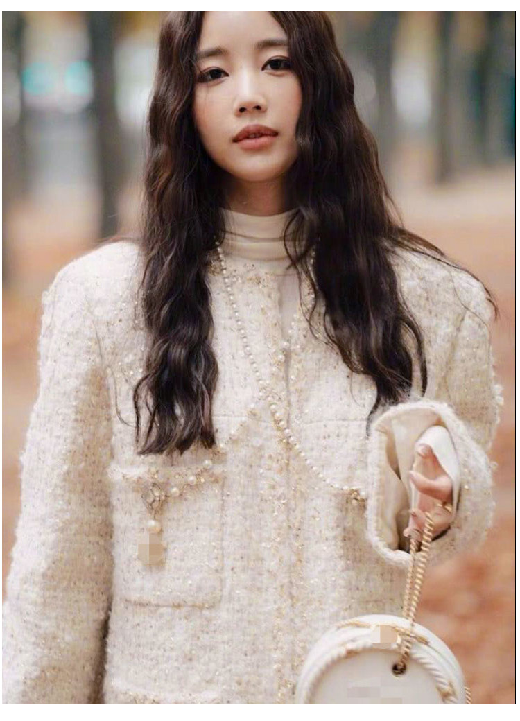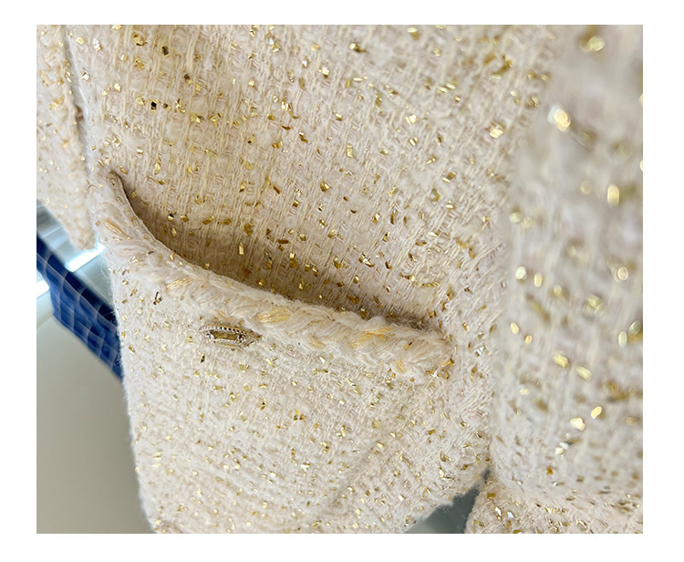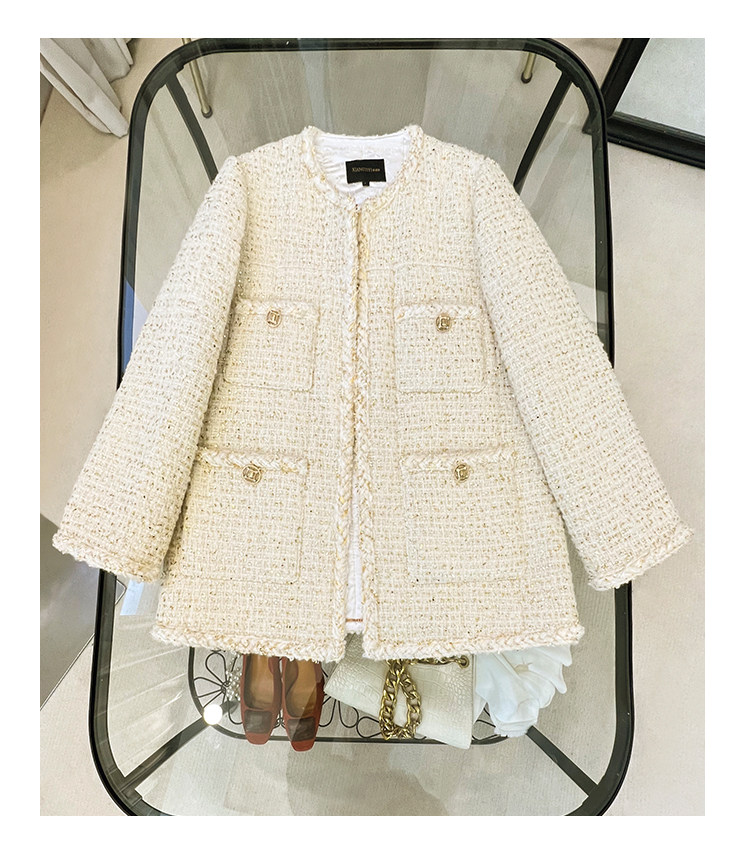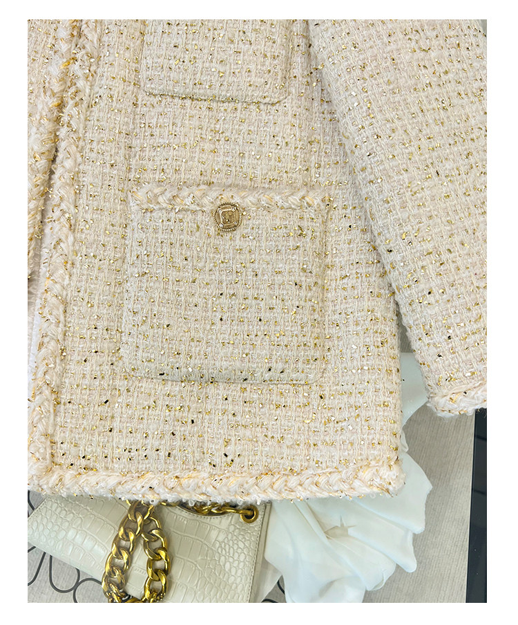 Black gold coat, socialite spring new Chen Weiting wool thickened loose padded coarse tweed top