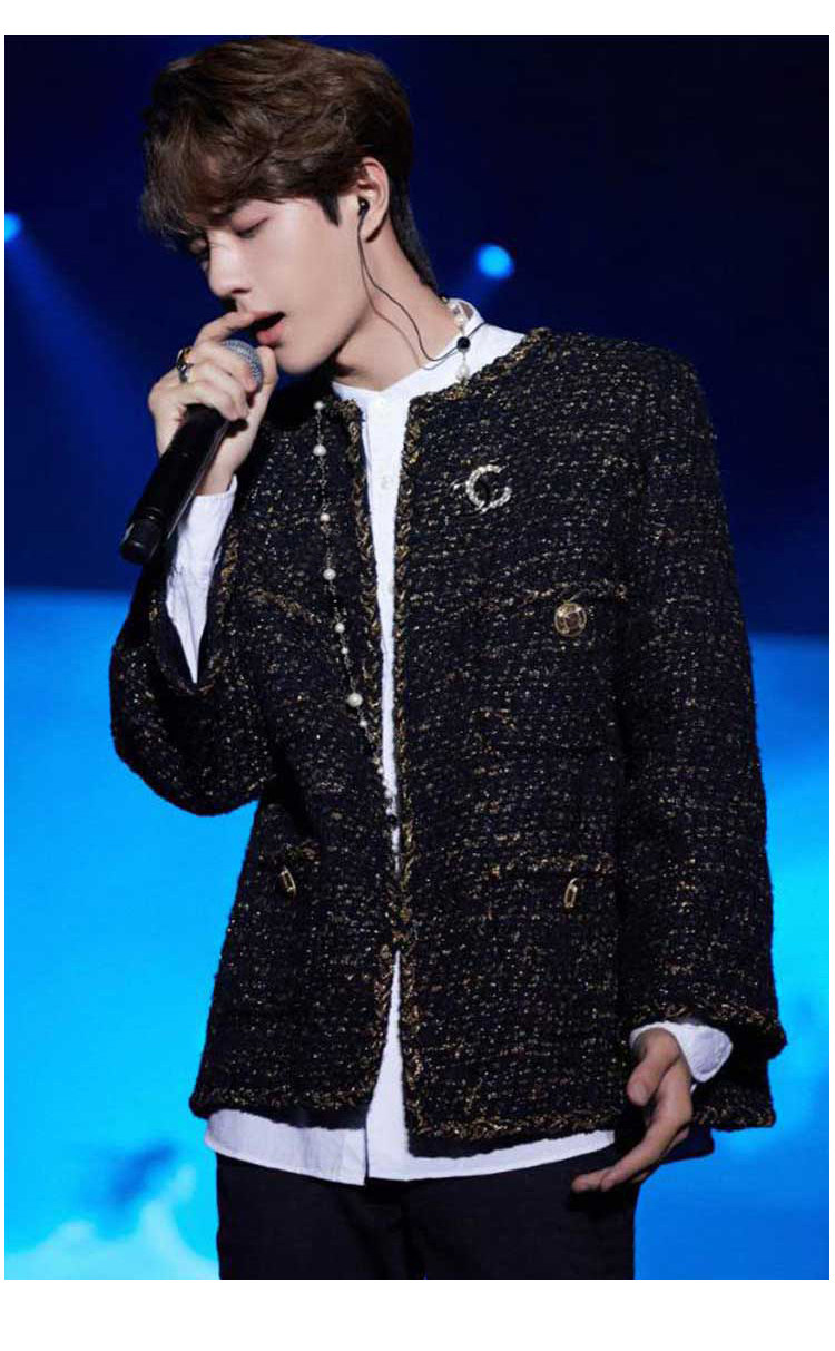 Wang Yibo star with the same black small fragrant style thick coat women's autumn and winter new celebrity style loose tweed top classic resurrection, black small fragrant style coat women's spring and autumn new niche temperament high-end top dialogue French chic small fragrant style coat women's autumn new 2022 temperament casual texture loose top
