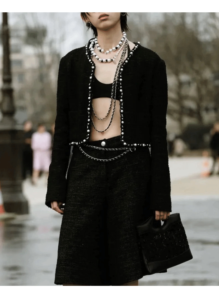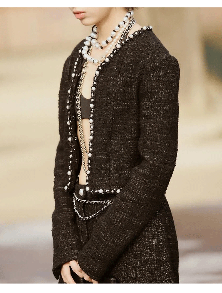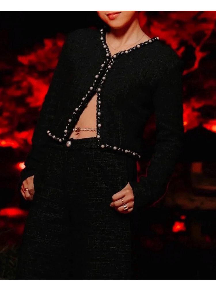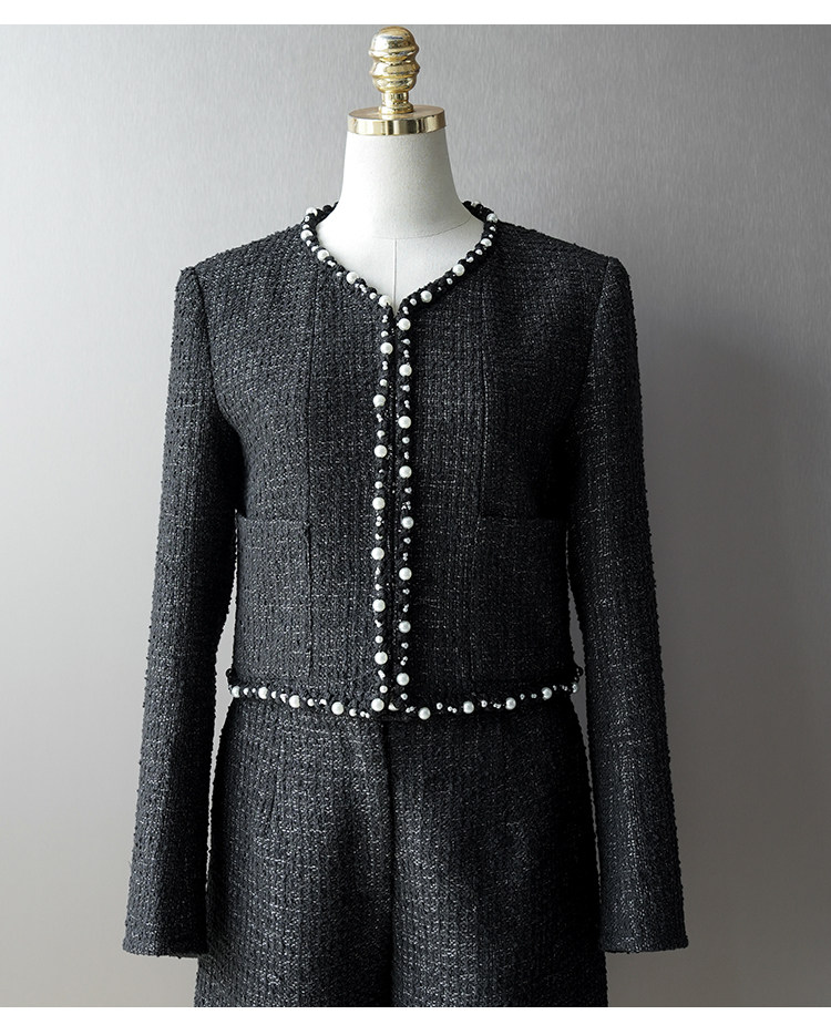 Celebrity suit short jacket medium pants wool tweed temperament versatile 25 early spring new haute couture women's clothing