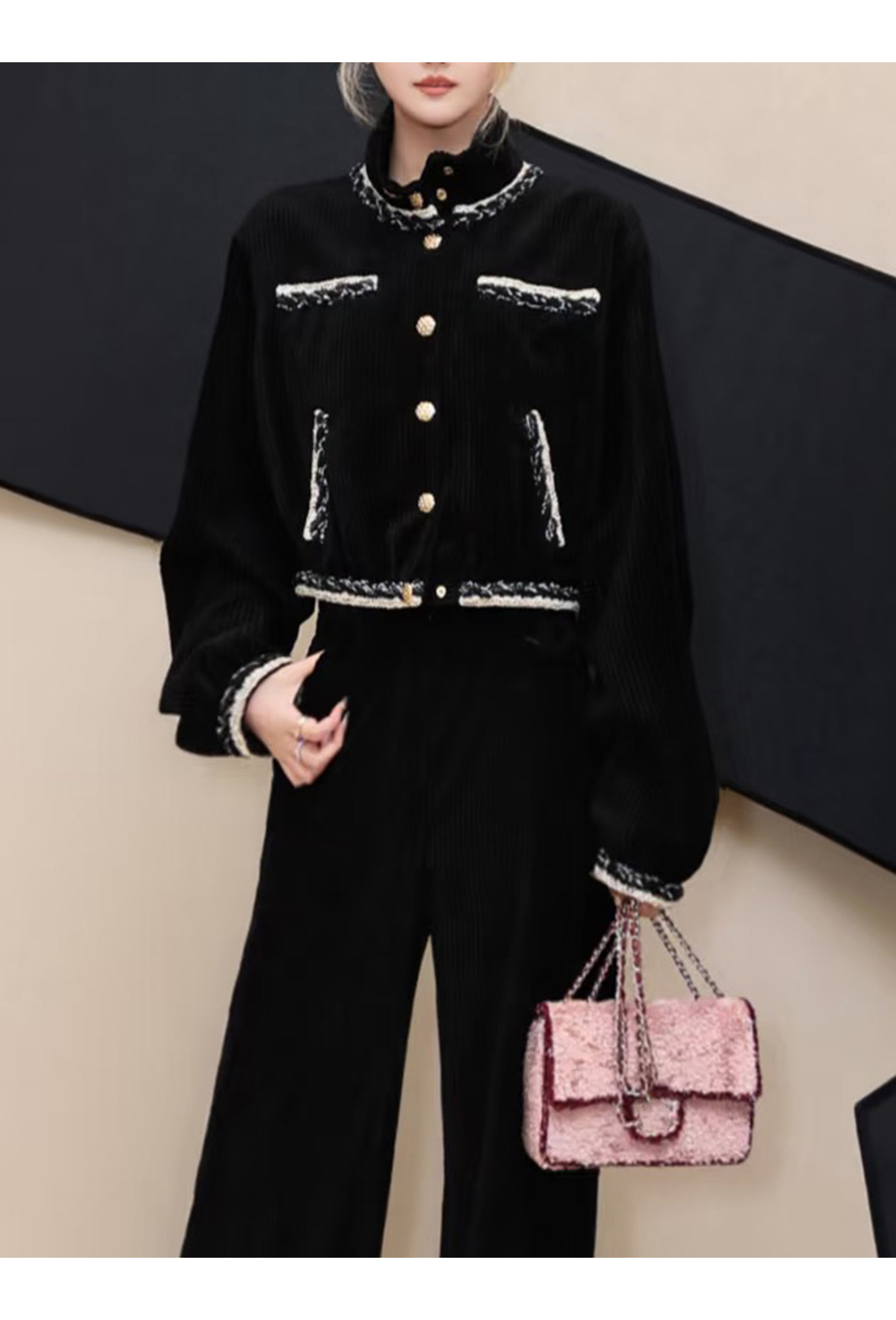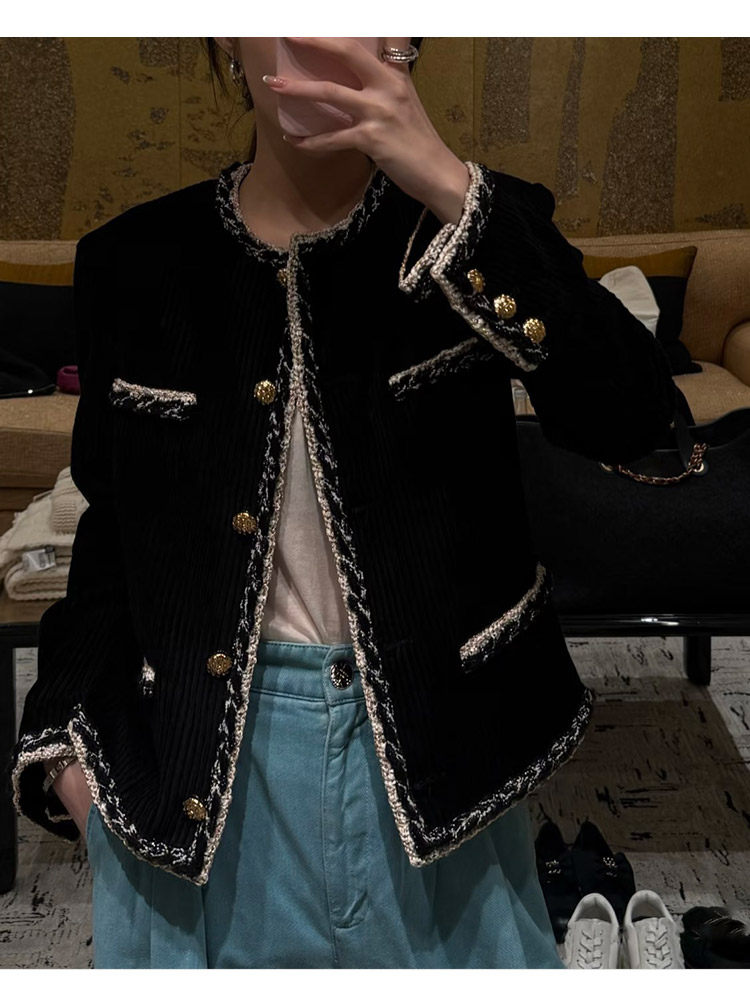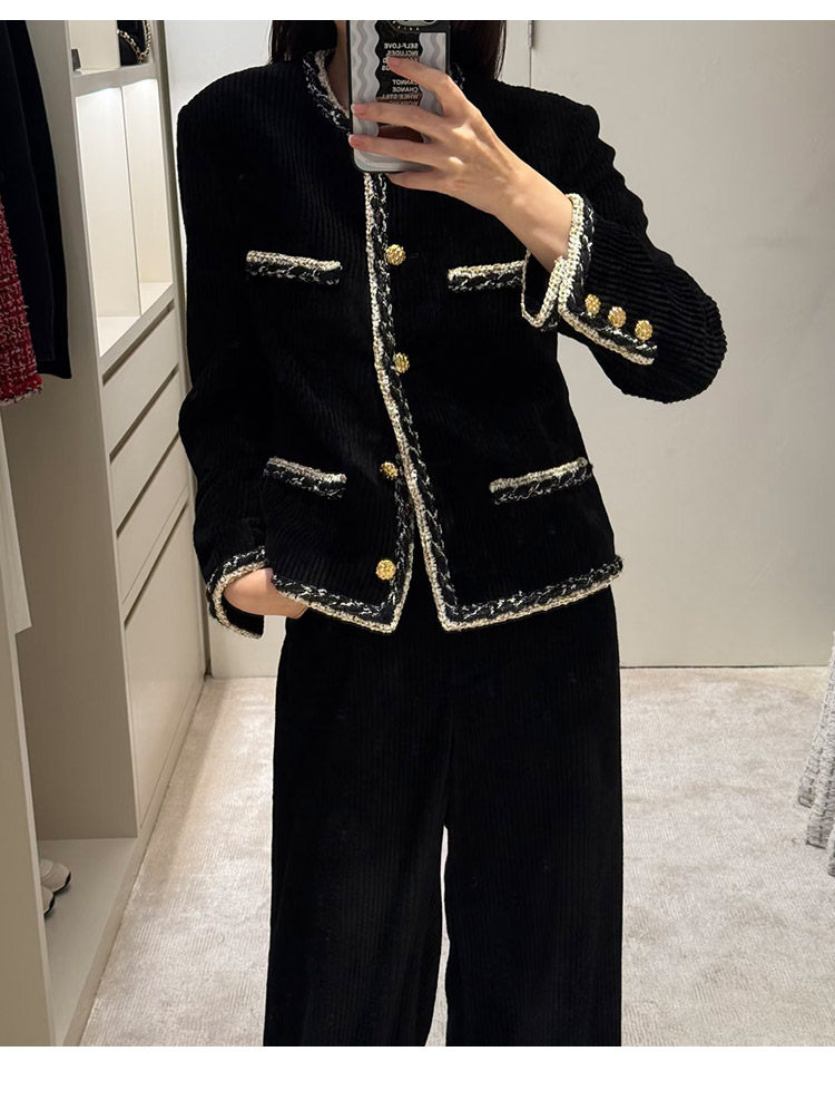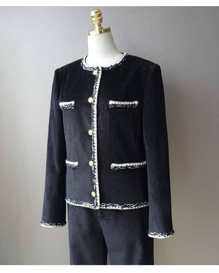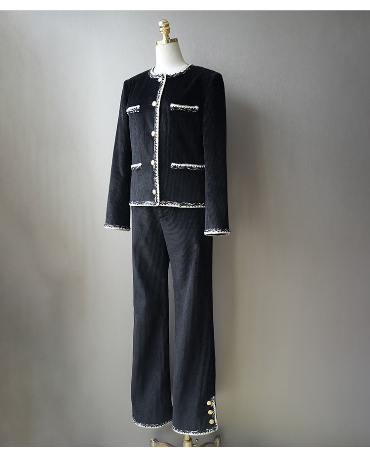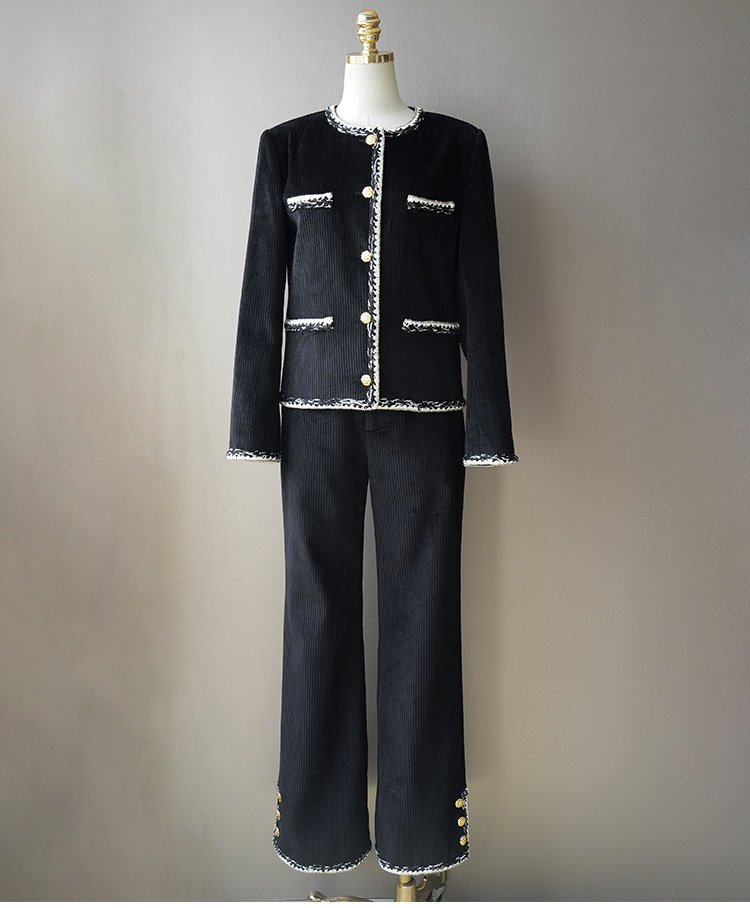 Celebrity temperament high-end suit jacket women's jacket short wide-leg pants corduroy two-piece set