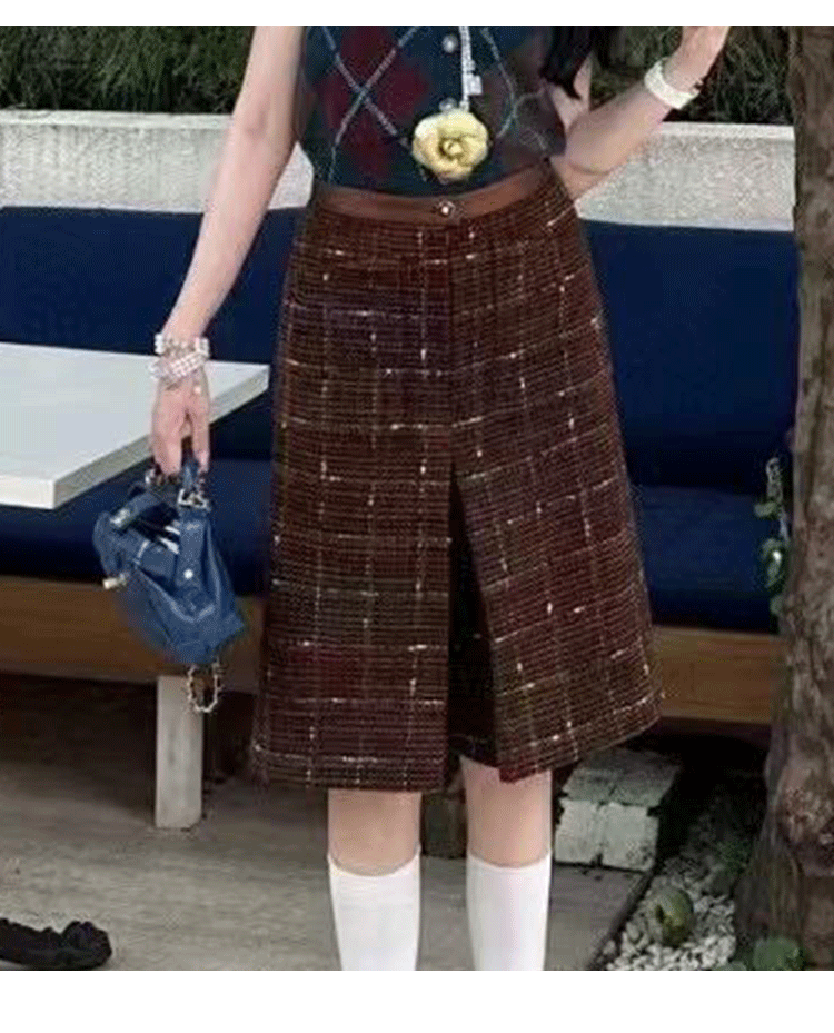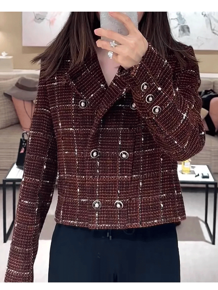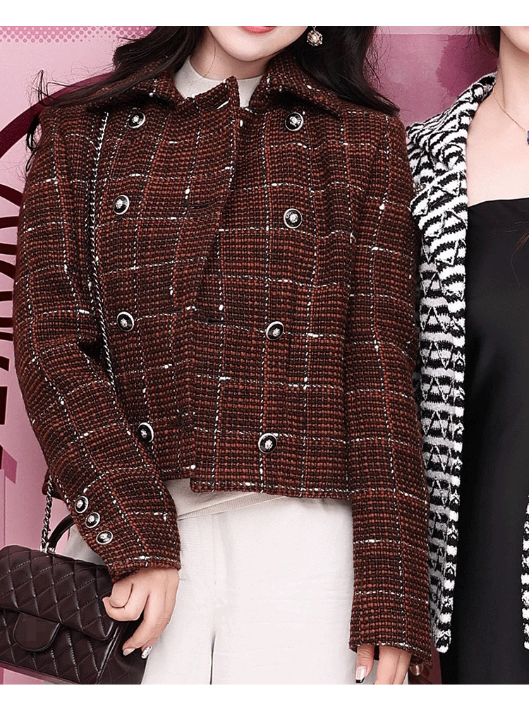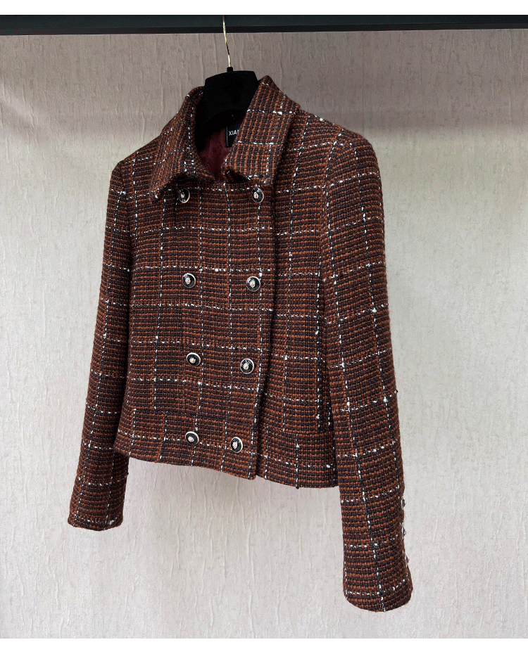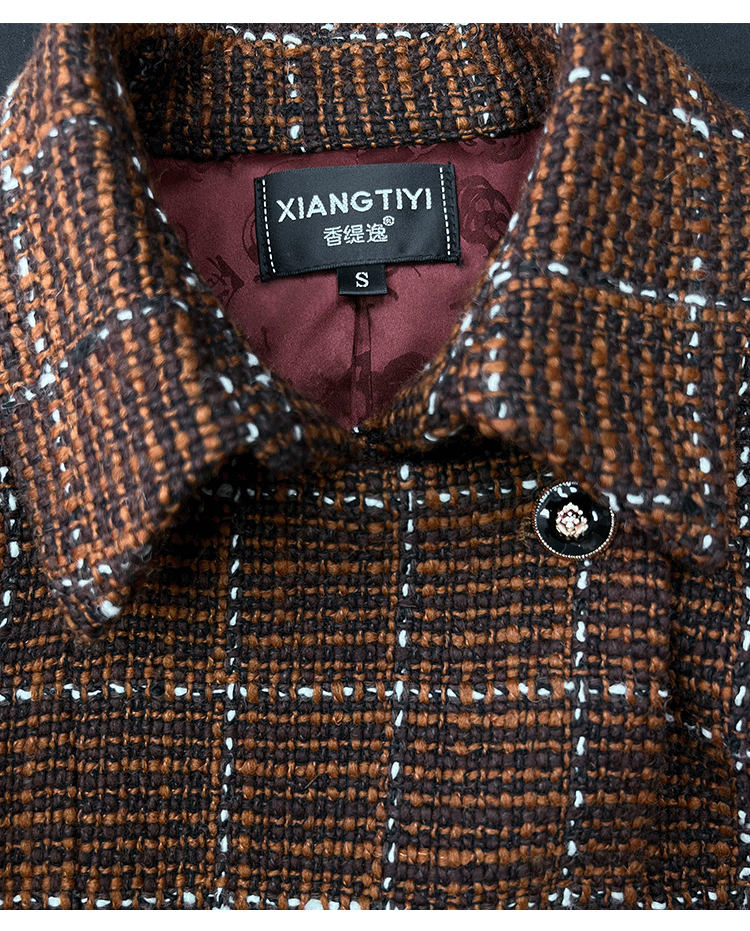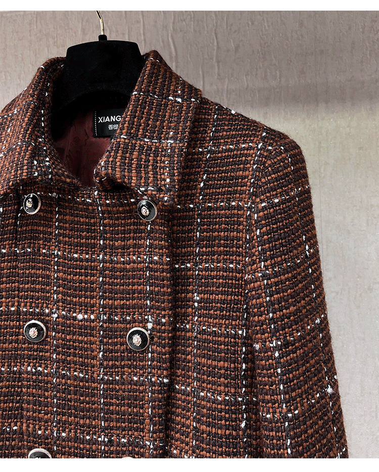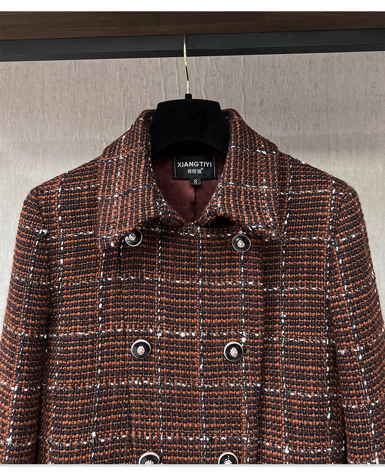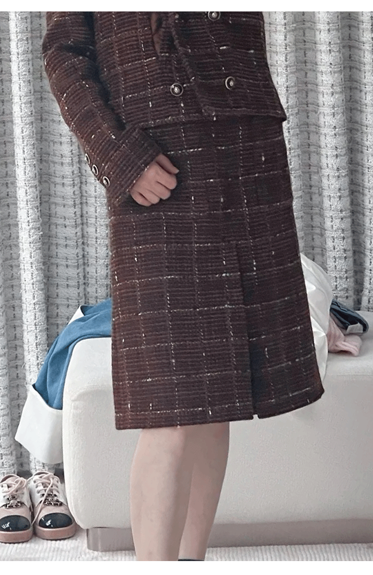 Coat Qiao Xin same temperament elegant lapel jacket plaid wool suit hip wrap thin skirt