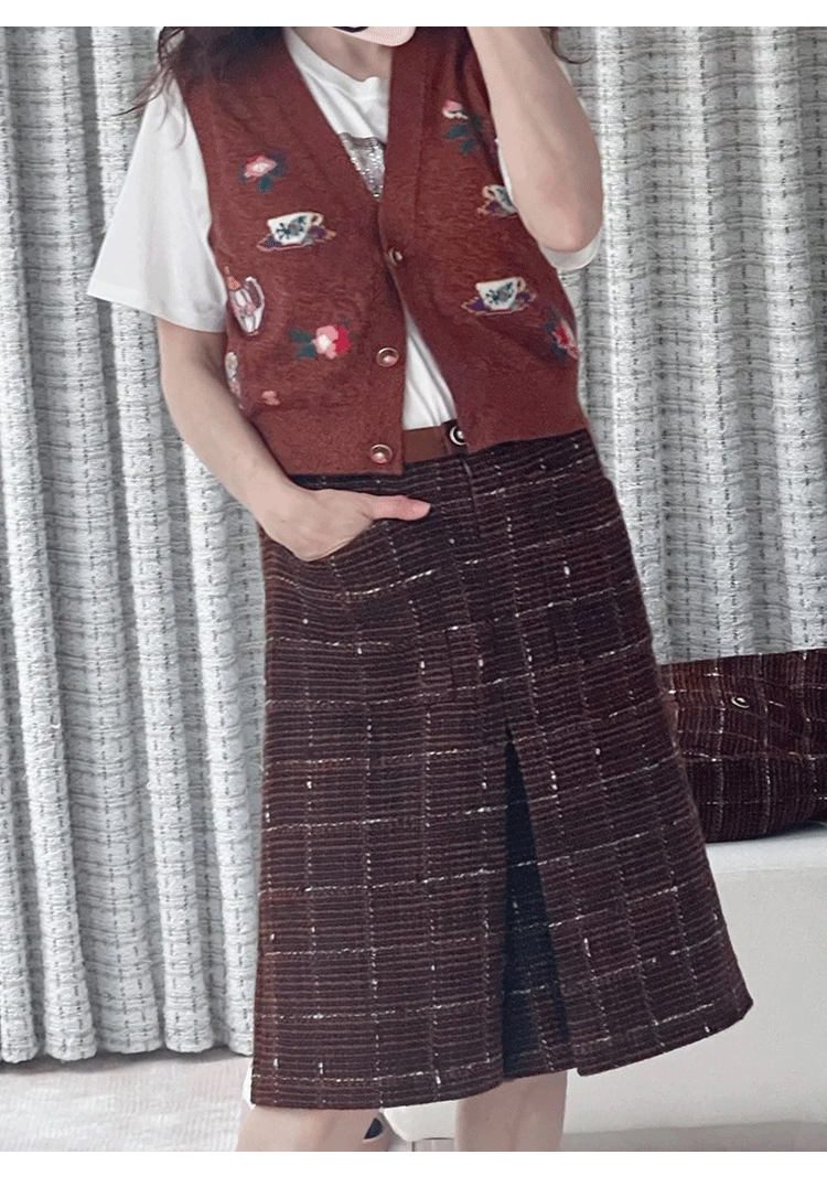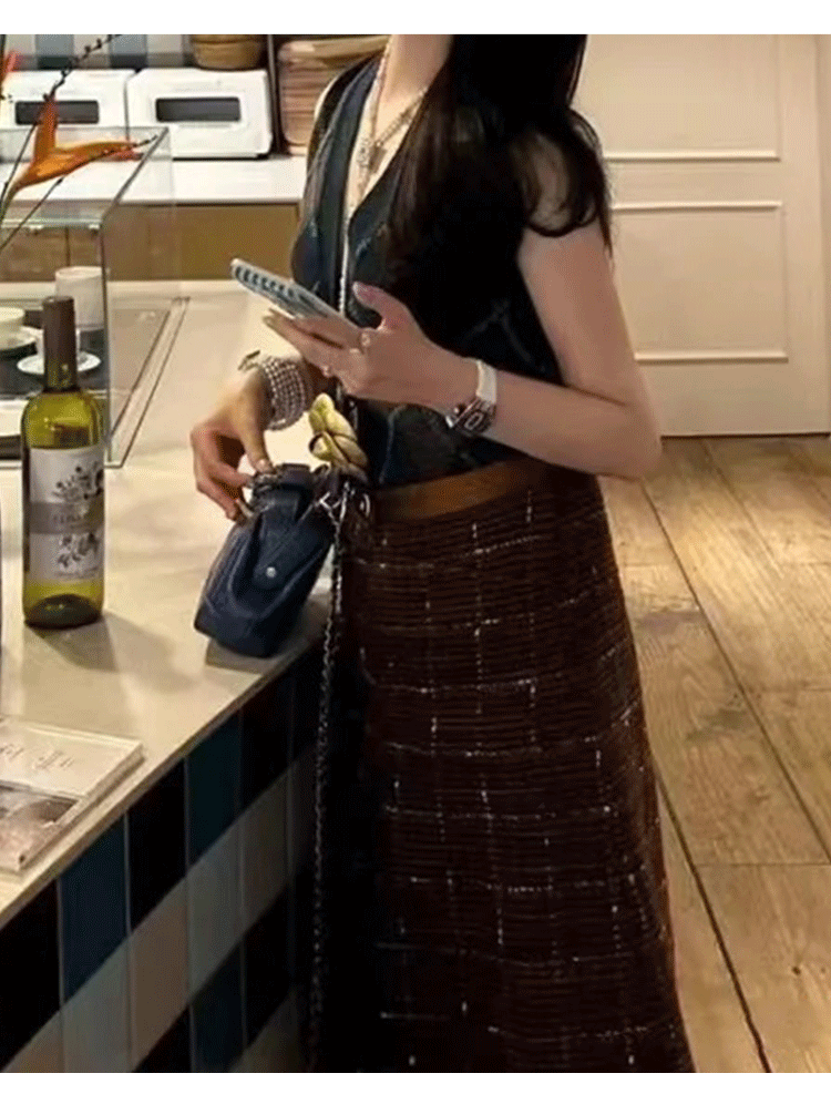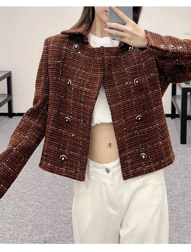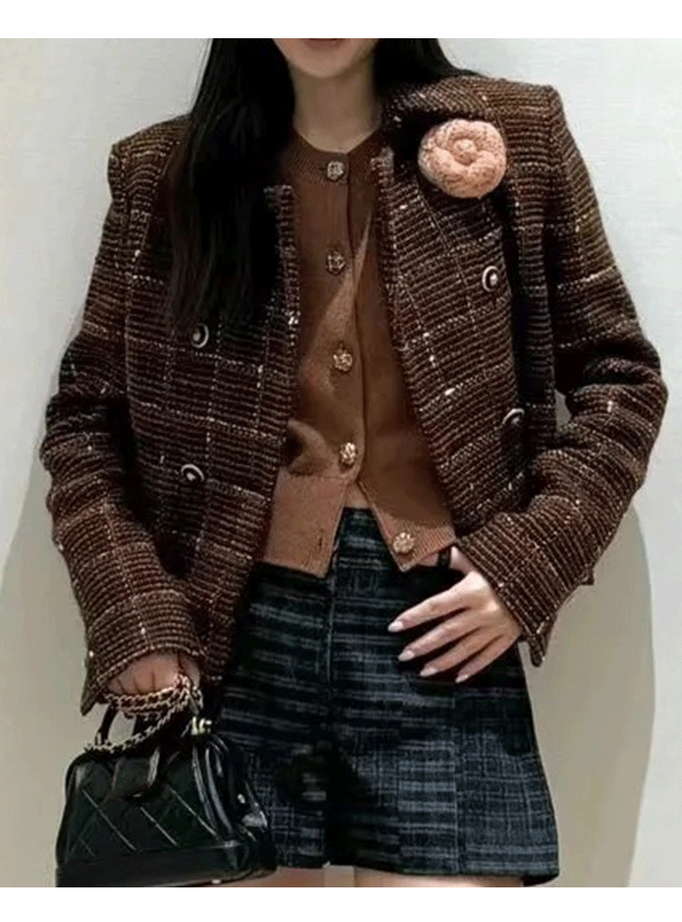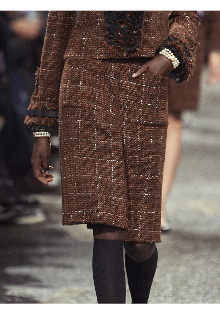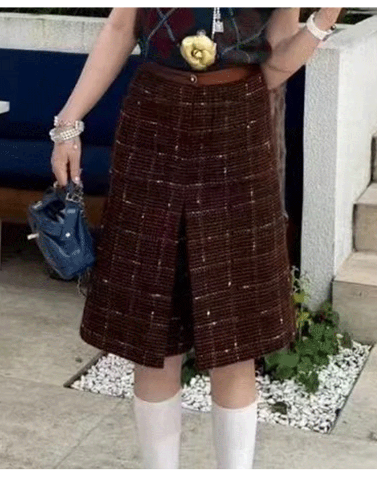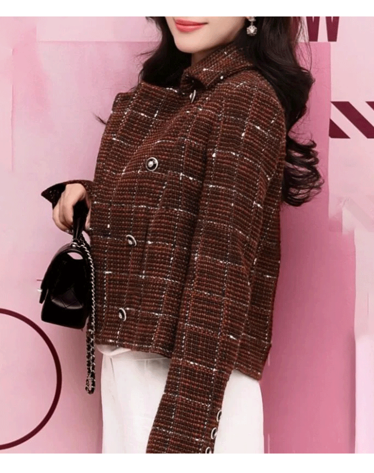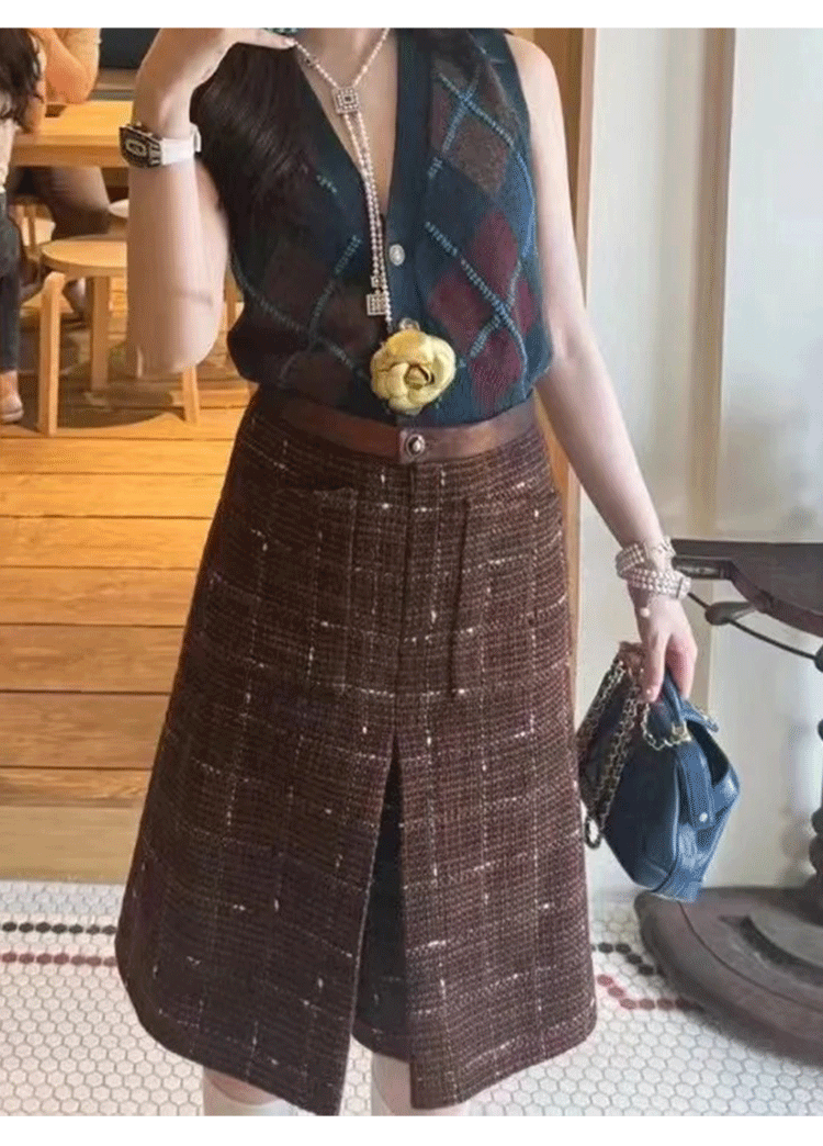 Coat Qiao Xin same temperament elegant lapel jacket plaid wool suit hip wrap thin skirt