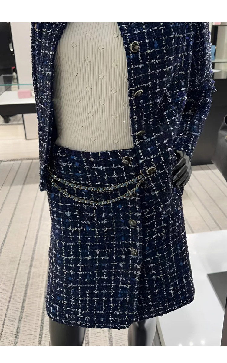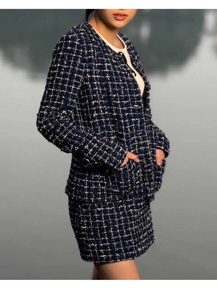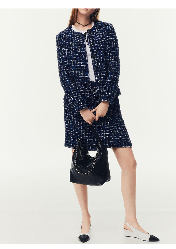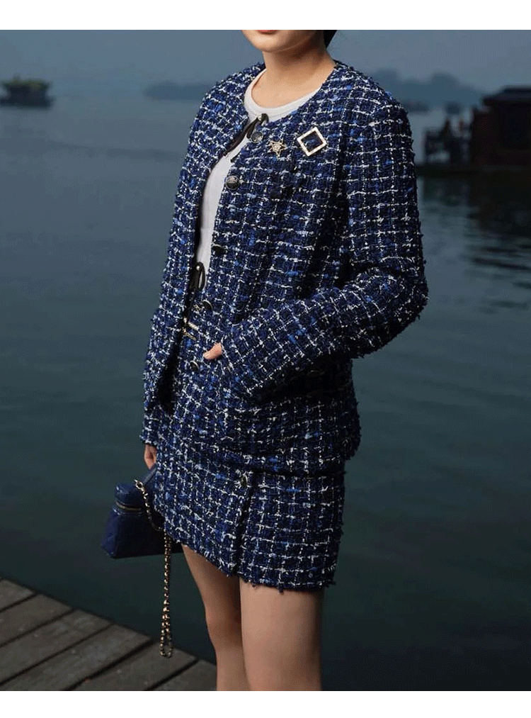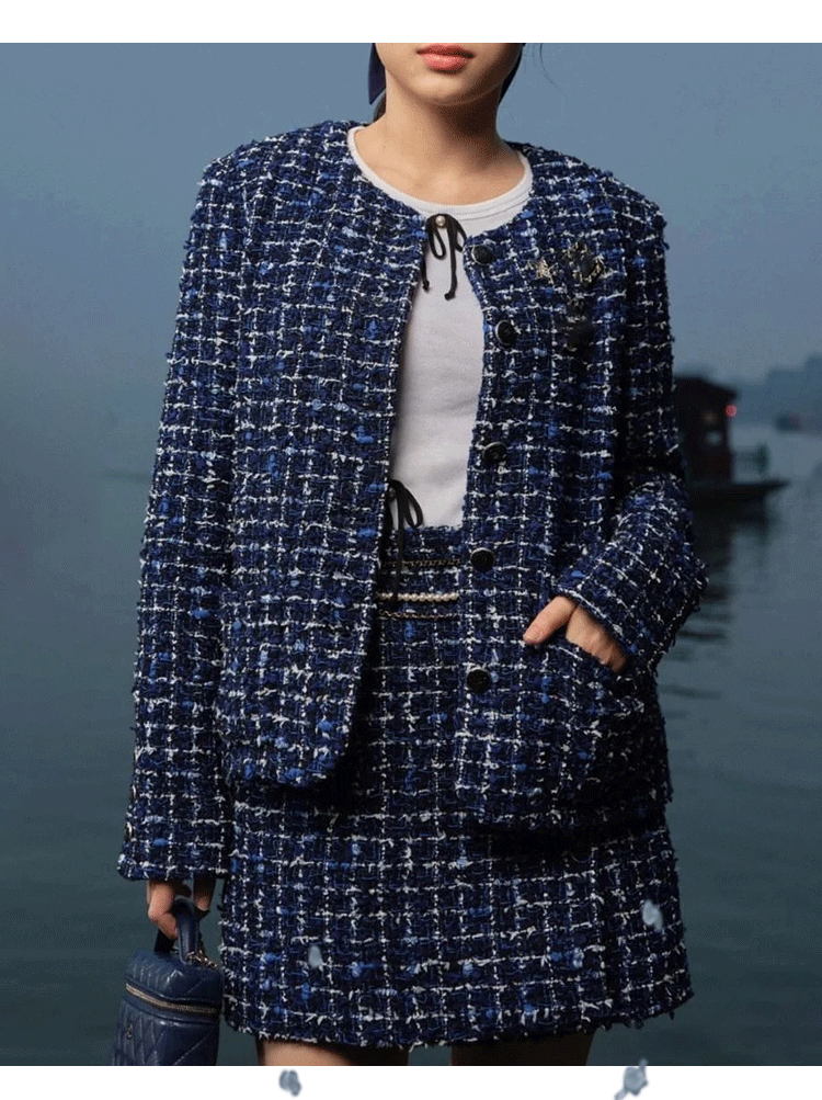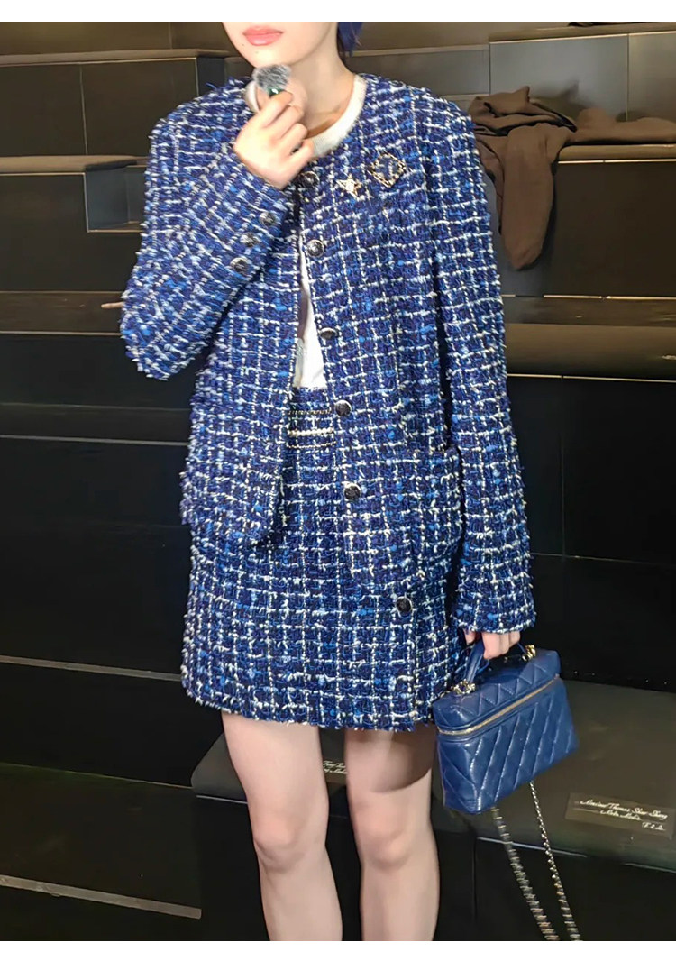 Early spring new high-end celebrity suit, coat, skirt, women's wool tweed temperament two-piece set