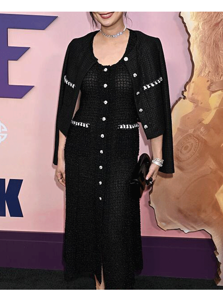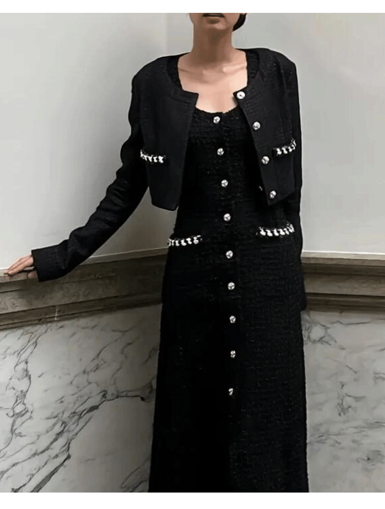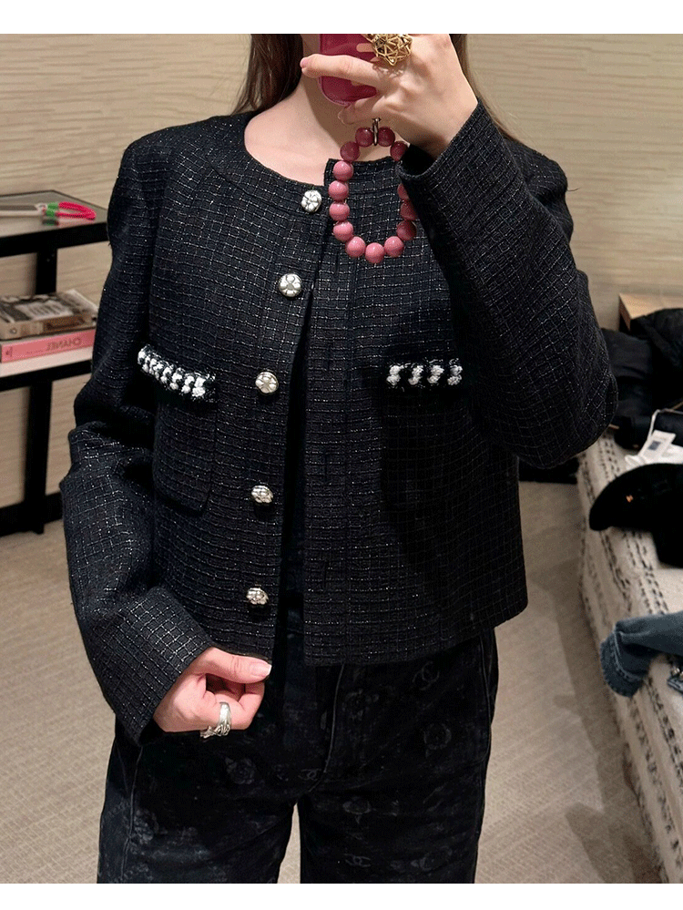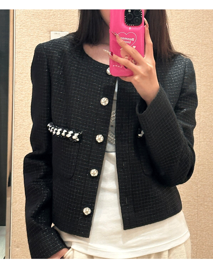 Jin Zhini has the same short coat, socialite temperament, round neck, long sleeve, high-end wool tweed top.
