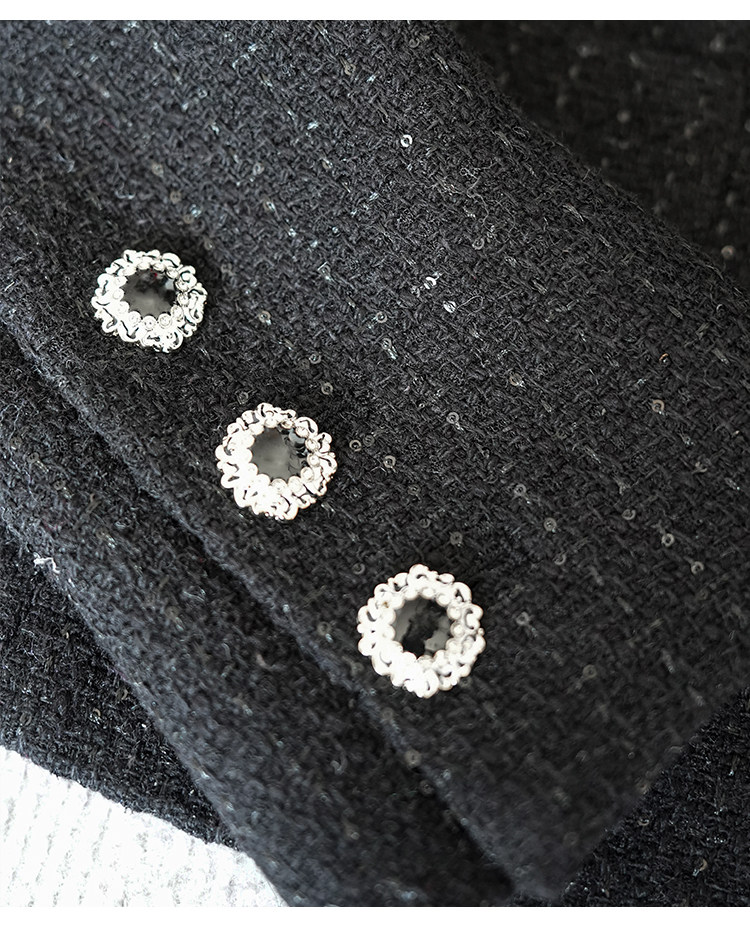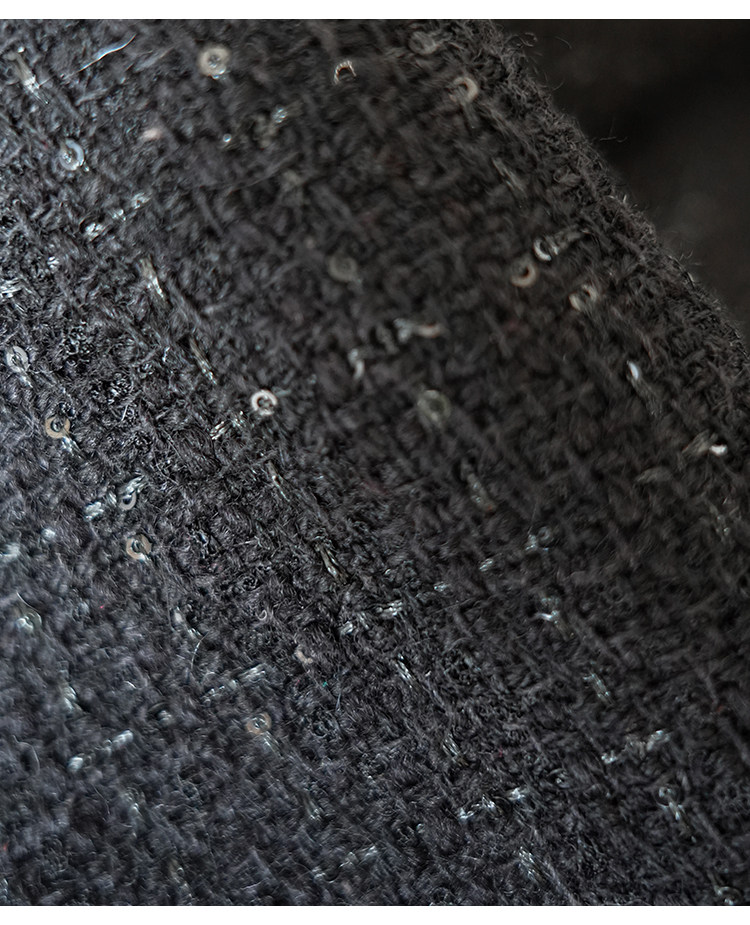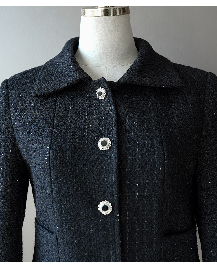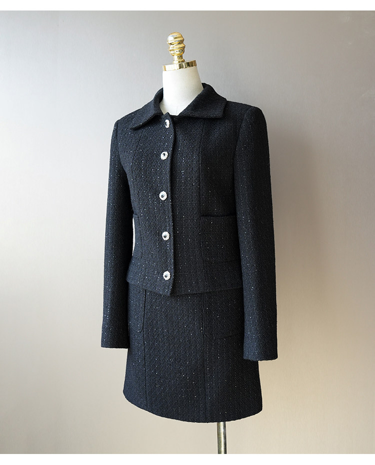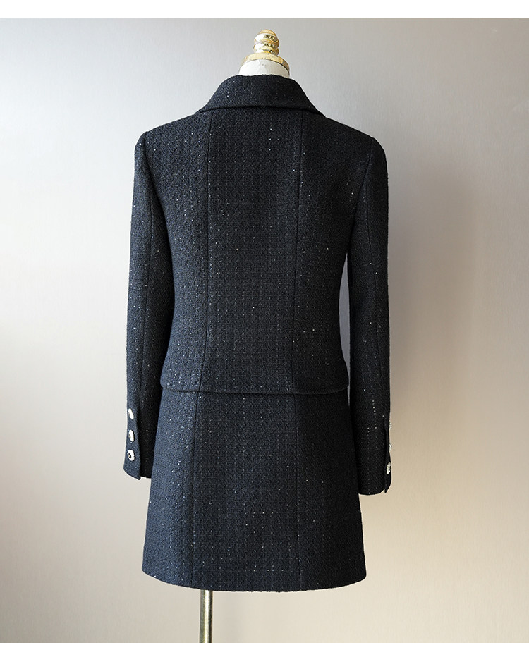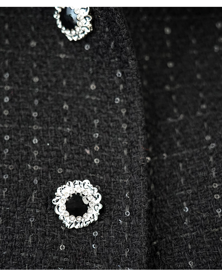 Light luxury black sequined suit women's wool tweed jacket skirt two-piece set celebrity elegance