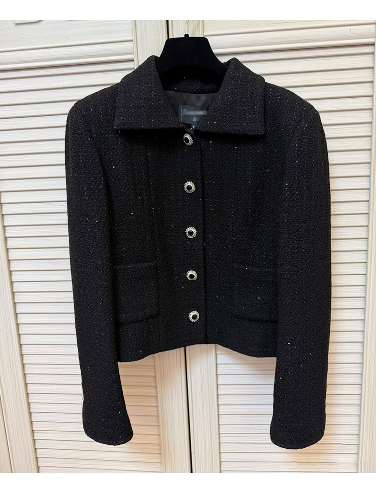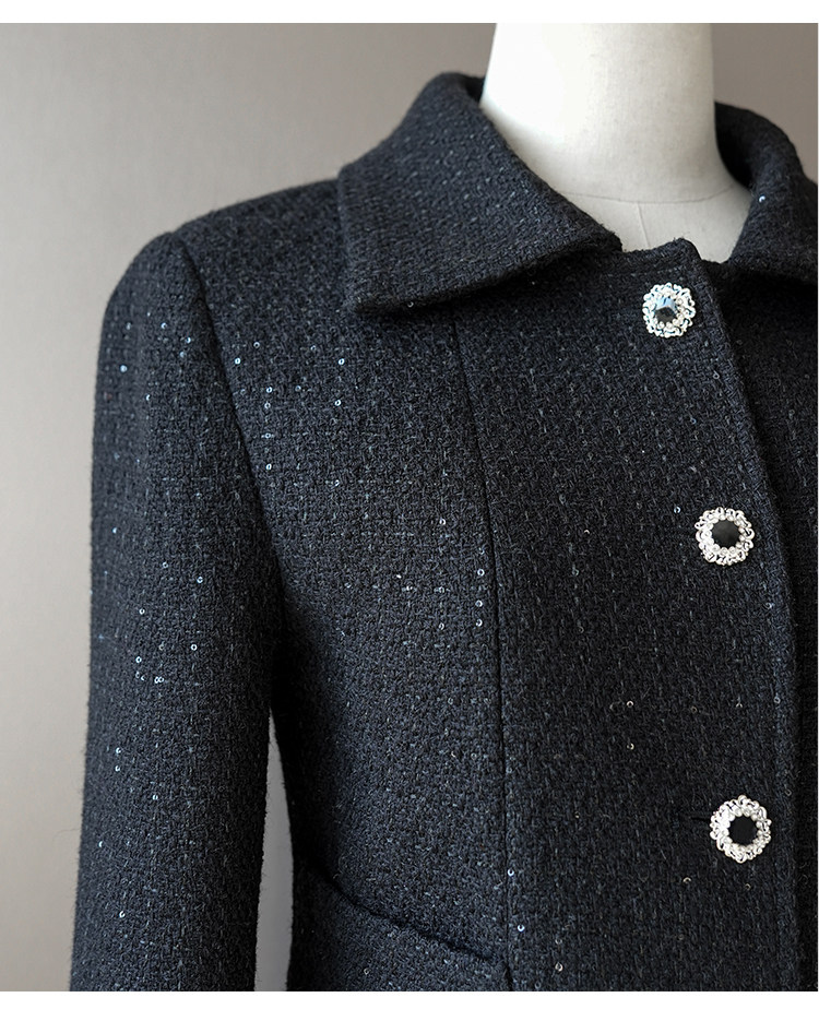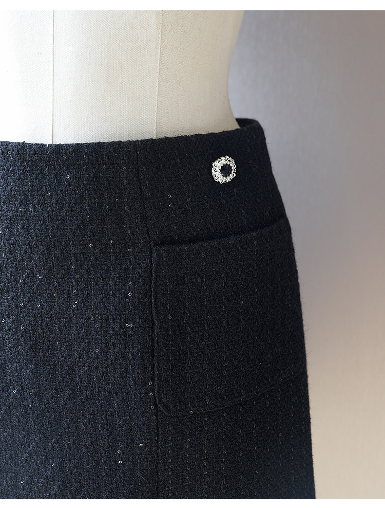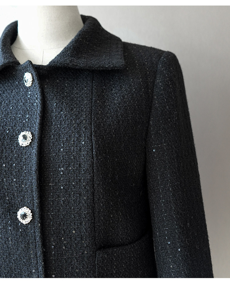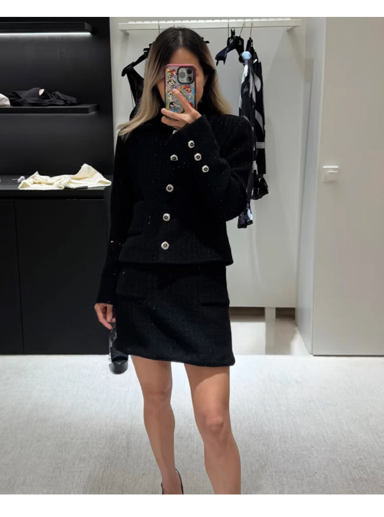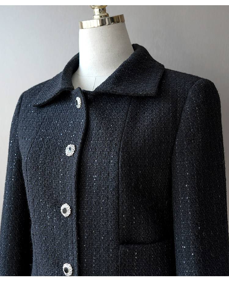 Light luxury black sequined suit women's wool tweed jacket skirt two-piece set celebrity elegance