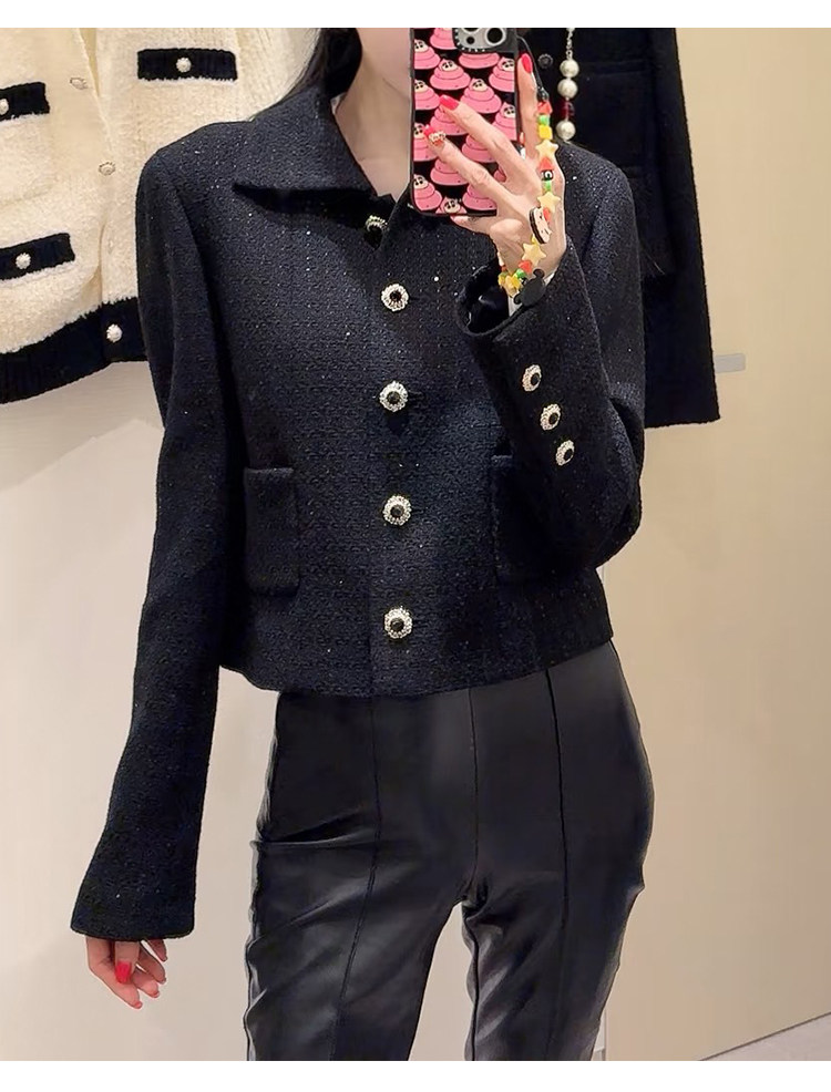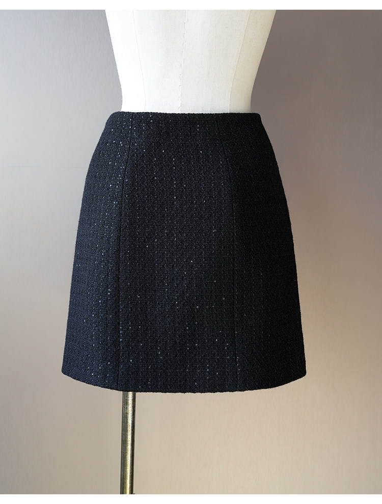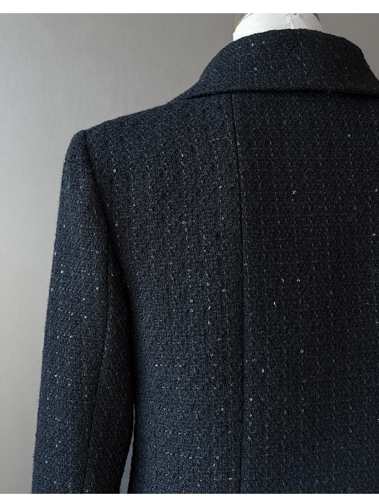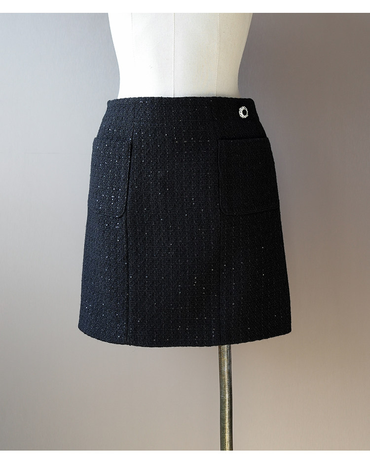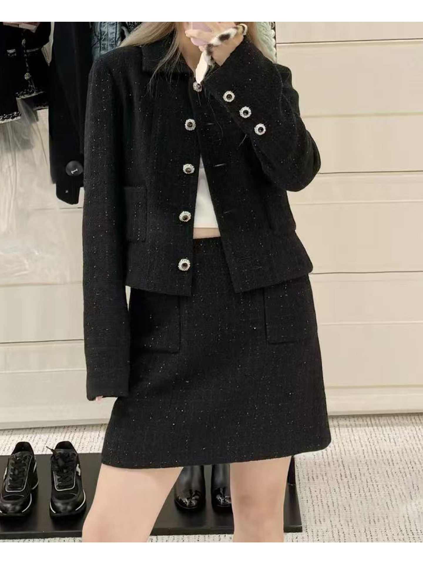 Light luxury black sequined suit women's wool tweed jacket skirt two-piece set celebrity elegance