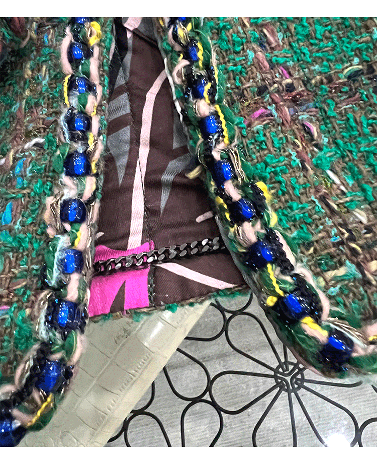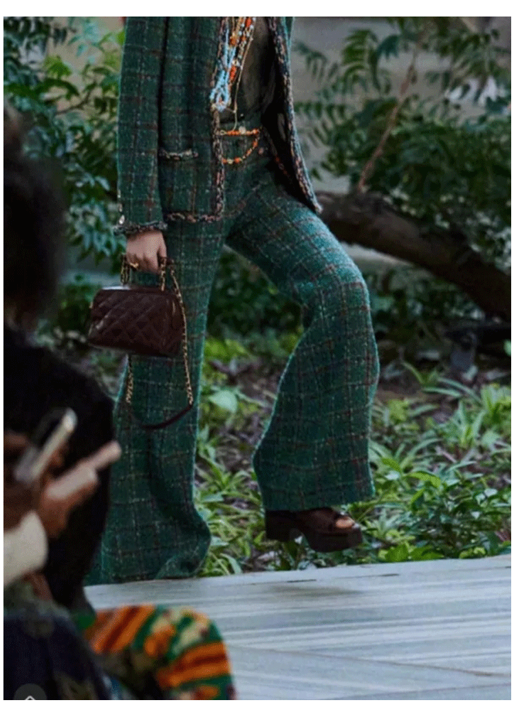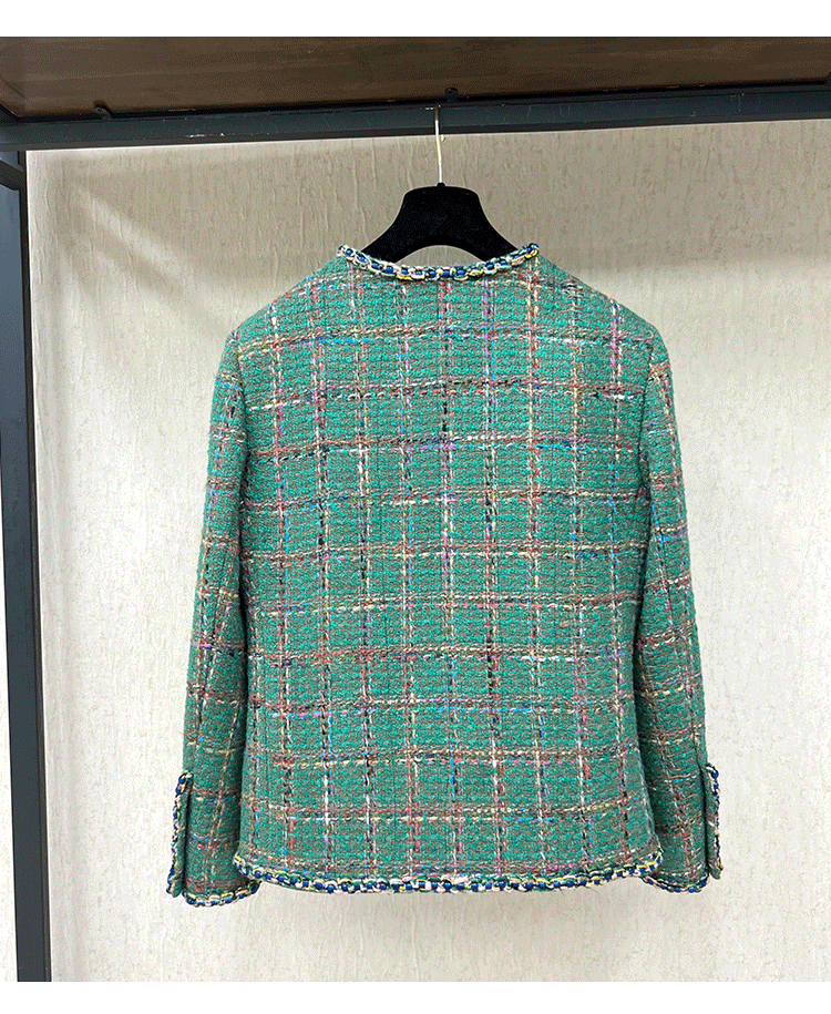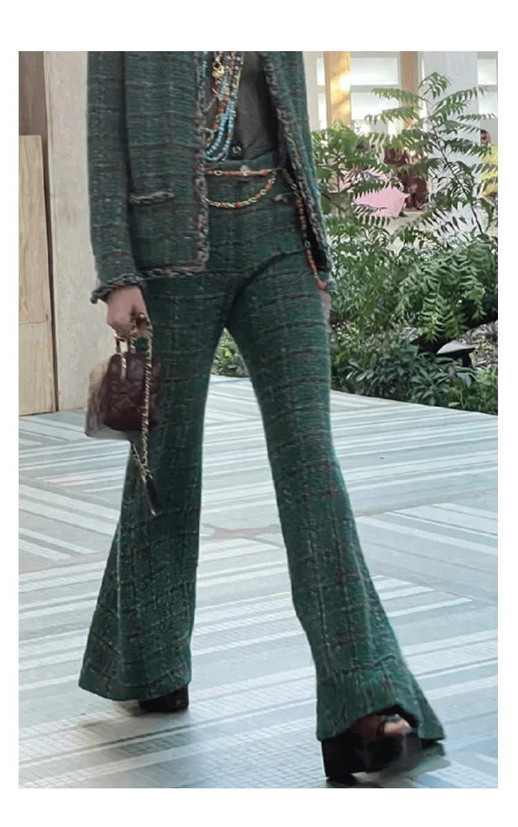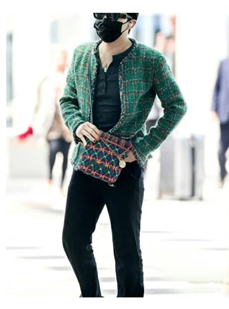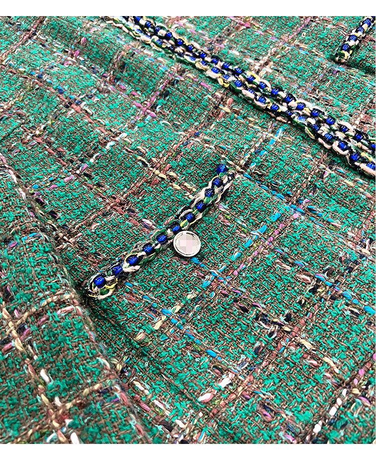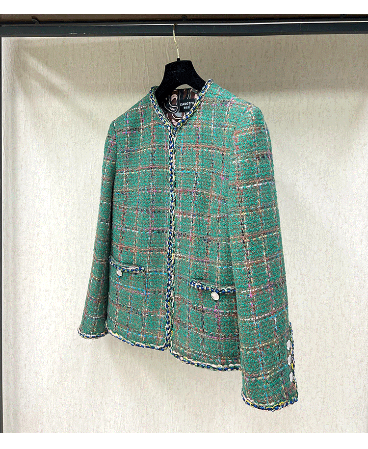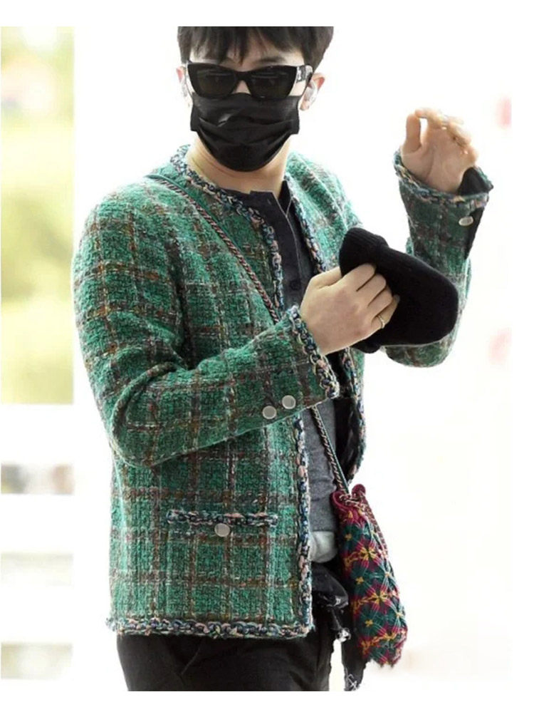 New suit jacket trousers slightly pulled green plaid wool tweed weaving high-end texture celebrity